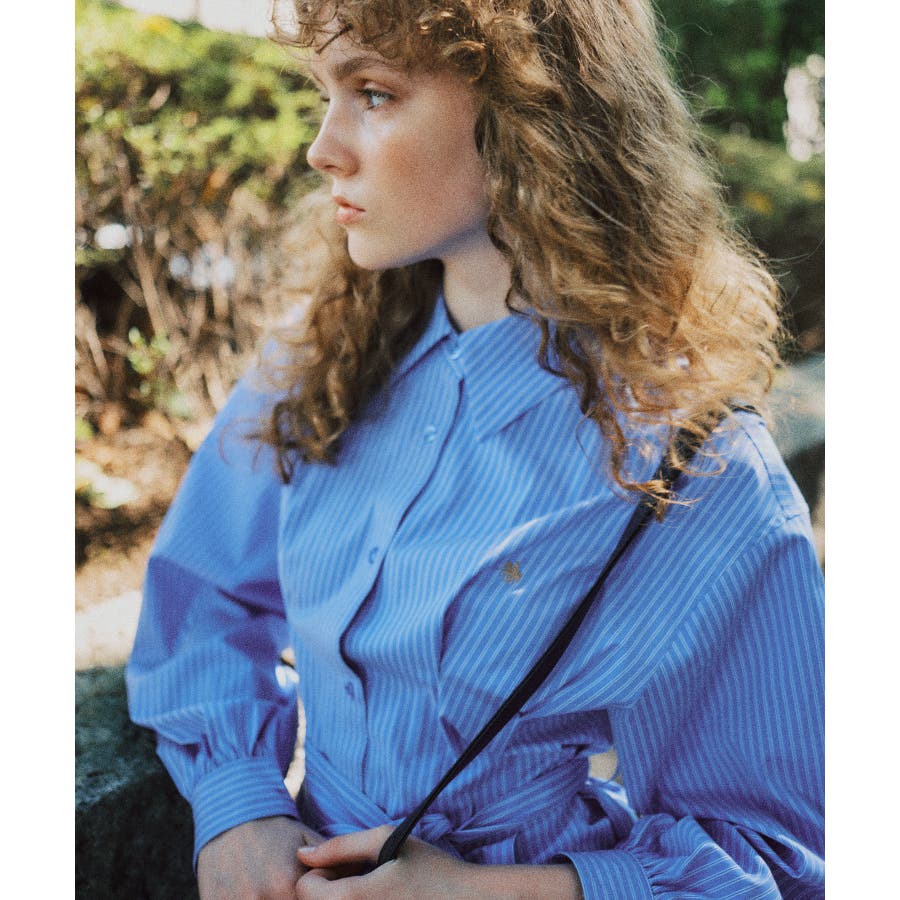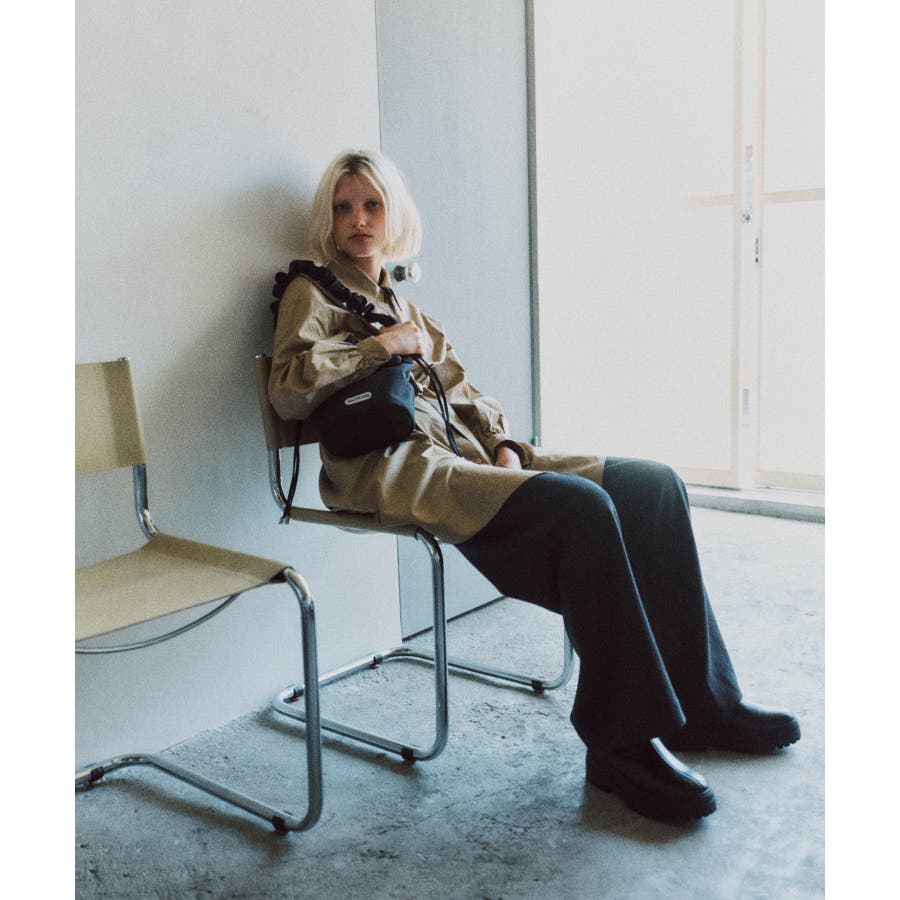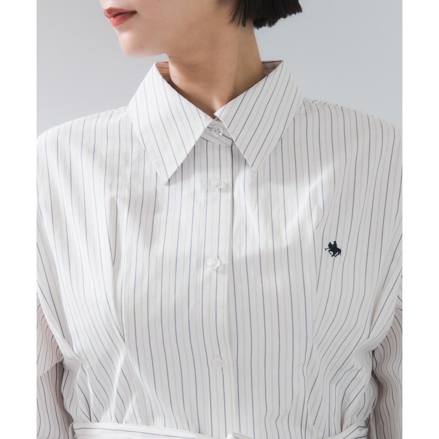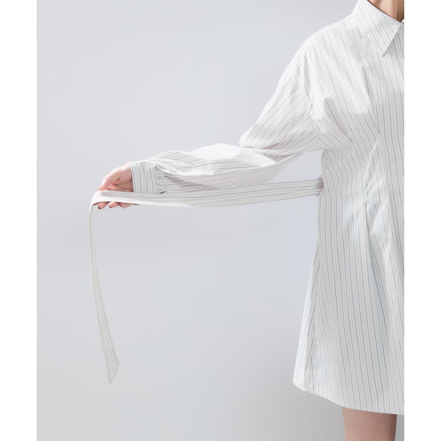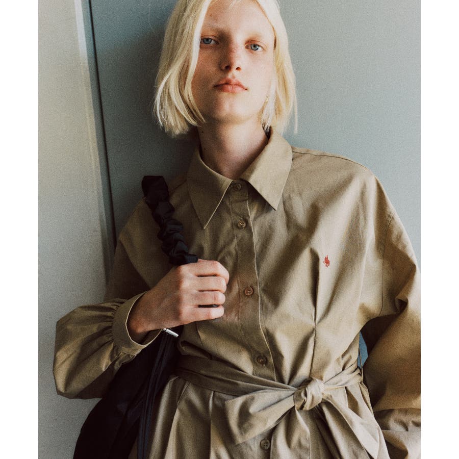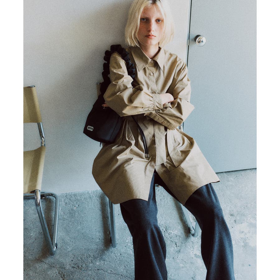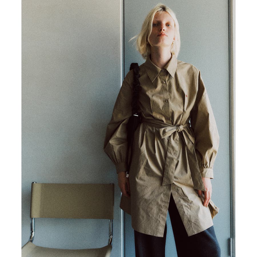 共地のベルトでブラウジングしてバランスのいい丈感に設定して着用できるデザインでです。