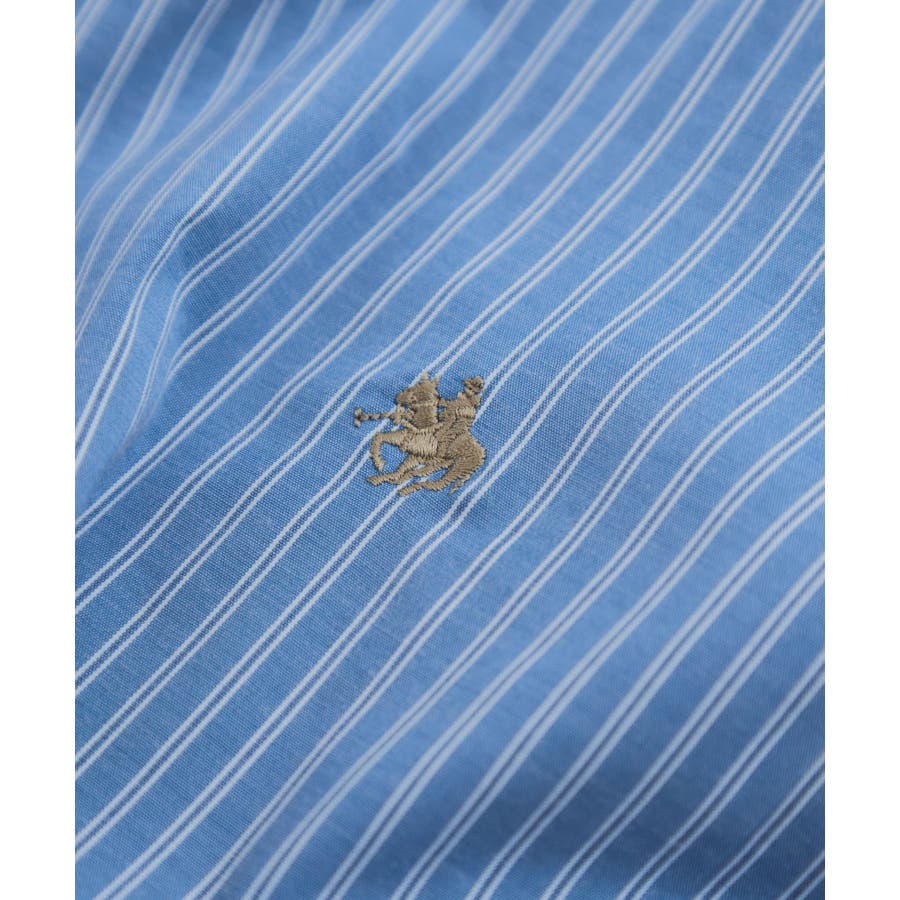 トラッドな雰囲気のホワイト、ベージュー、ライトブルーのストライプの3色。