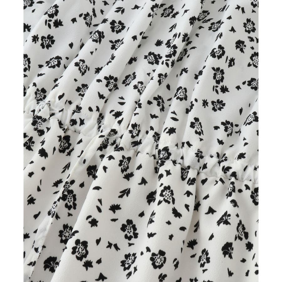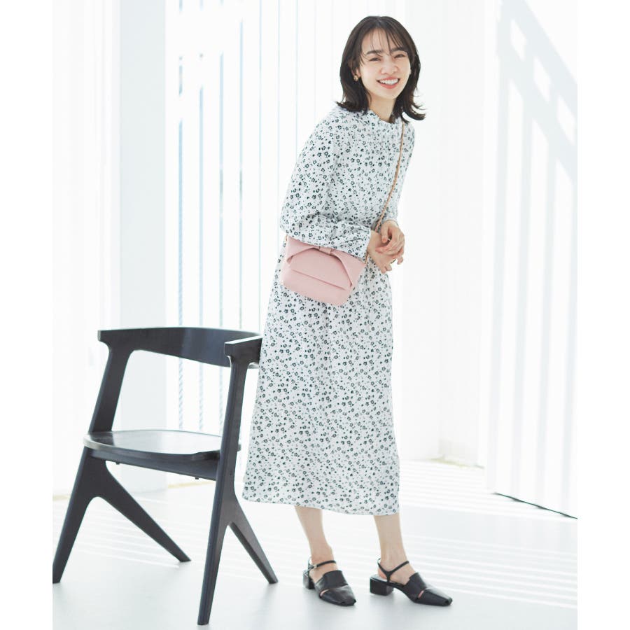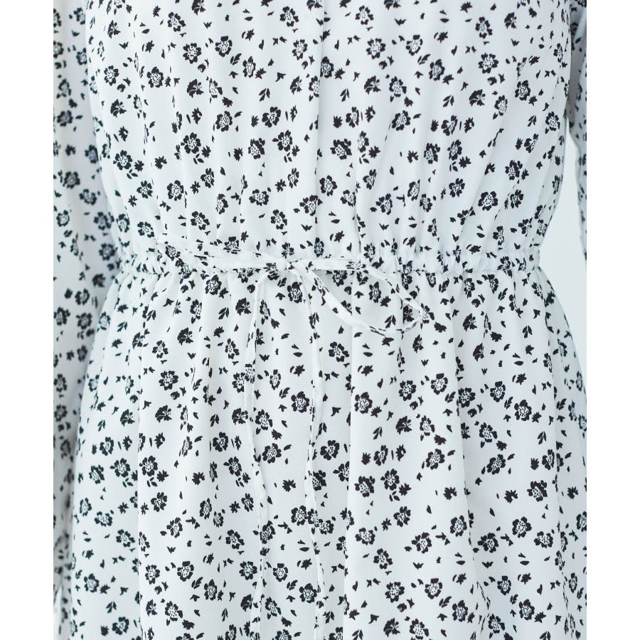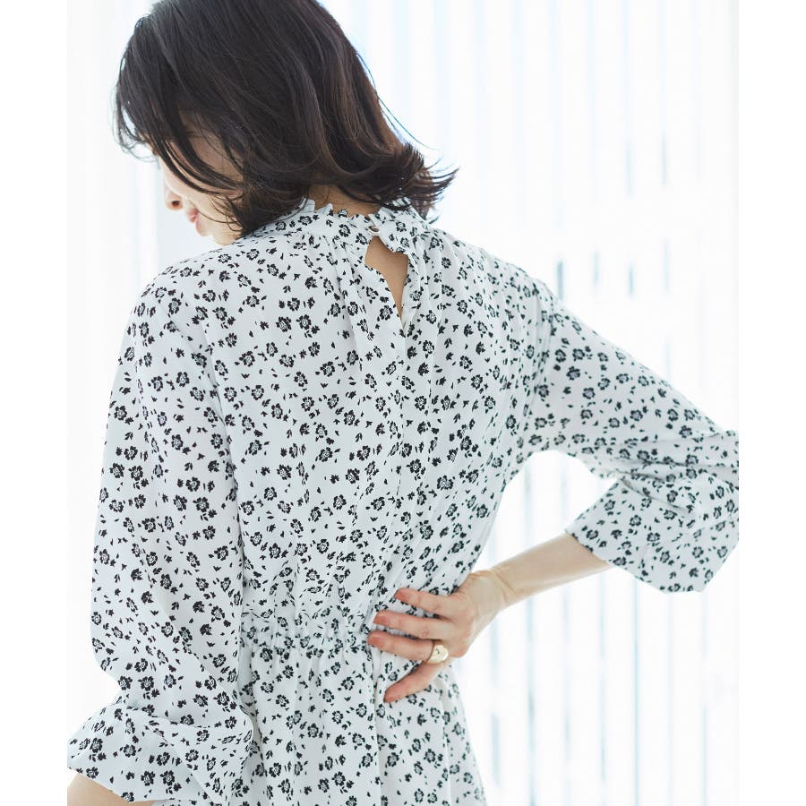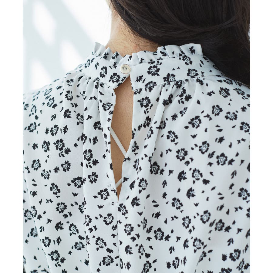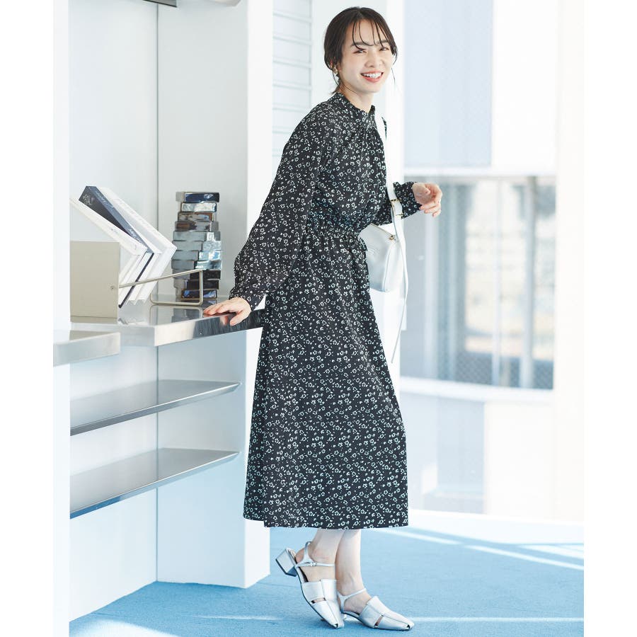 【ホワイト系(11)】【一部店舗/WEB限定】【洗える】ハイネックフリルフラワープリントワンピース