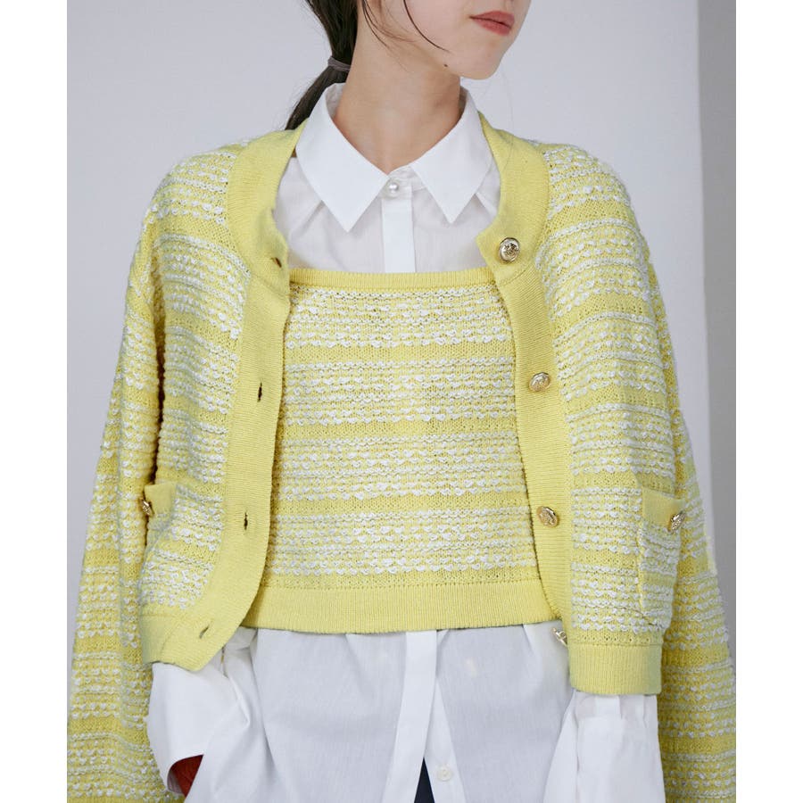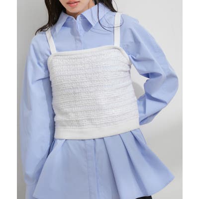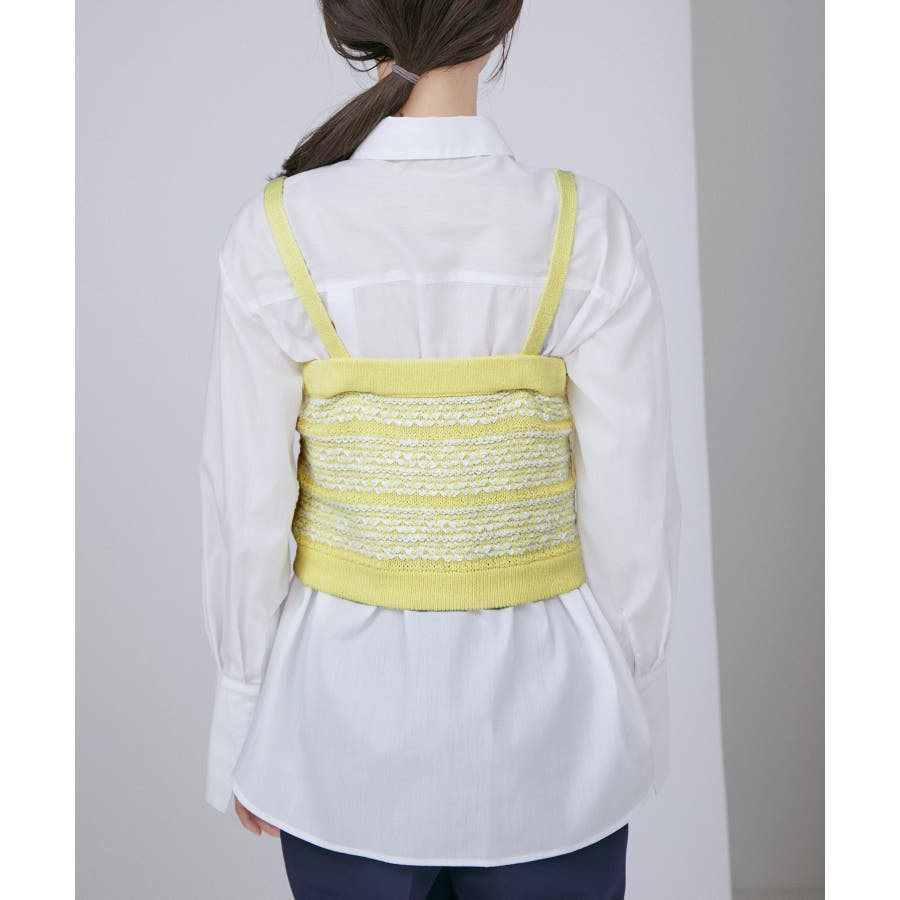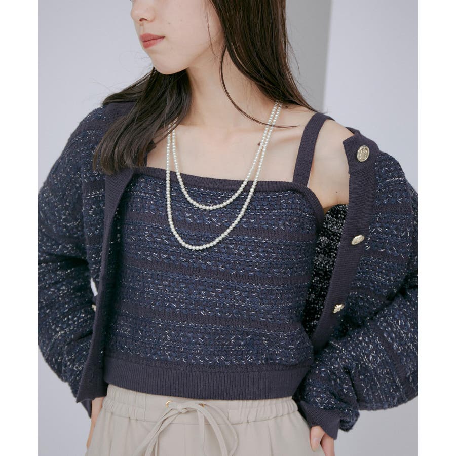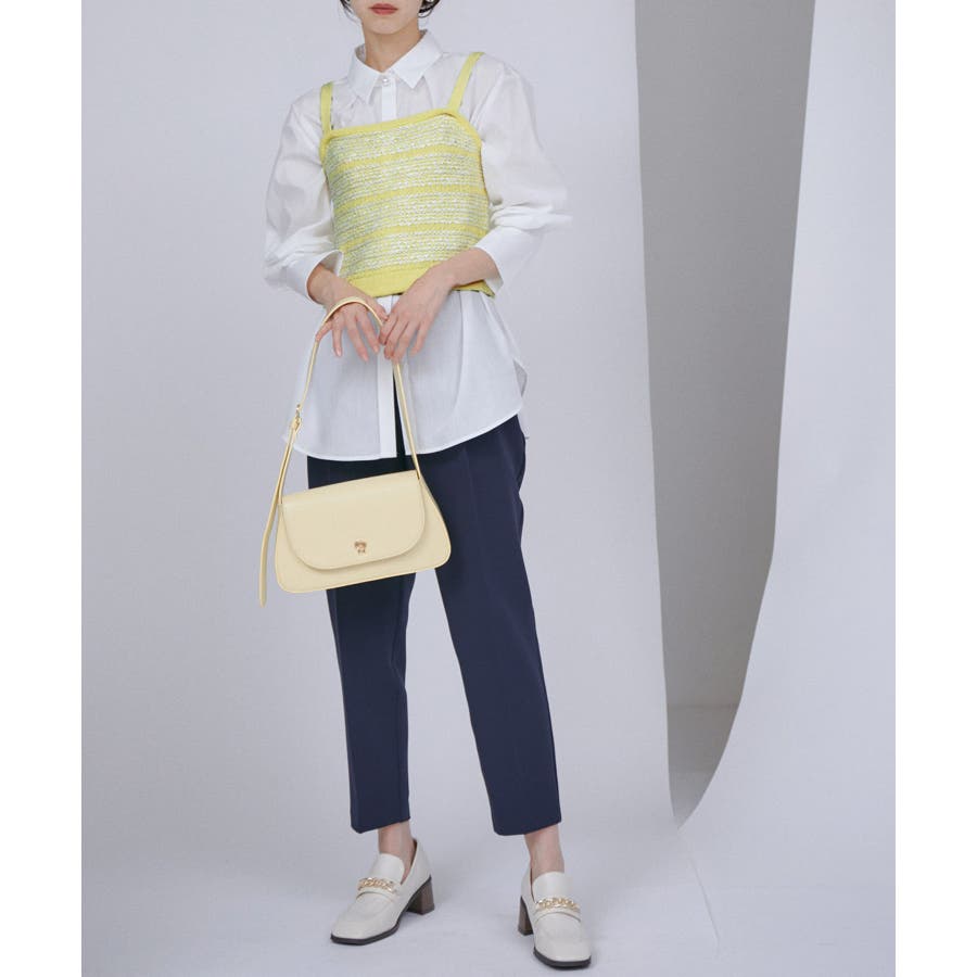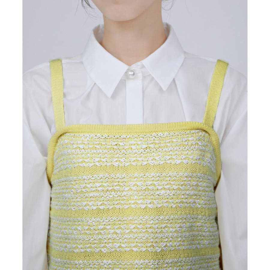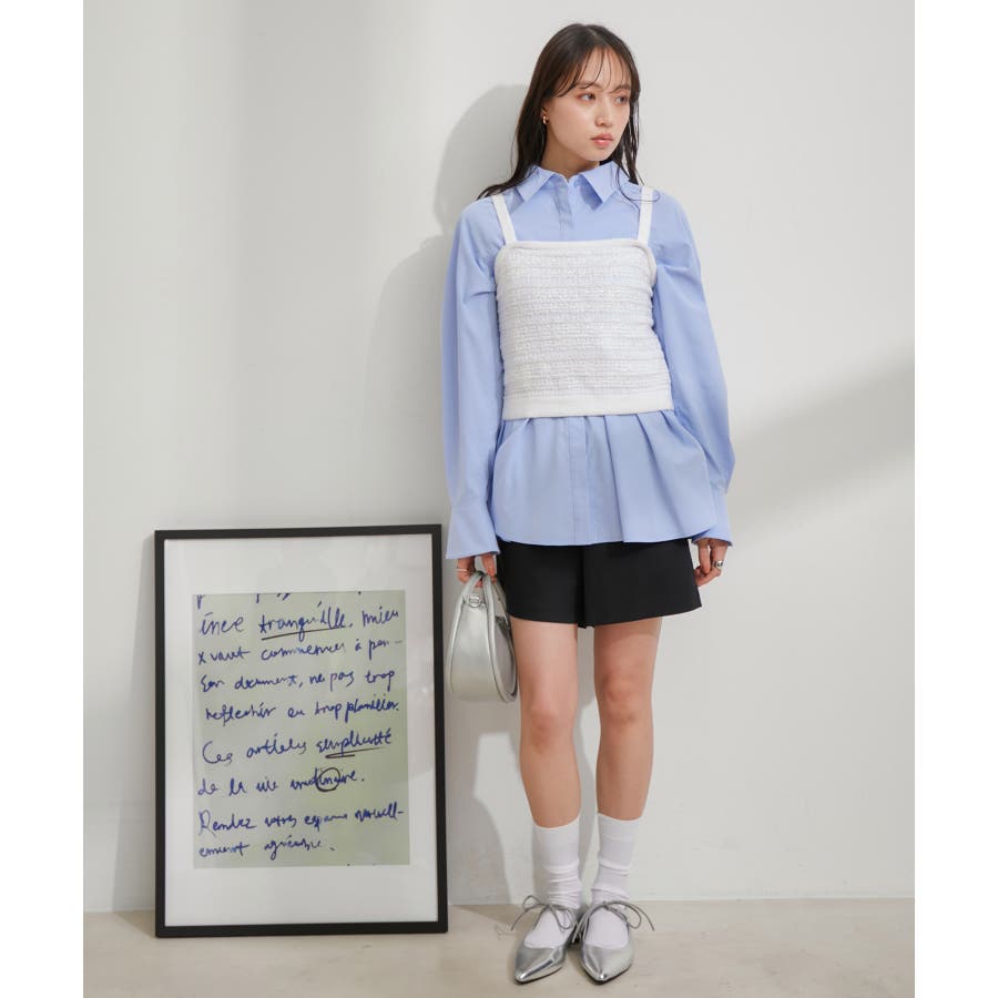 【デザイン・シルエット】 いろいろなレイヤードスタイルが楽しめるビスチェ。 ツイードデザインでトレンド感も出て新鮮な印象に!