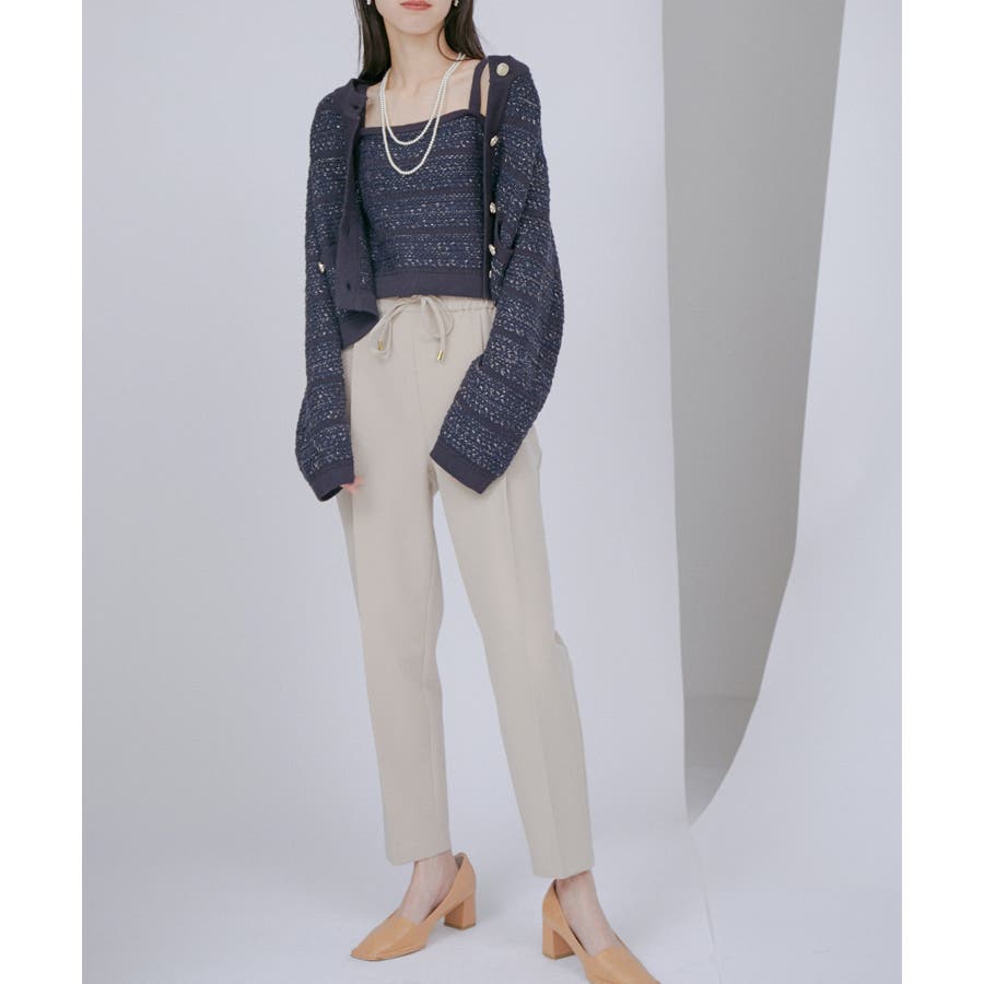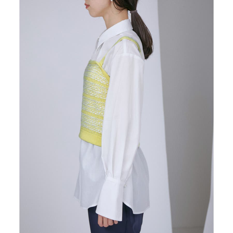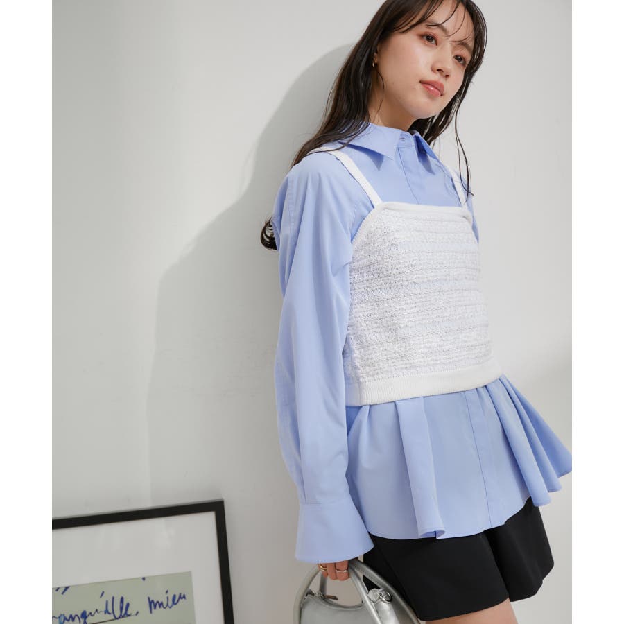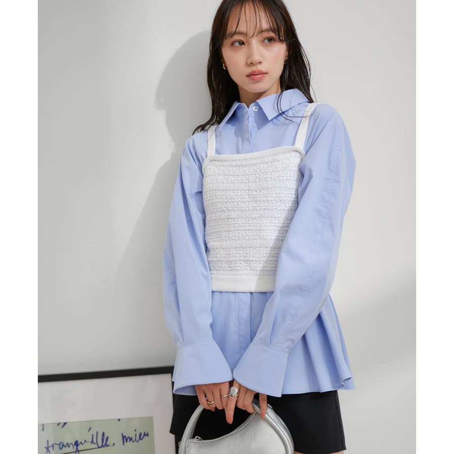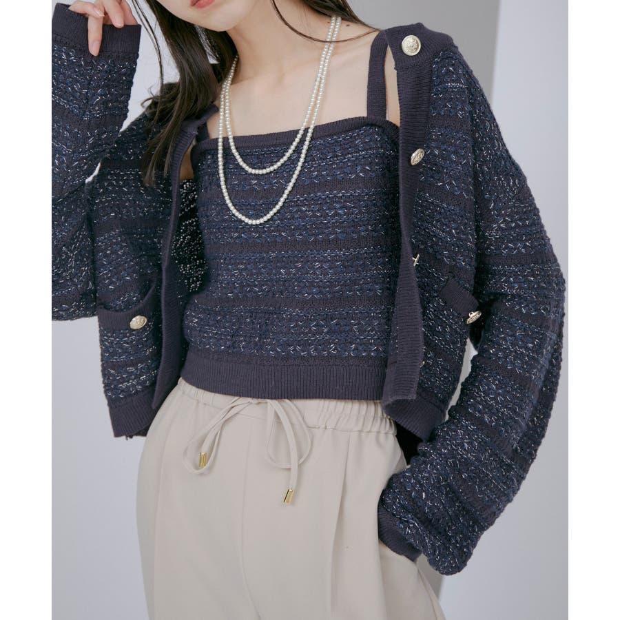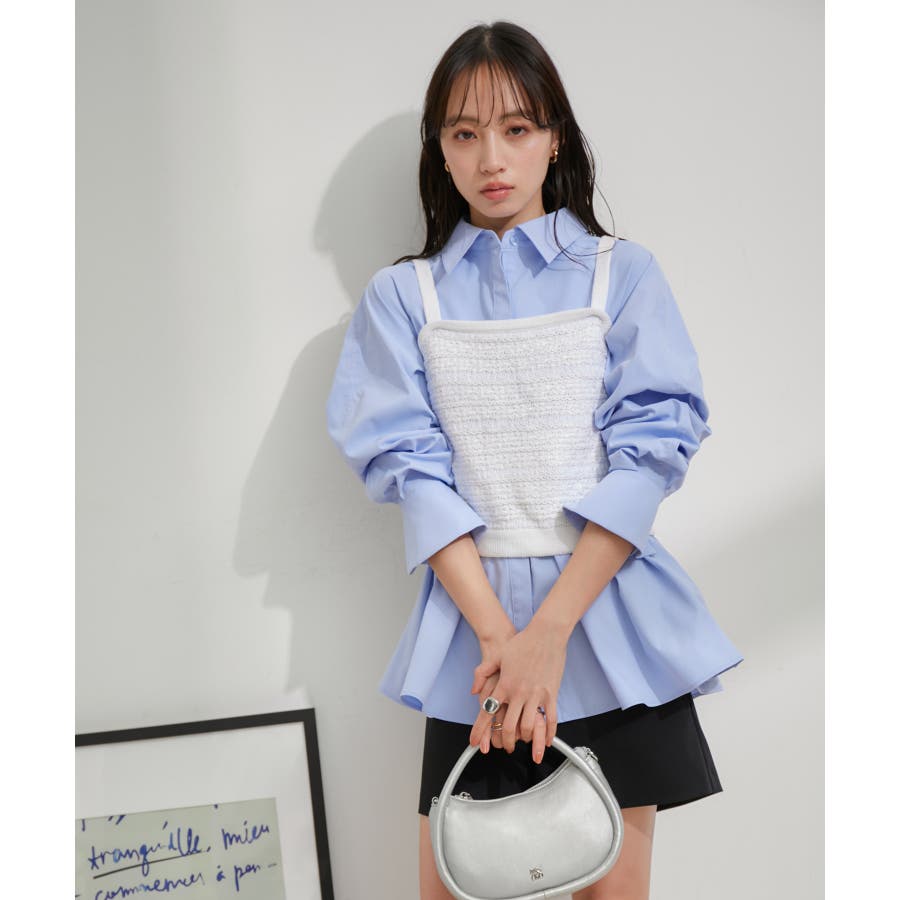 【デザイン・シルエット】 いろいろなレイヤードスタイルが楽しめるビスチェ。 ツイードデザインでトレンド感も出て新鮮な印象に!