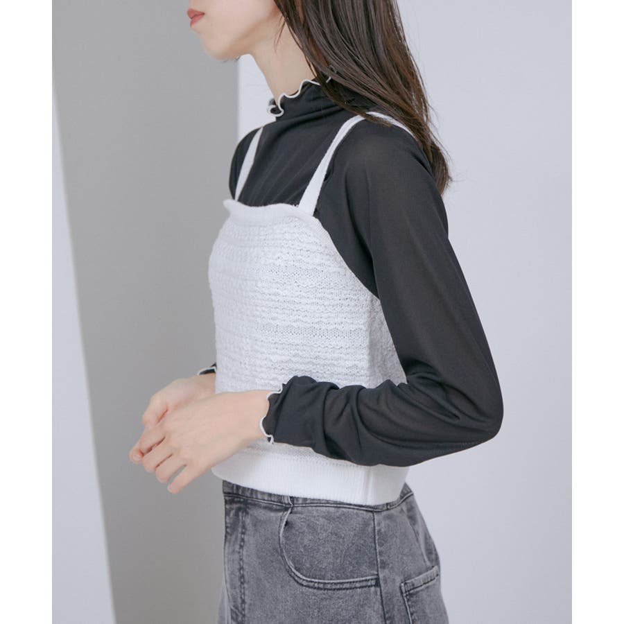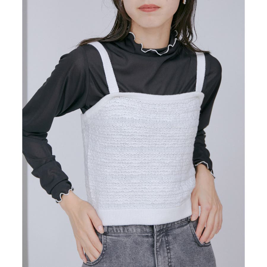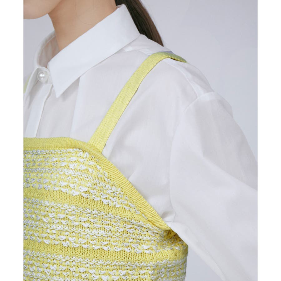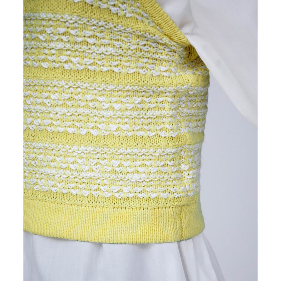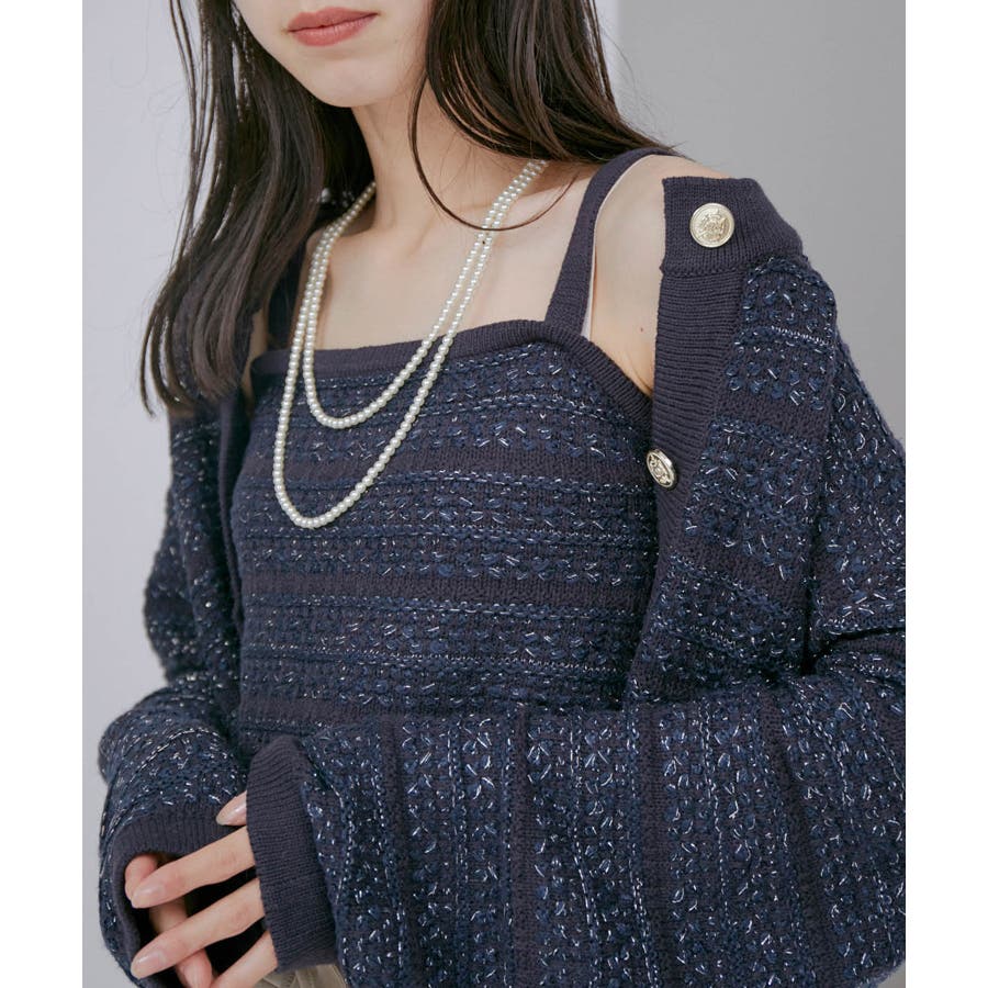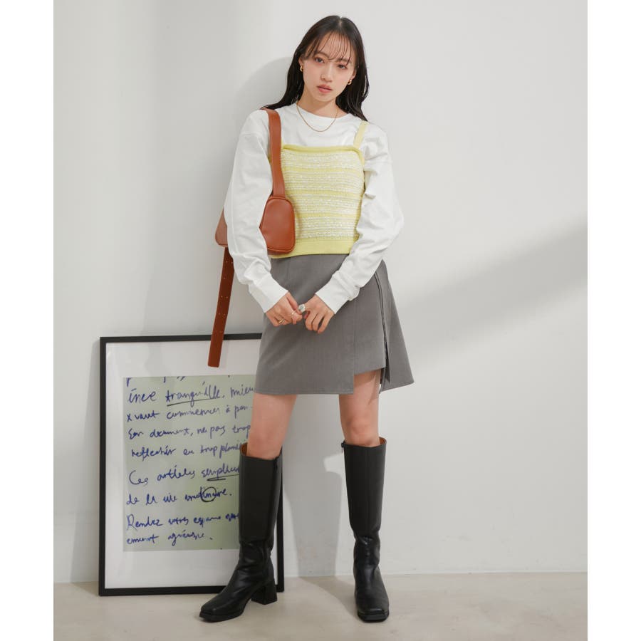 【デザイン・シルエット】 いろいろなレイヤードスタイルが楽しめるビスチェ。 ツイードデザインでトレンド感も出て新鮮な印象に!