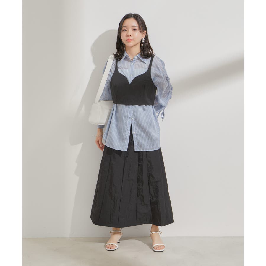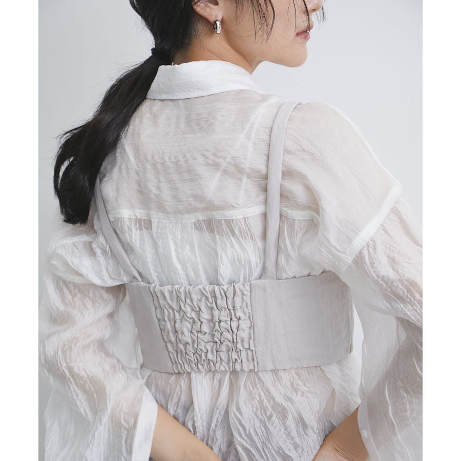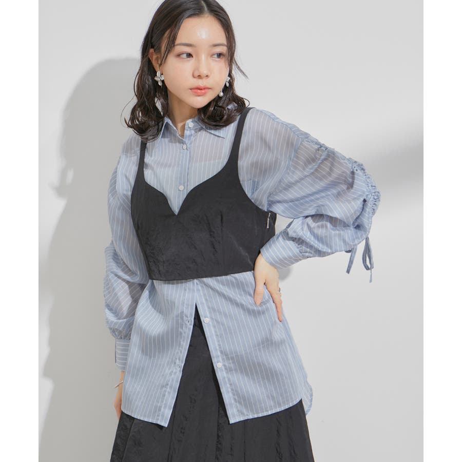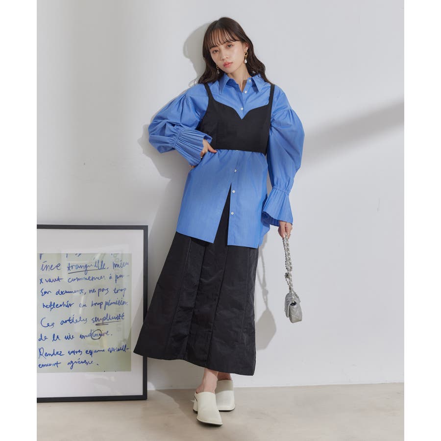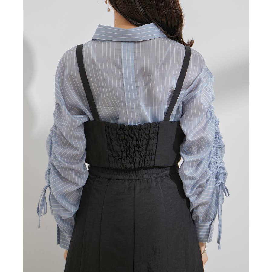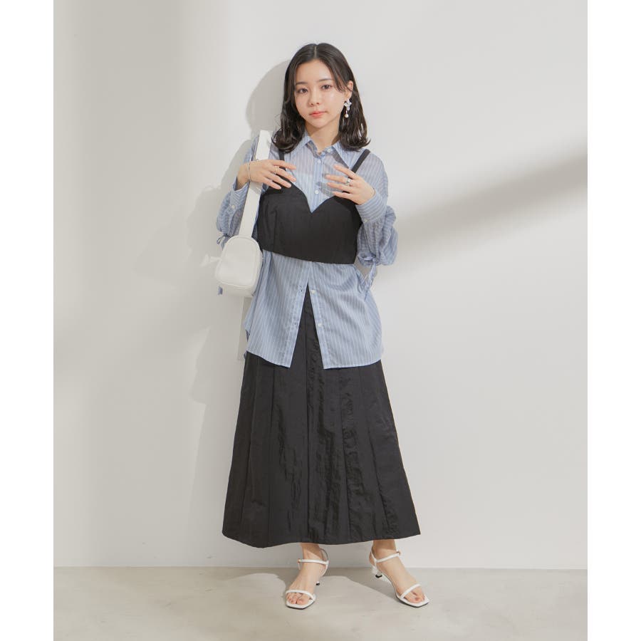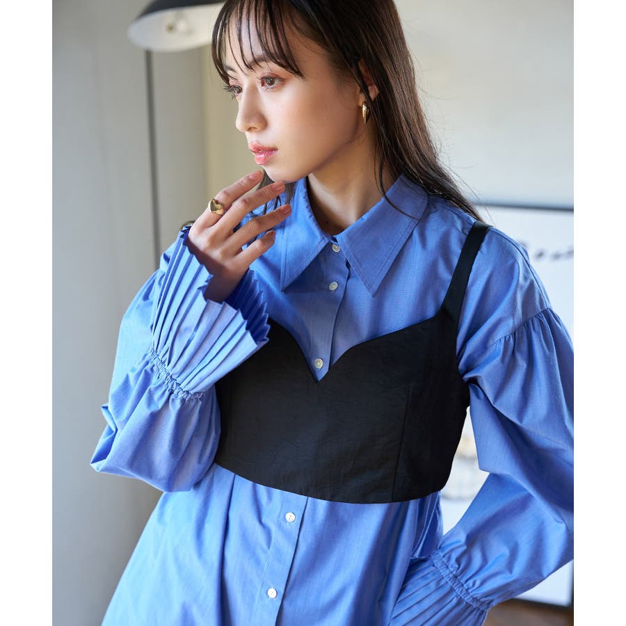【デザイン・シルエット】 女らしい胸元のカッティングがキュンとくるビスチェです。