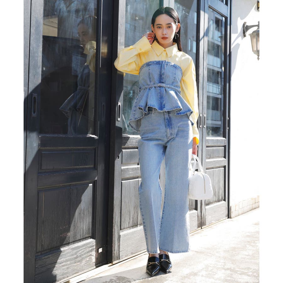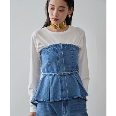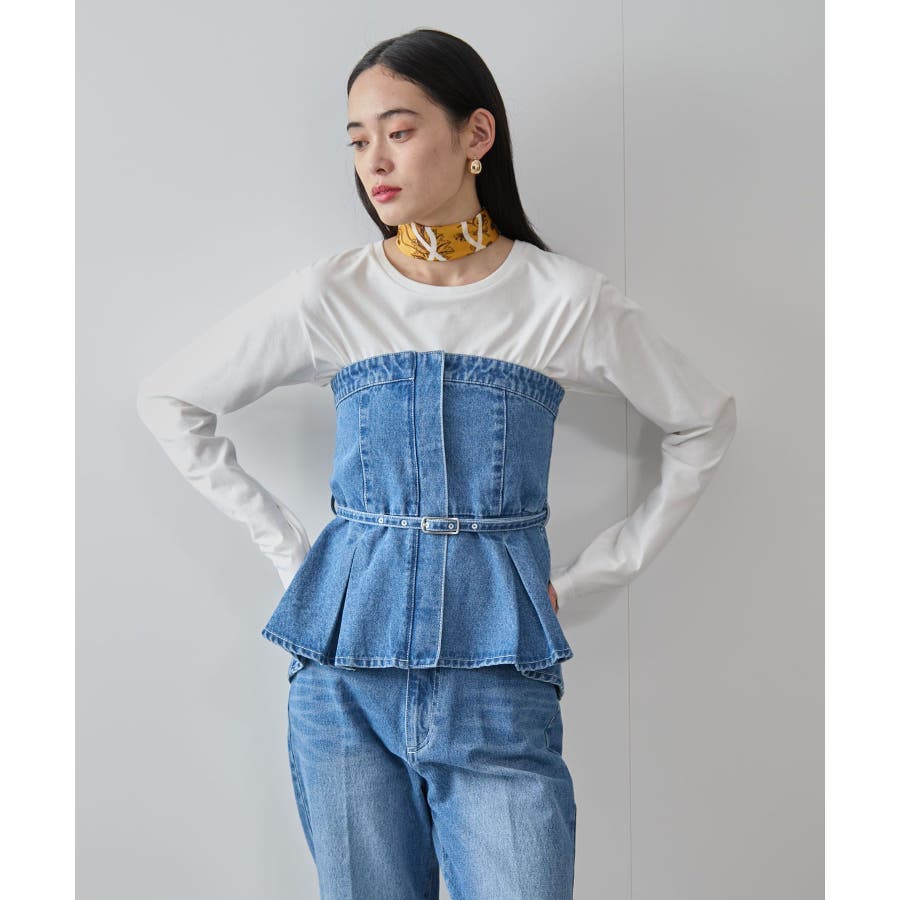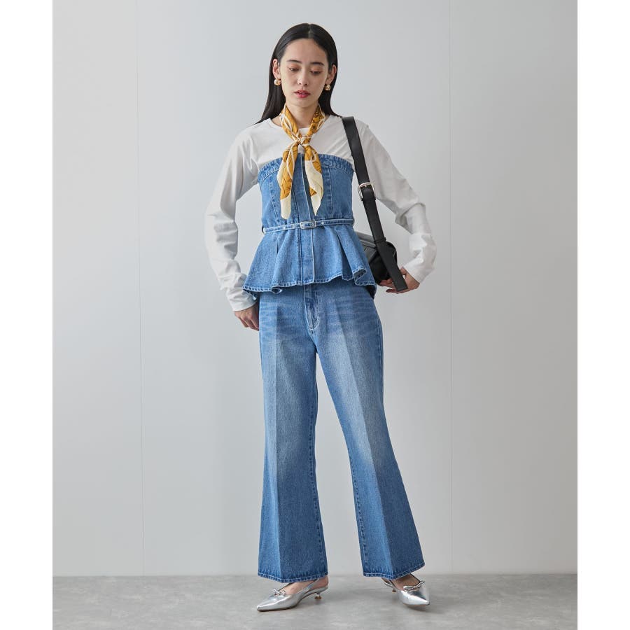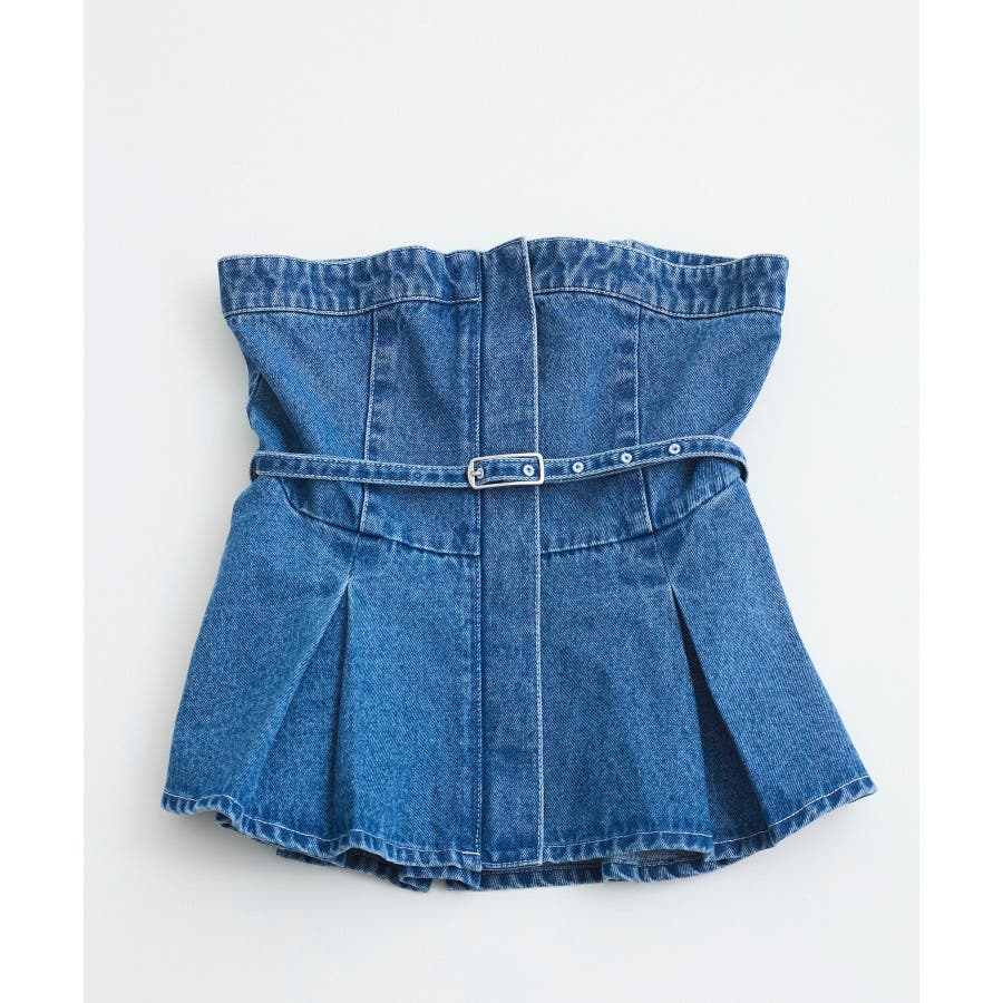 ◆2025春夏◆ ・シャーリングゴムと共地の細ベルトでウエスト部分のサイズ調整ができるので安心感のフィット感が叶えられます。 ・前開きのデザインで着脱がしやすいデザイン。※開閉は比翼仕立てのファスナーづかいとなります。 【デザイン・シルエット】 デニム素材のベアトップデザインのビスチェ。 ベア型のデザインが今シーズンらしいおすすめアイテム。 ウエストを切り替え裾にかけて広がるデザインにしてスタイルアップを叶えてくれます。 【素材】 コットン100%の素材感。 ご自宅での洗濯も可能 【カラー】 ライトブルーとブルーの2色展開。 加工もなじむように柔らかくし、ステッチカラーはライトブルーにベージュ、ブルーにホワイトのステッチにしたおり女性らしい印象で着えるようにデザインしています。 【おすすめのスタイリング】 スタンダードなトップスにプラスオンで合わせ、ジャケットなどマニッシュなアイテムとスタイリングして頂くのがおすすめです。 ※人気ファッション雑誌sweet(スウィート)公式サイト掲載。 超ときめき宣伝部 辻野かなみ着用アイテム。 ----------------------------- 裏地:なし 光沢感:なし 透け感:なし 伸縮性:なし ウエスト:後ろ一部ゴム 生地の厚さ:普通 その他仕様:フロントの開閉は比翼仕立てのジップ。取り外し可能のベルト付き 季節:通年 ----------------------------- 【モデル着用サイズ】 全色モデル身長:168cm、着用サイズ:F ※画像の商品はサンプルです。 実際の商品と仕様、加工、サイズが若干異なる場合がございます。 ※画像によっては実際の色味と異なる場合があります。正しい色味は生地アップ画像をご確認ください。
