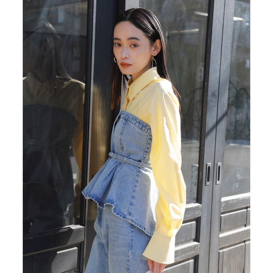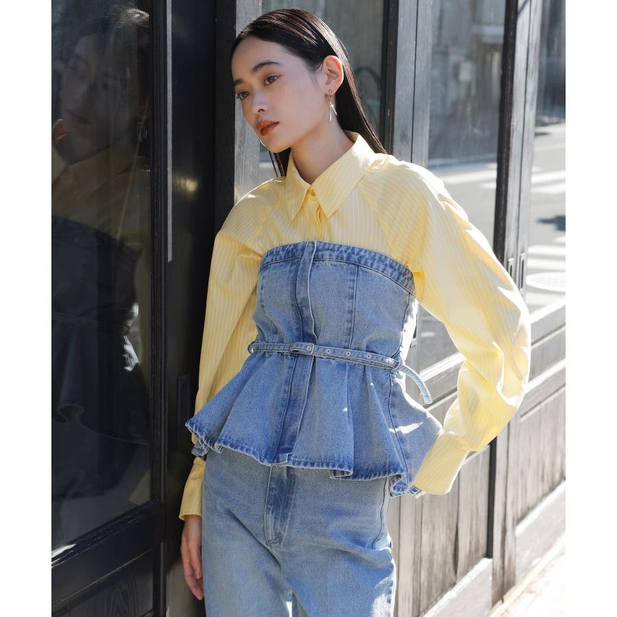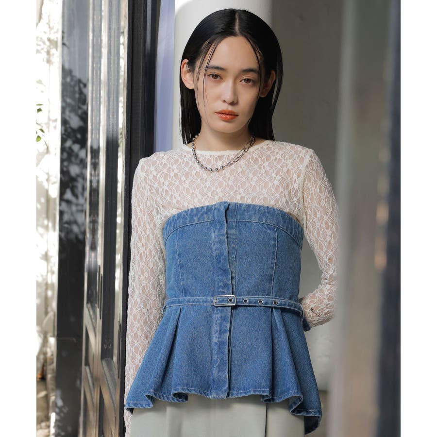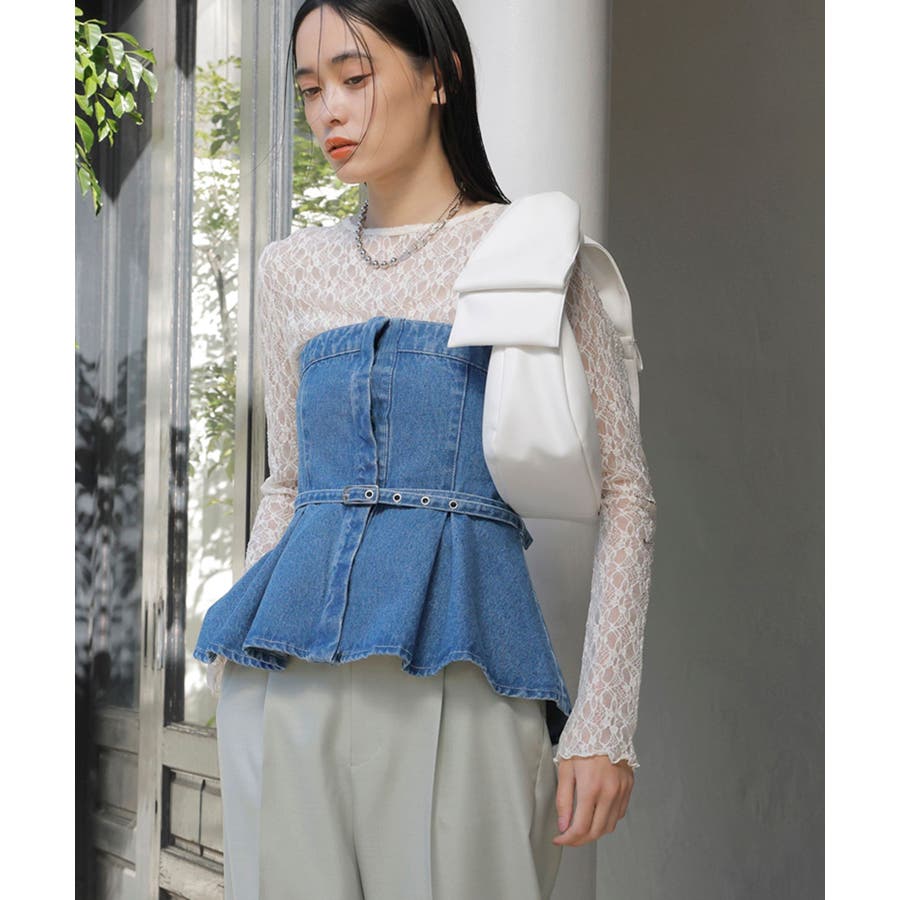 ◆2025春夏◆ ・シャーリングゴムと共地の細ベルトでウエスト部分のサイズ調整ができるので安心感のフィット感が叶えられます。 ・前開きのデザインで着脱がしやすいデザイン。※開閉は比翼仕立てのファスナーづかいとなります。 【デザイン・シルエット】 デニム素材のベアトップデザインのビスチェ。 ベア型のデザインが今シーズンらしいおすすめアイテム。 ウエストを切り替え裾にかけて広がるデザインにしてスタイルアップを叶えてくれます。 【素材】 コットン100%の素材感。 ご自宅での洗濯も可能 【カラー】 ライトブルーとブルーの2色展開。 加工もなじむように柔らかくし、ステッチカラーはライトブルーにベージュ、ブルーにホワイトのステッチにしたおり女性らしい印象で着えるようにデザインしています。 【おすすめのスタイリング】 スタンダードなトップスにプラスオンで合わせ、ジャケットなどマニッシュなアイテムとスタイリングして頂くのがおすすめです。 ※人気ファッション雑誌sweet(スウィート)公式サイト掲載。 超ときめき宣伝部 辻野かなみ着用アイテム。 ----------------------------- 裏地:なし 光沢感:なし 透け感:なし 伸縮性:なし ウエスト:後ろ一部ゴム 生地の厚さ:普通 その他仕様:フロントの開閉は比翼仕立てのジップ。取り外し可能のベルト付き 季節:通年 ----------------------------- 【モデル着用サイズ】 全色モデル身長:168cm、着用サイズ:F ※画像の商品はサンプルです。 実際の商品と仕様、加工、サイズが若干異なる場合がございます。 ※画像によっては実際の色味と異なる場合があります。正しい色味は生地アップ画像をご確認ください。