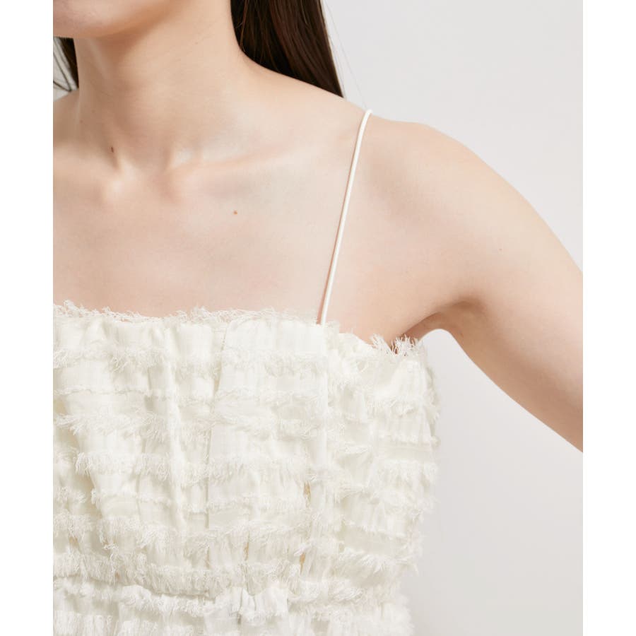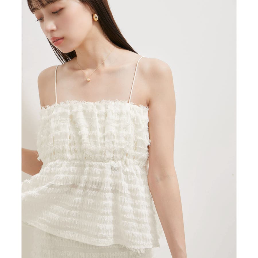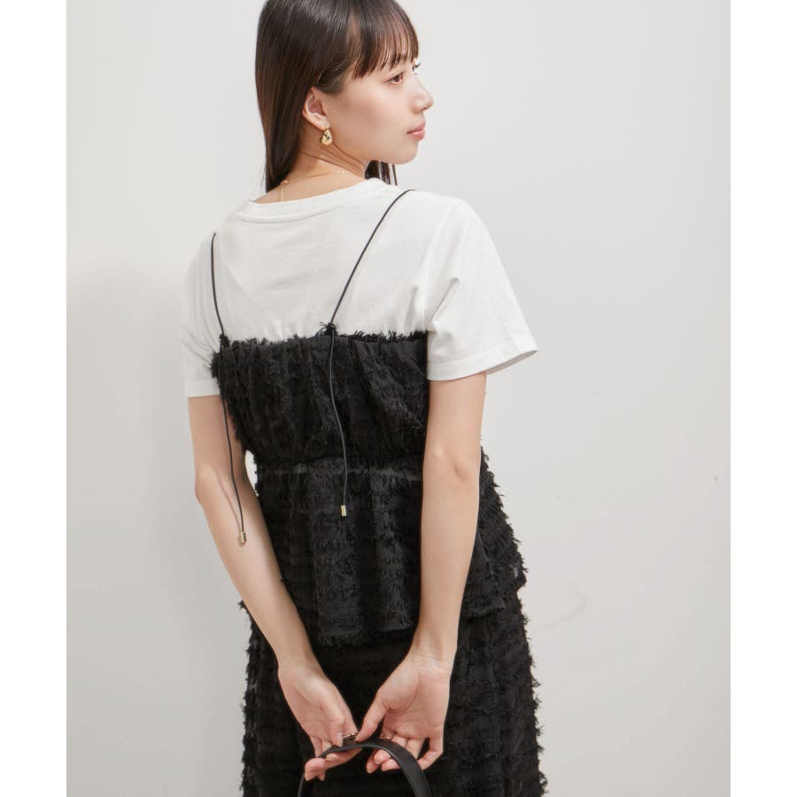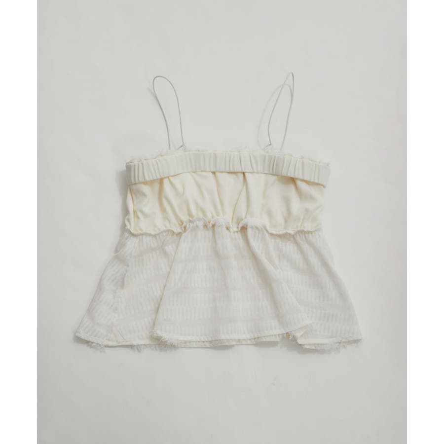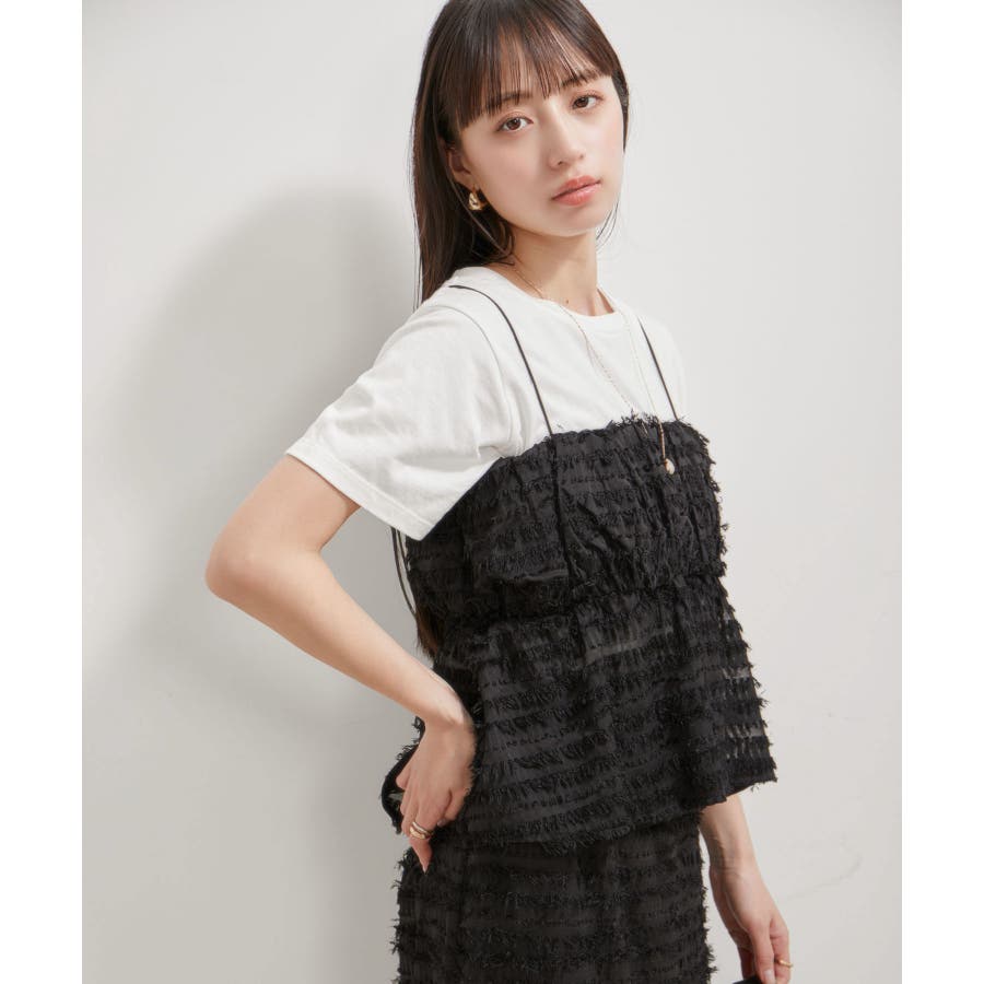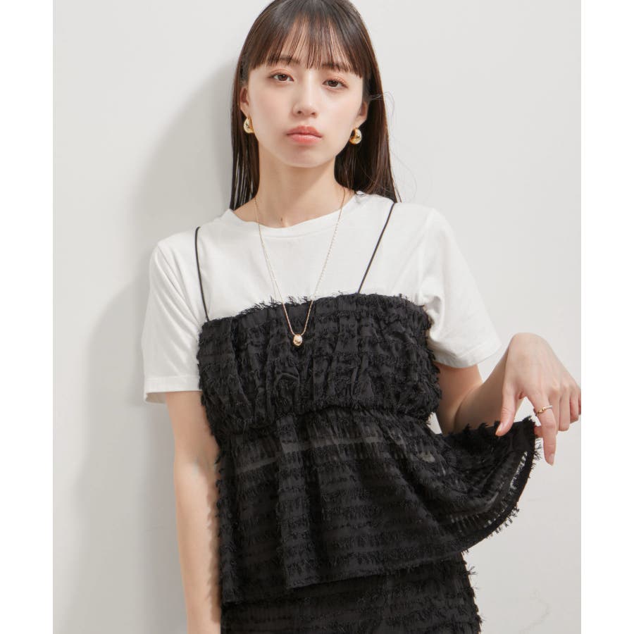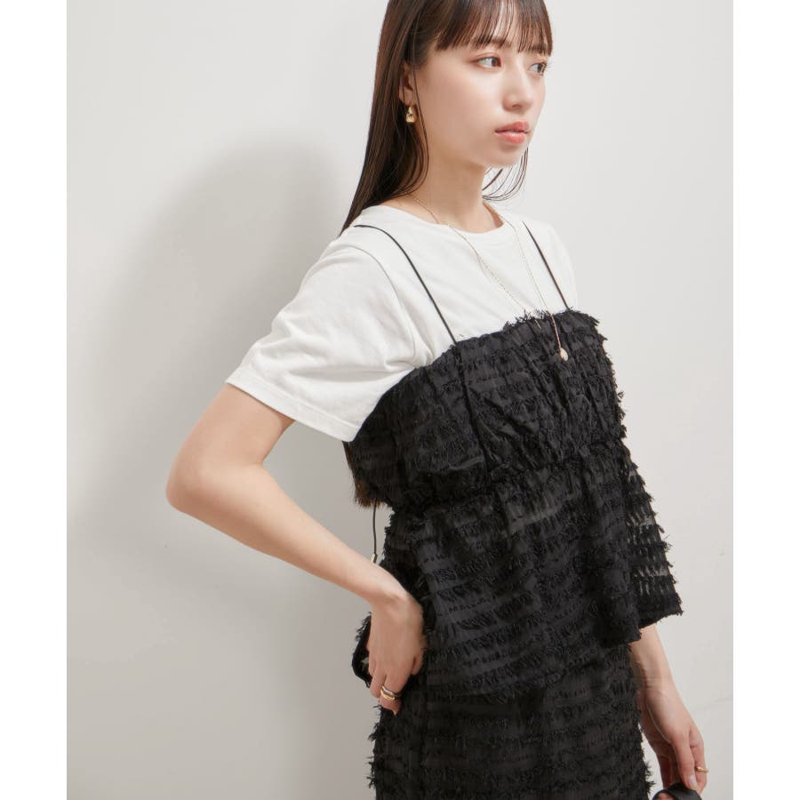 ◆2024春夏◆ 【デザイン・シルエット】 ビスチェ型キャミソールは、胸下から広がるシルエットはボリューム感もありレイヤードMIXが楽しめます。