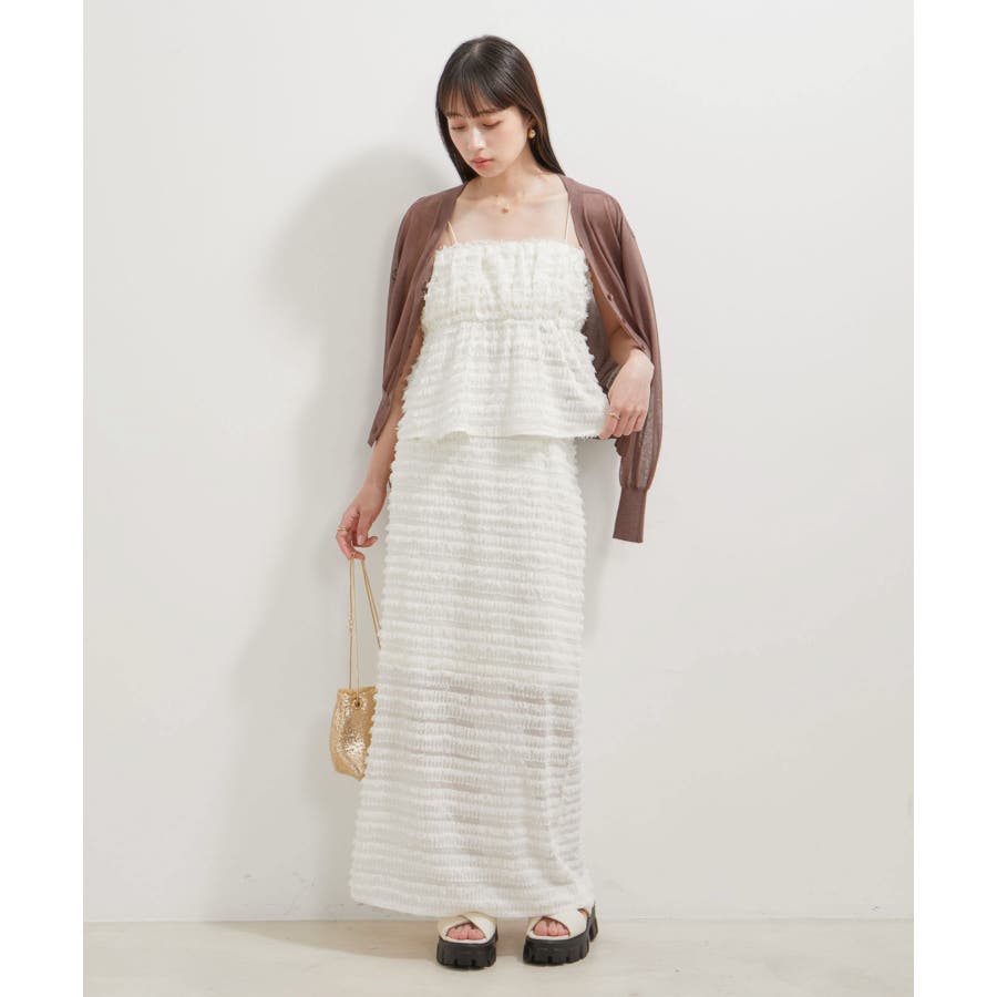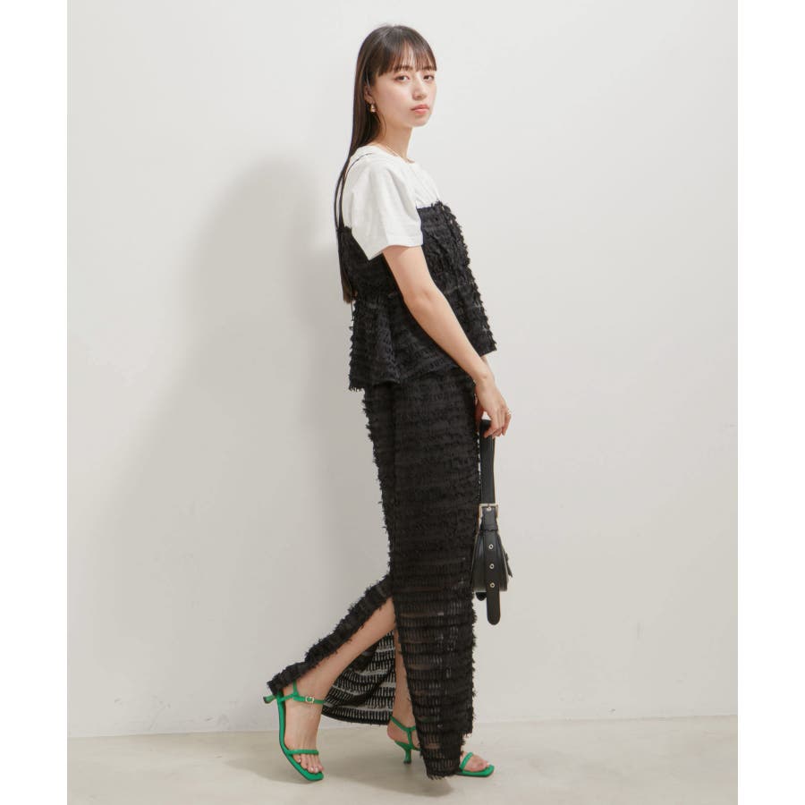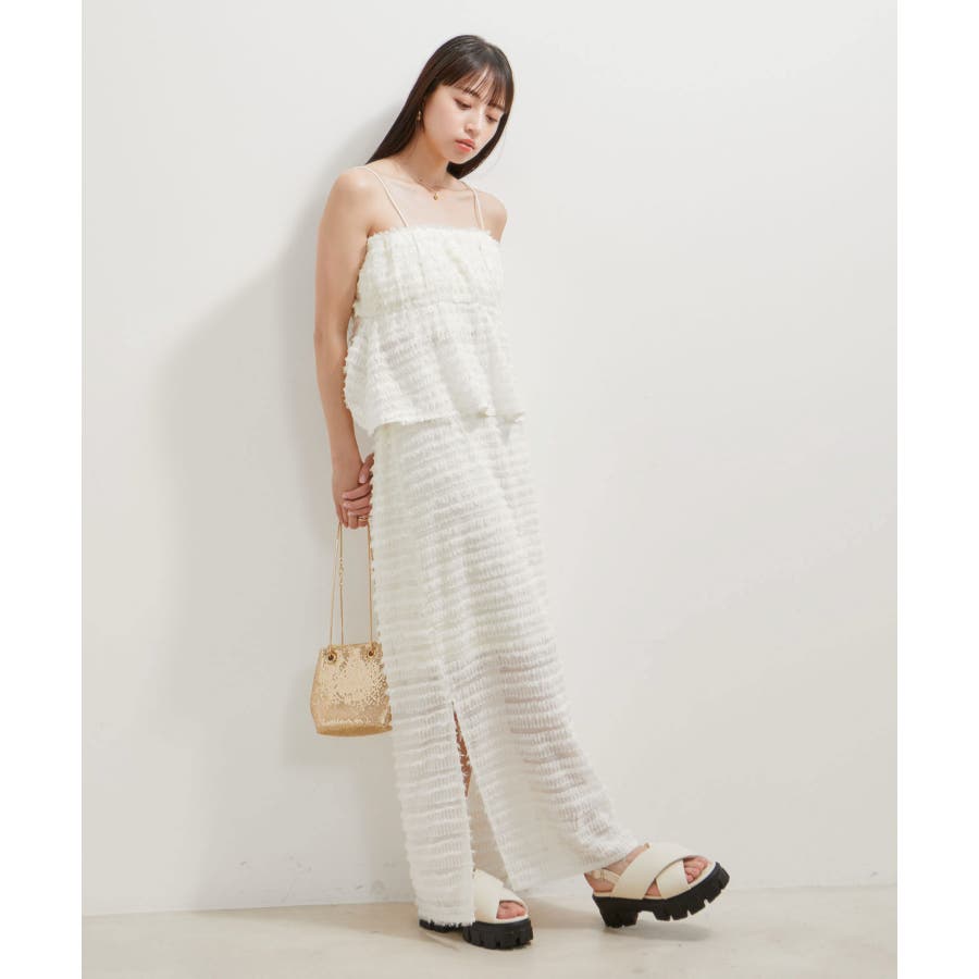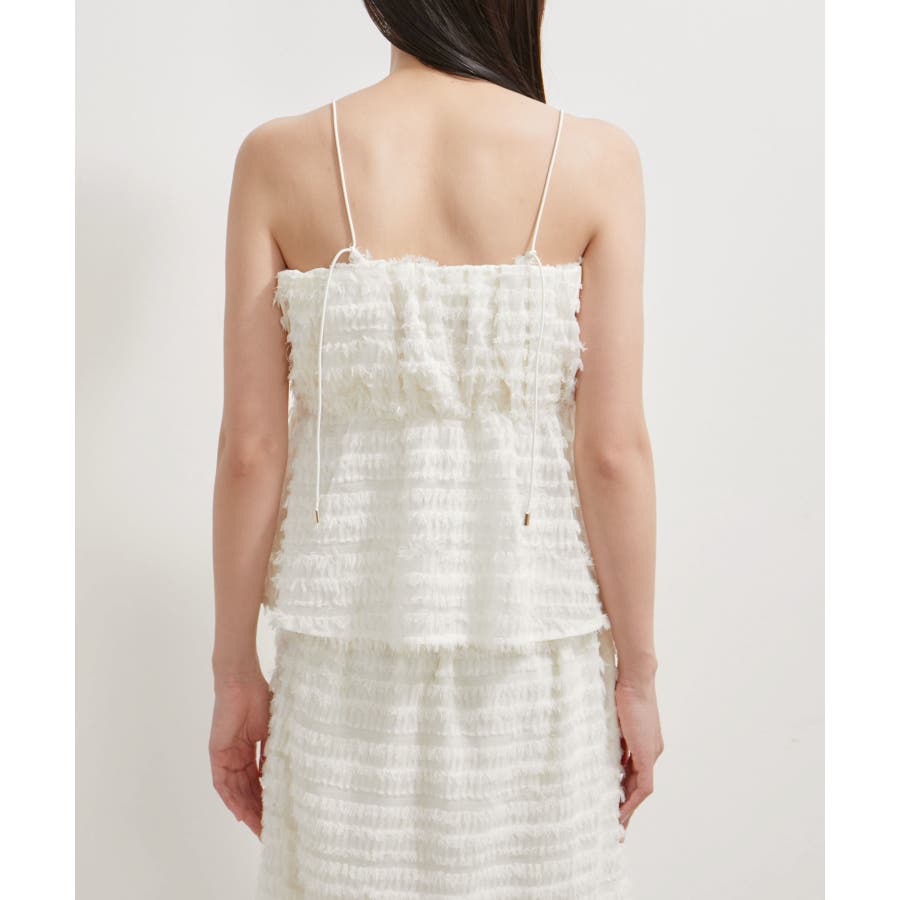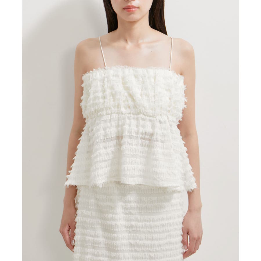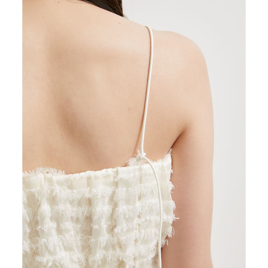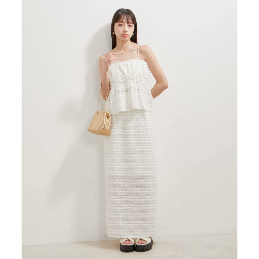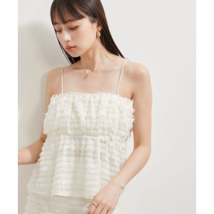 ◆2024春夏◆ 【デザイン・シルエット】 ビスチェ型キャミソールは、胸下から広がるシルエットはボリューム感もありレイヤードMIXが楽しめます。