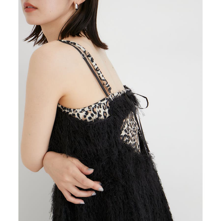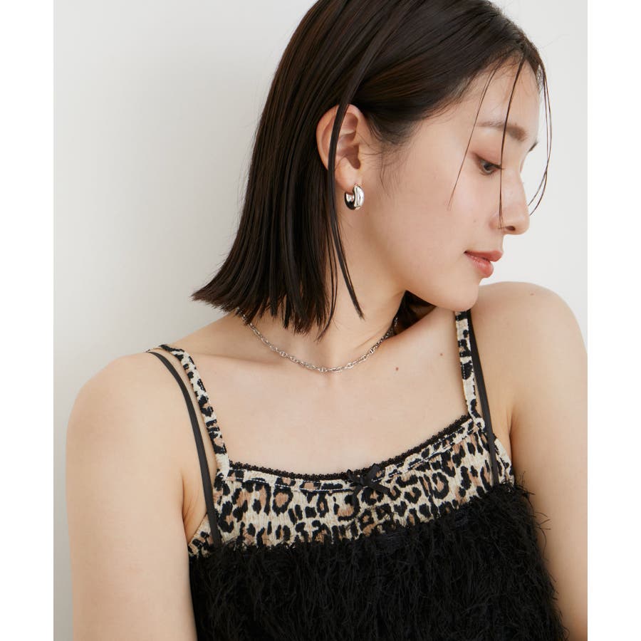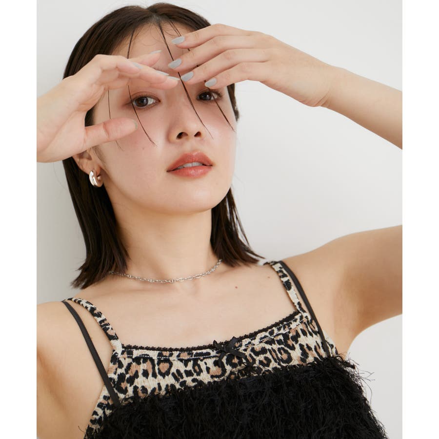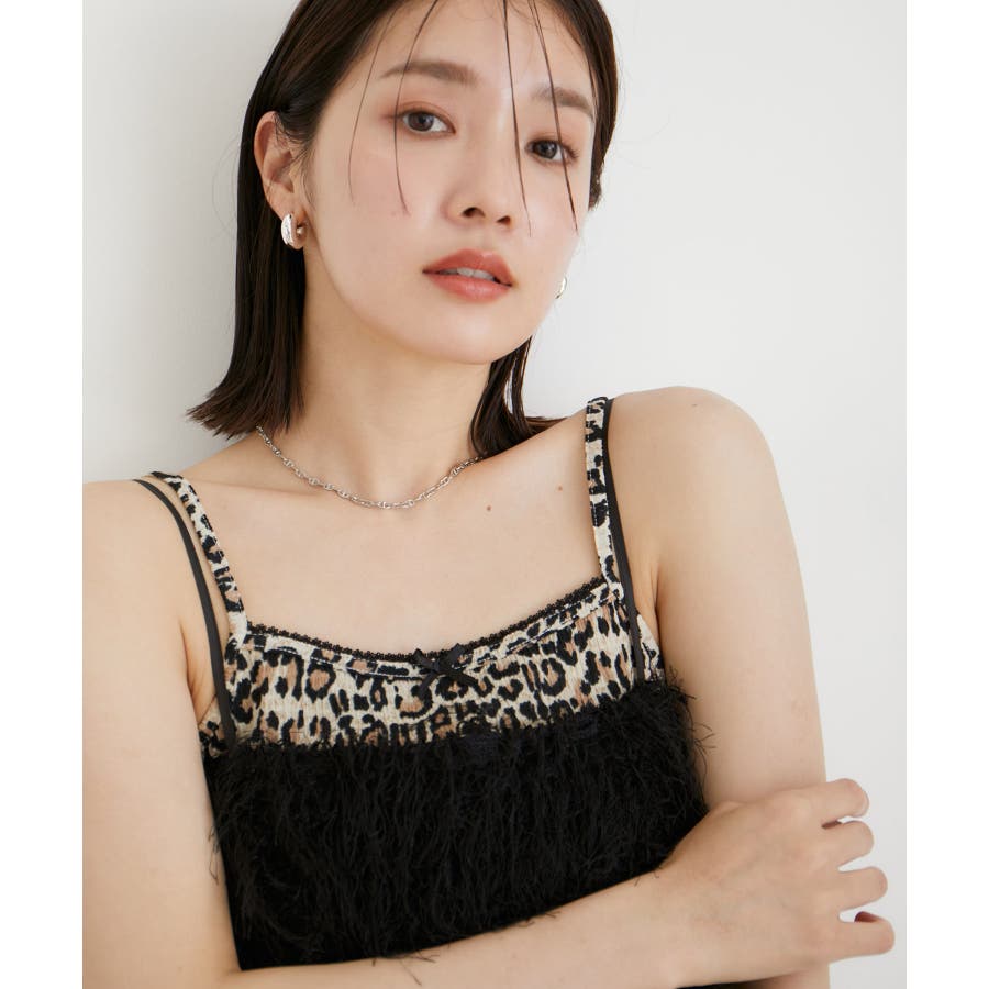 ◆2024-25秋冬◆ 【デザイン・シルエット】 プチサテンリボン付きハートパターンメッシュとレオパード柄のアソートキャミソール。