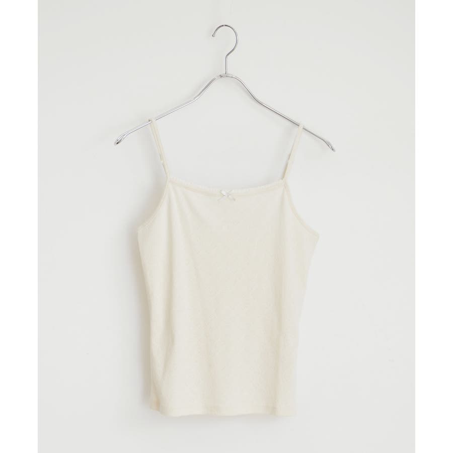 【洗える】プチリボン付きパターンメッシュキャミソール