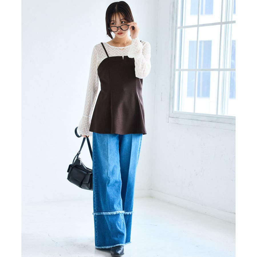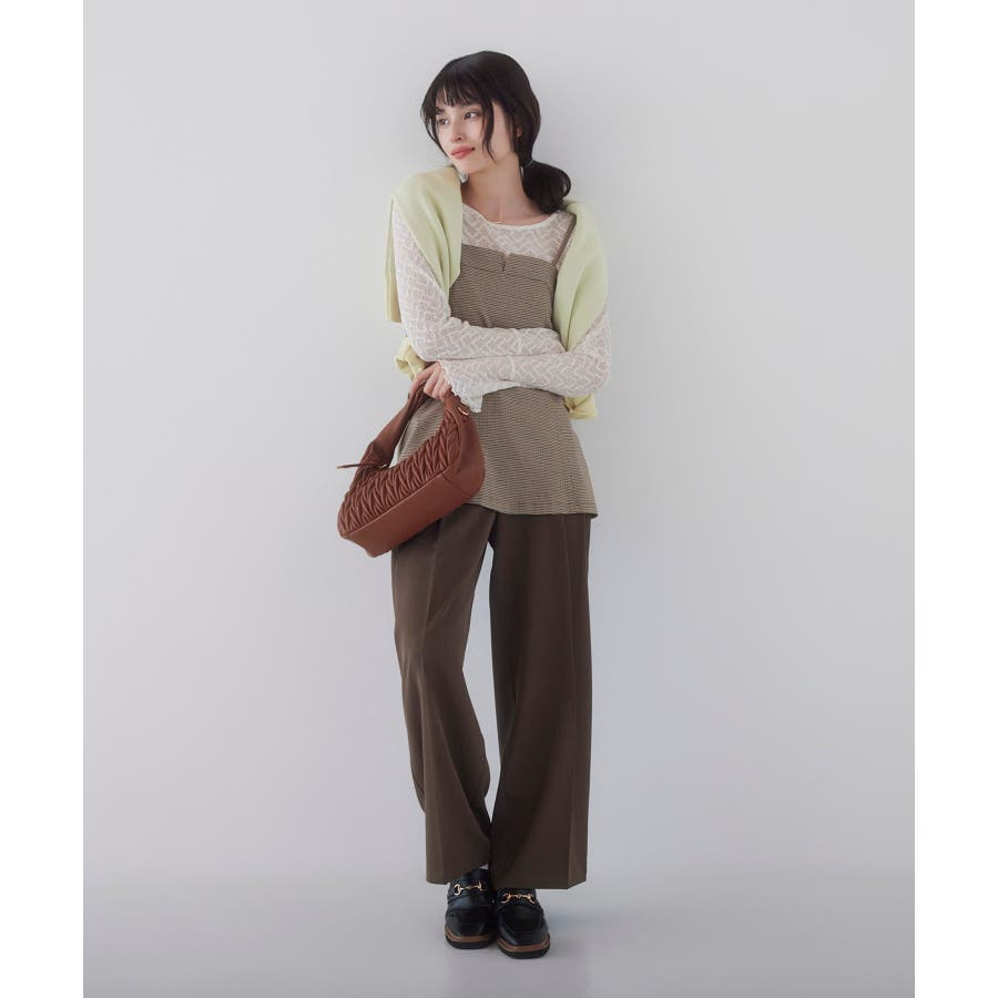 フレアースリーブのレースプルオーバーやシンプルなシャツなどを合わせて、ボトムに同素材のウーリッシュワイドスラックス(品番:BVS65100)でキレイめなスタイルがおすすめ。カジュアルにデニムを合わせたり、色々な組み合わせにチャレンジしても◎