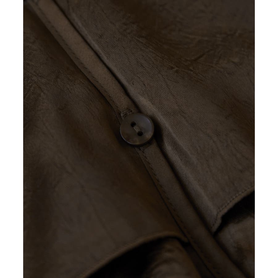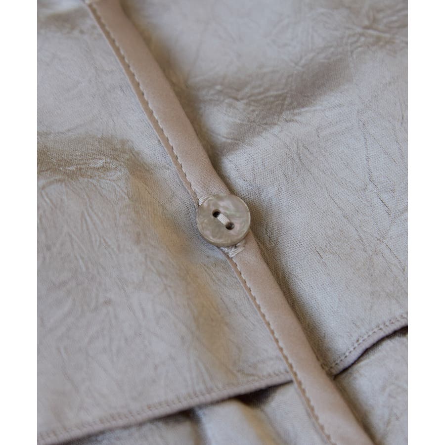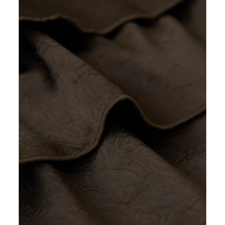 微光沢のあるサテン素材を使用。しなやかで落ち感があり、フリルの揺れ感を美しく演出します。