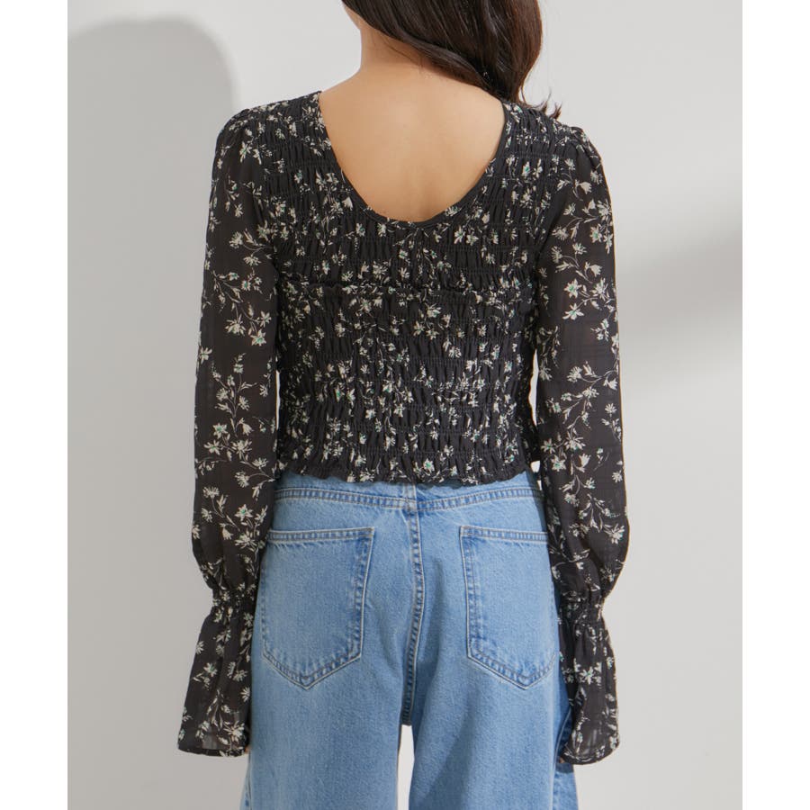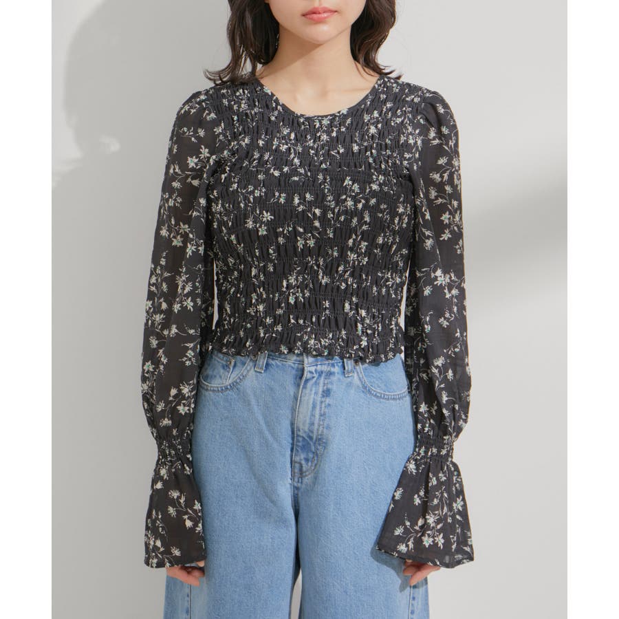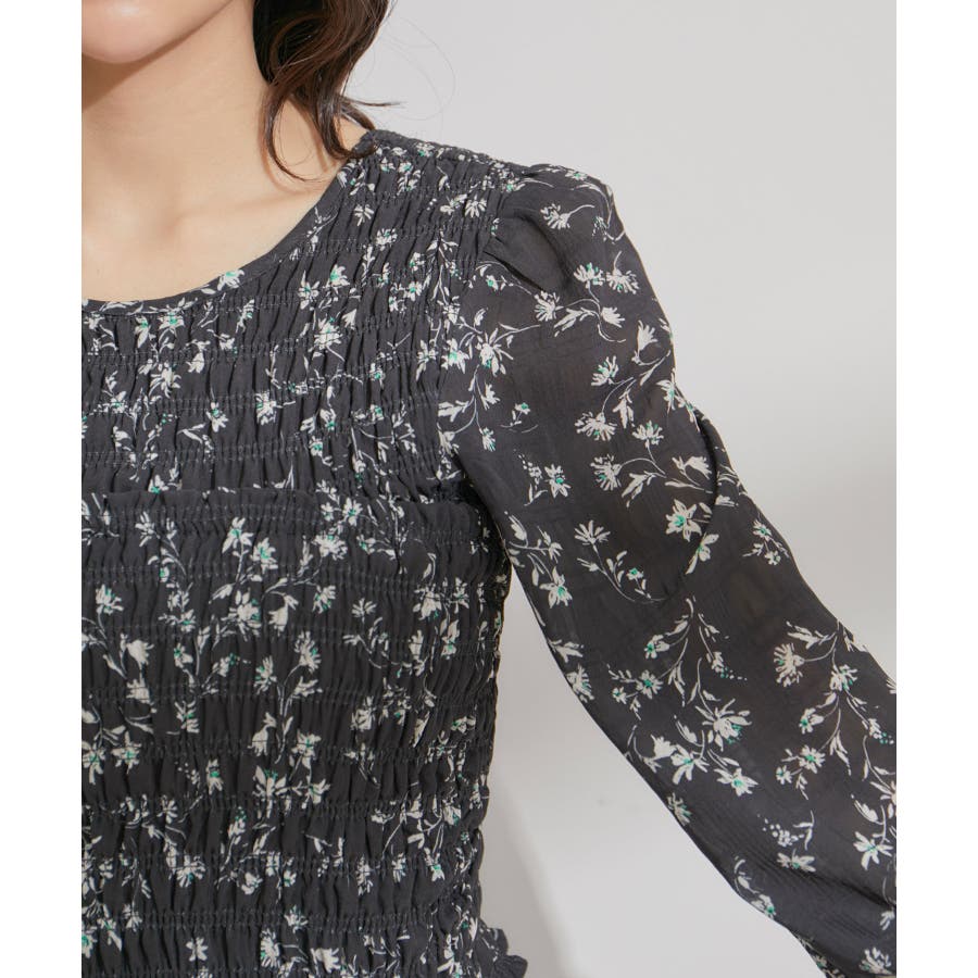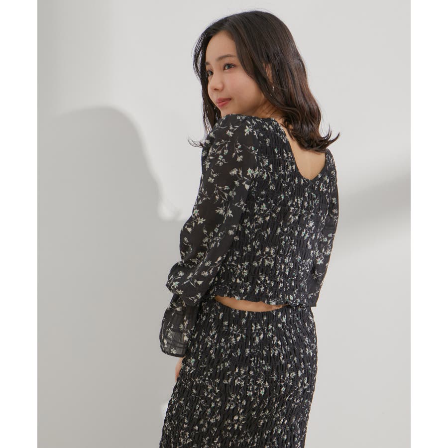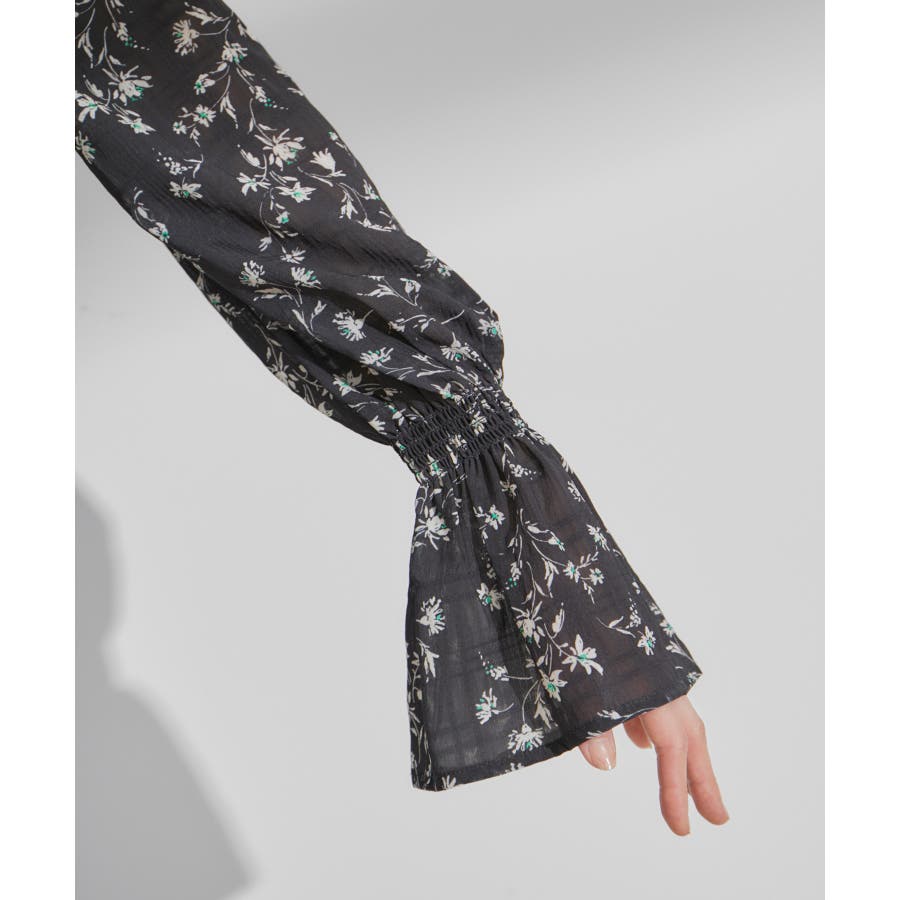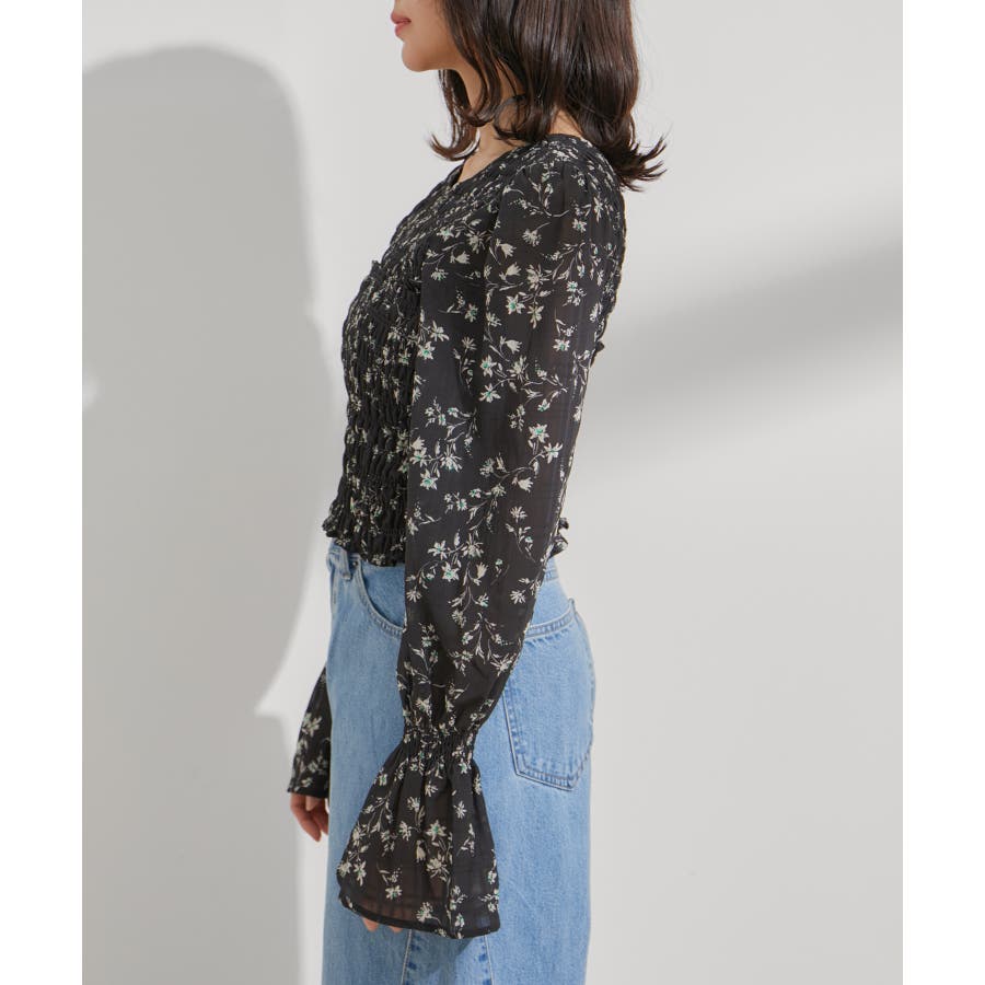 【セットアップ対応】花柄シャーリングブラウス