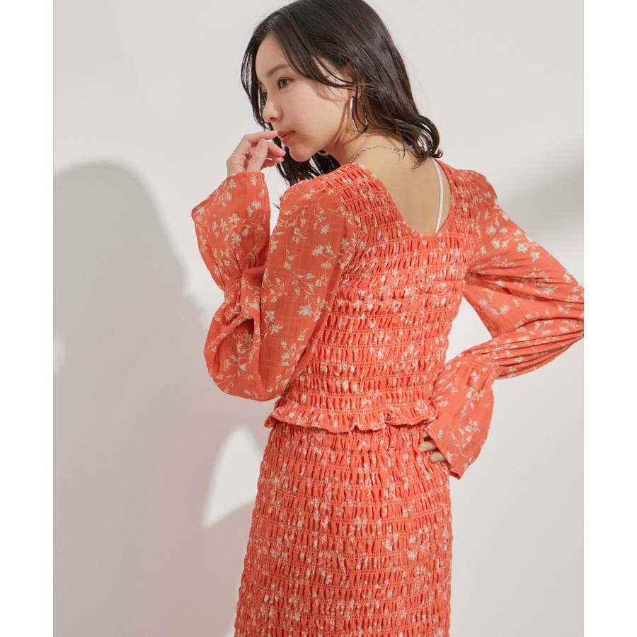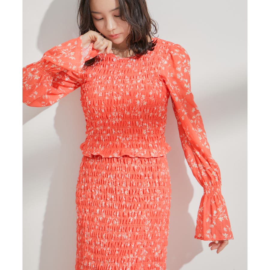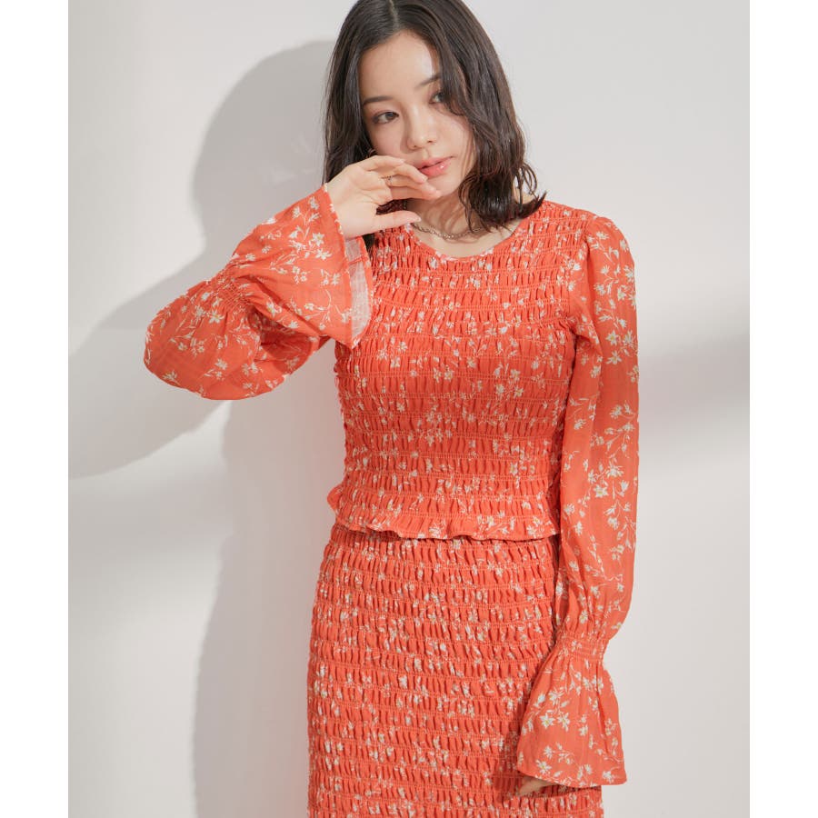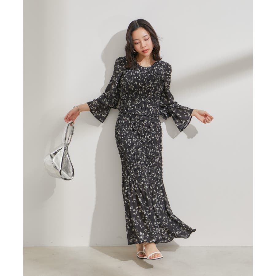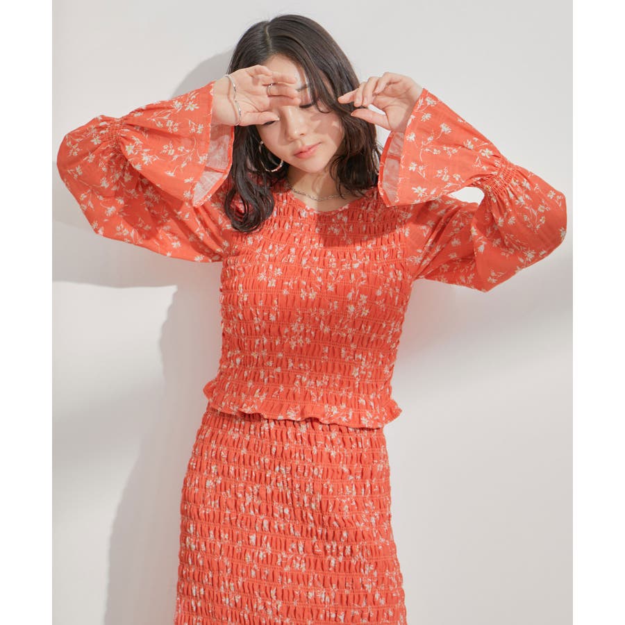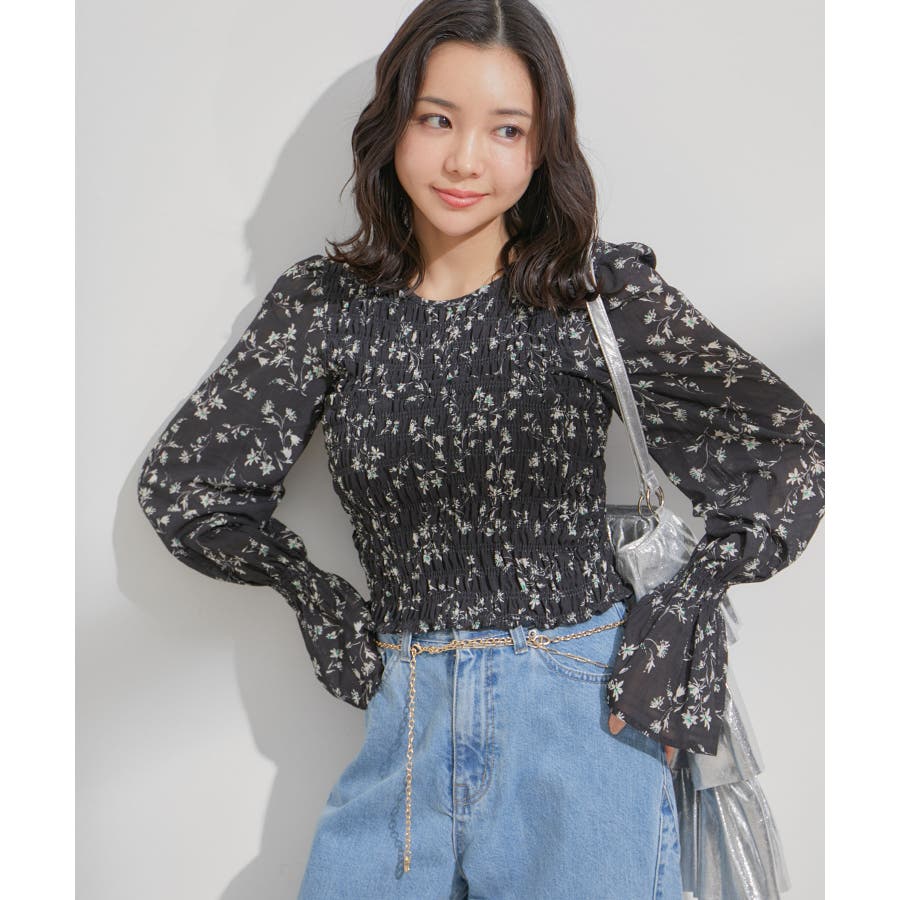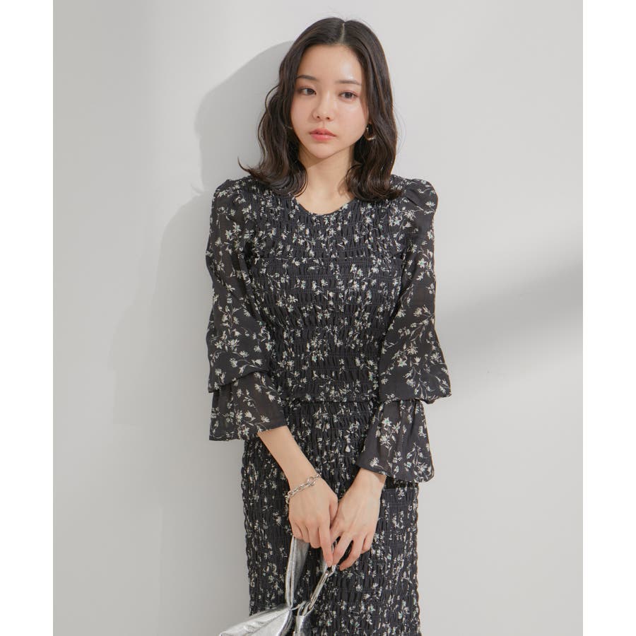 【セットアップ対応】花柄シャーリングブラウス