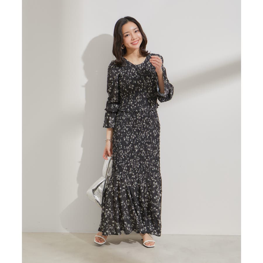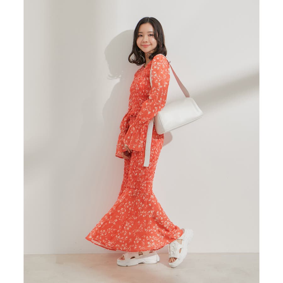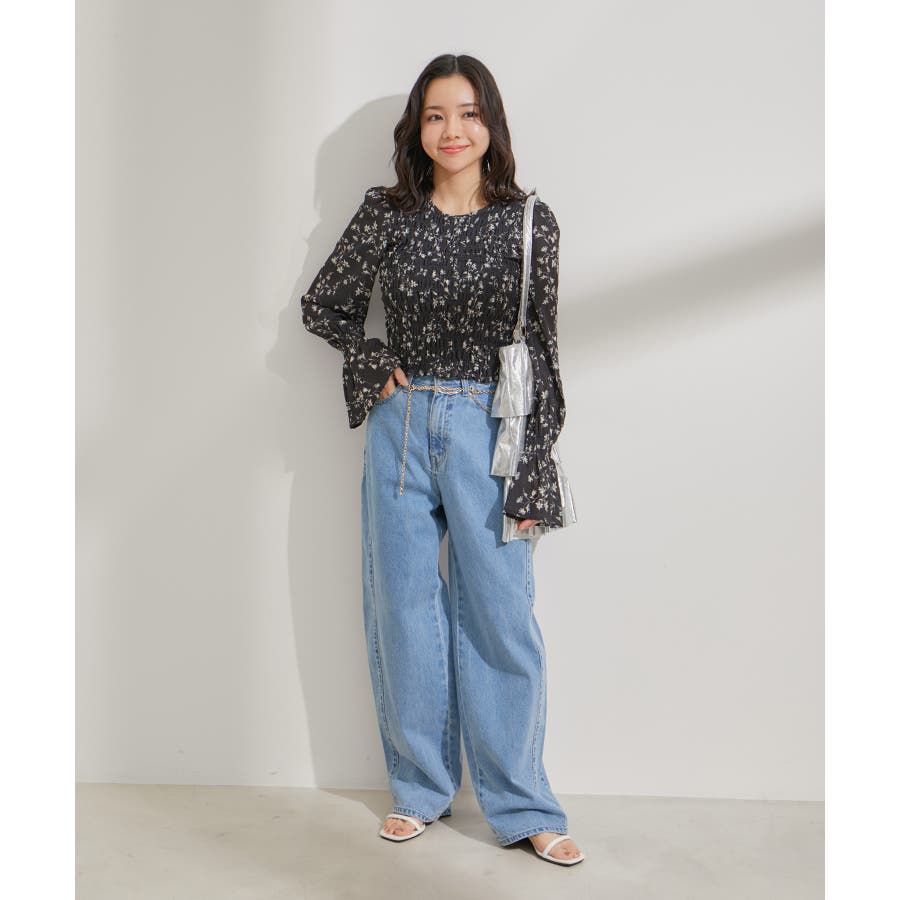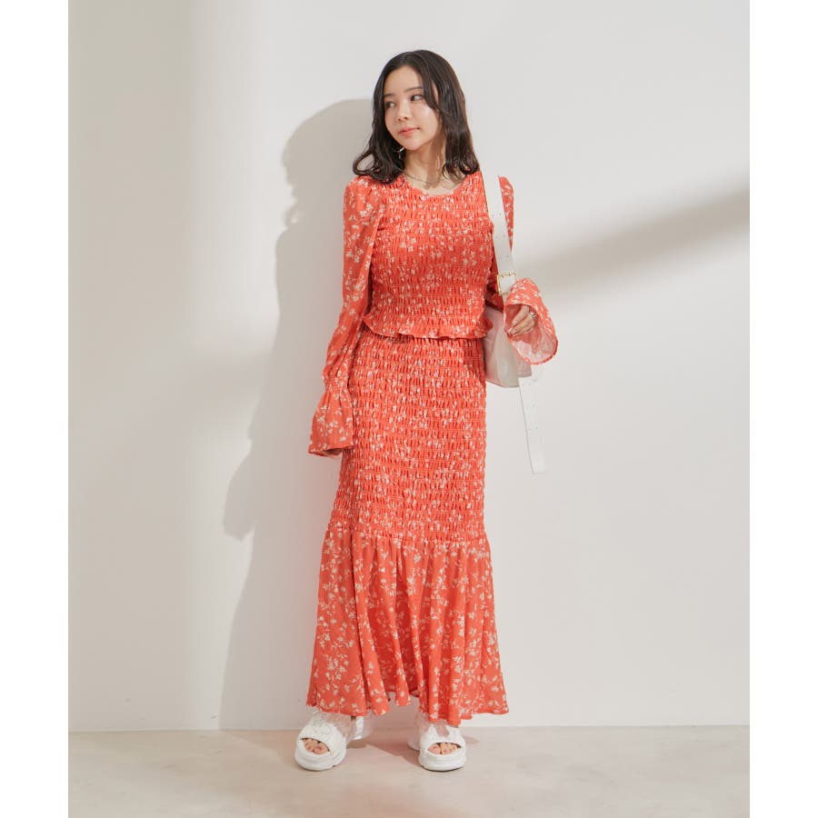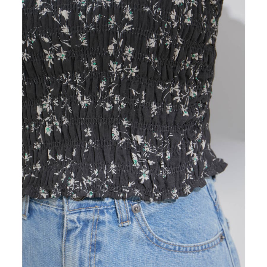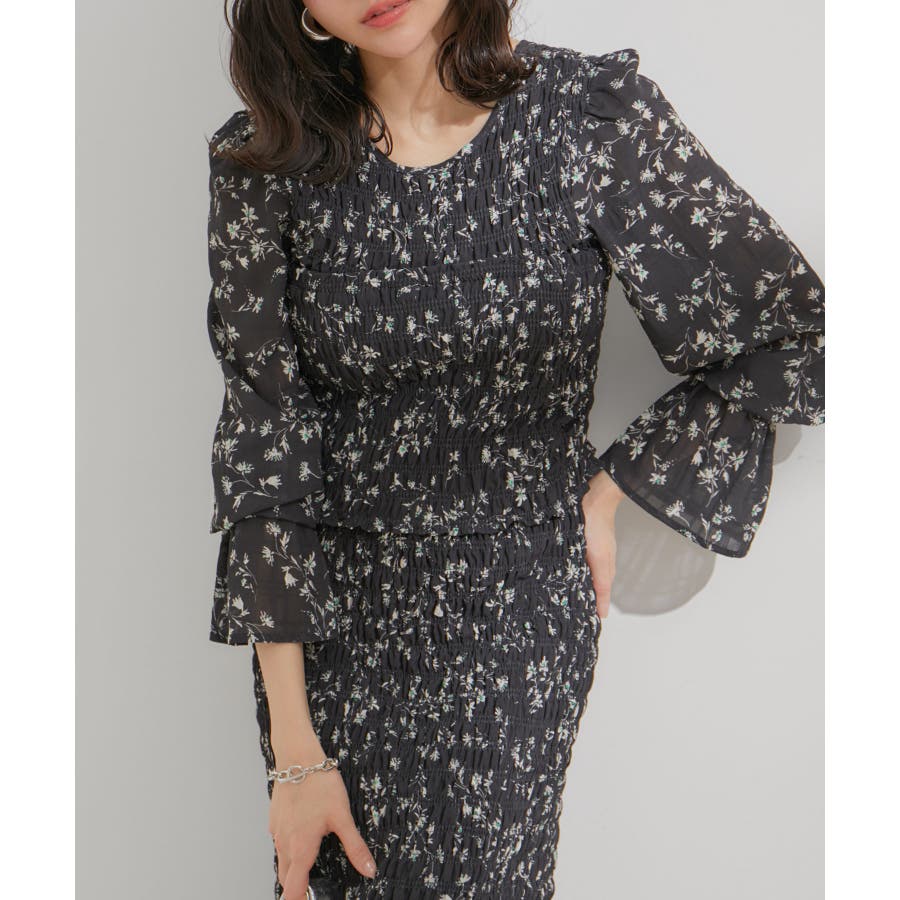 【セットアップ対応】花柄シャーリングブラウス