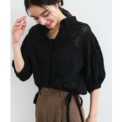 身頃はボクシーな形で、裾がドロストデザインなのでシルエットに変化を持たせられます。袖は立体的なバルーン袖でふんわりとしたボリューム感で女性らしい印象に。肌離れするので暑い時期もストレスなくご着用いただけます。アソートのブロックレース素材は繊細過ぎず、さりげなく花柄のレースでより気分を上げてくれます。