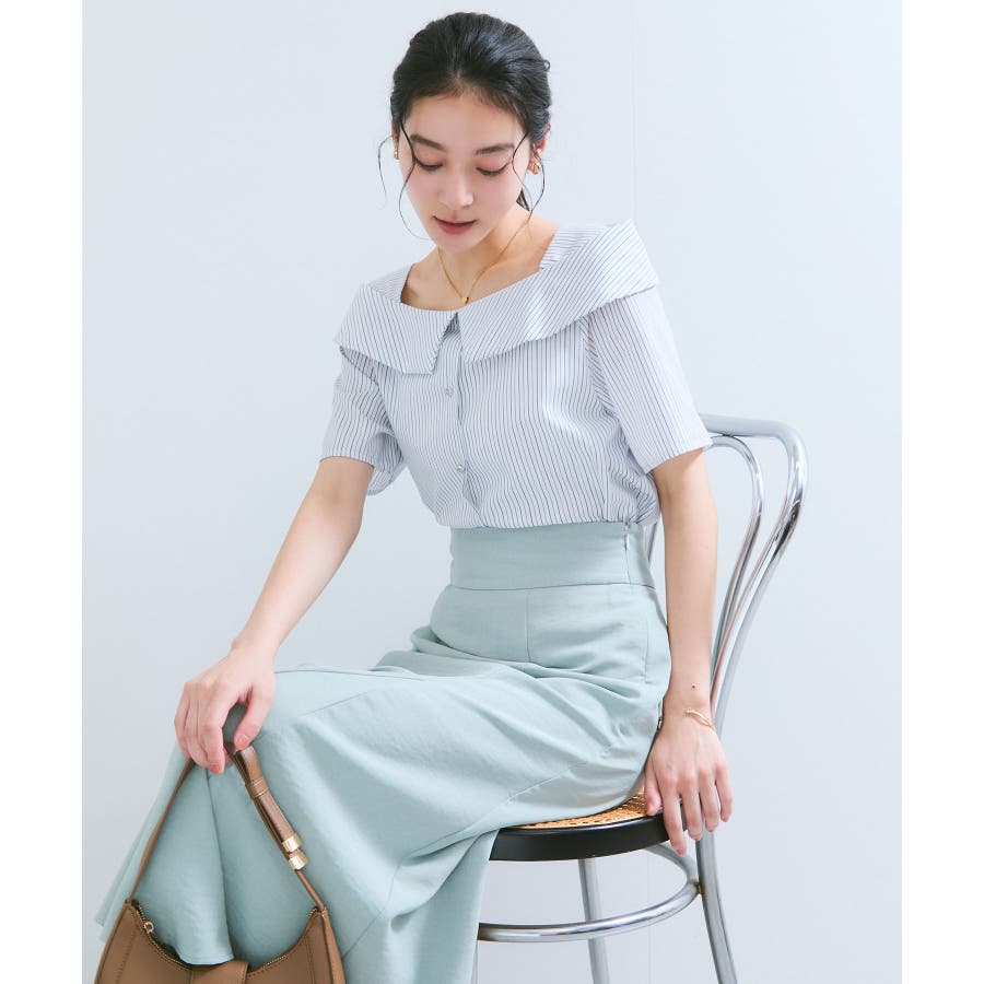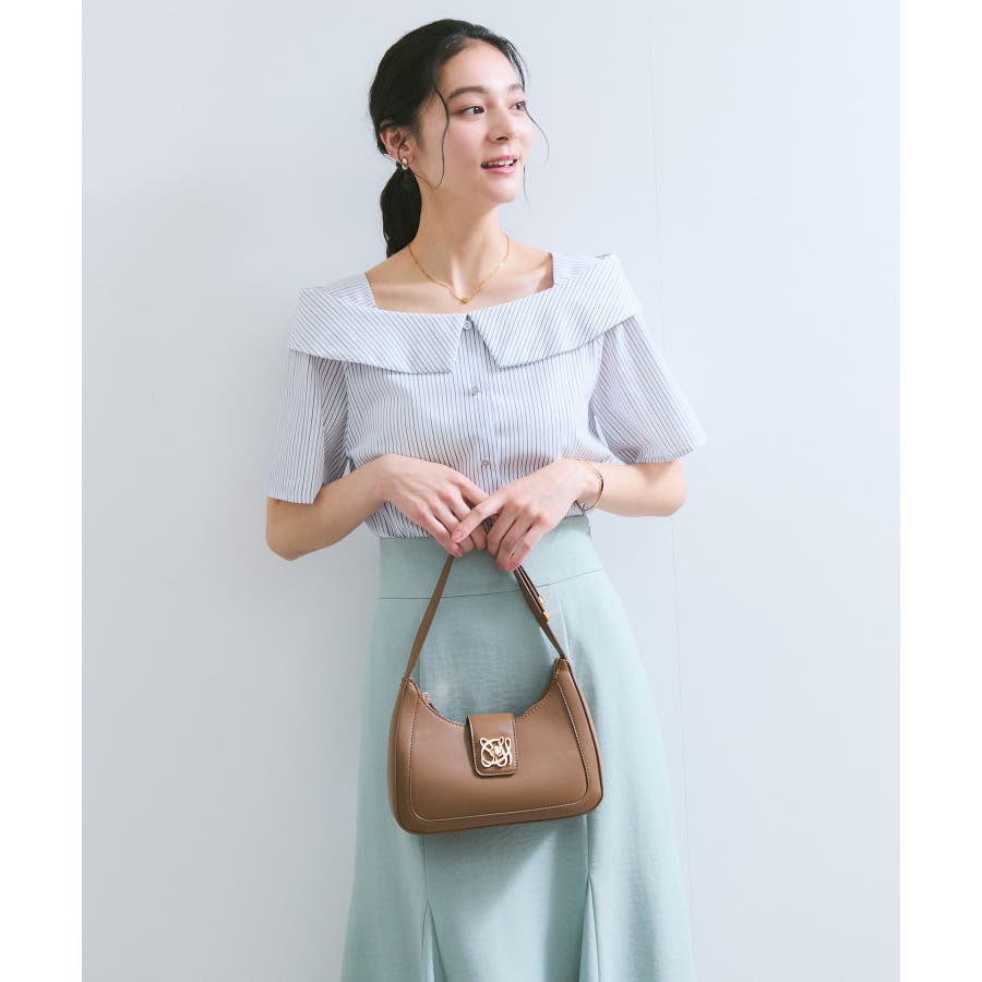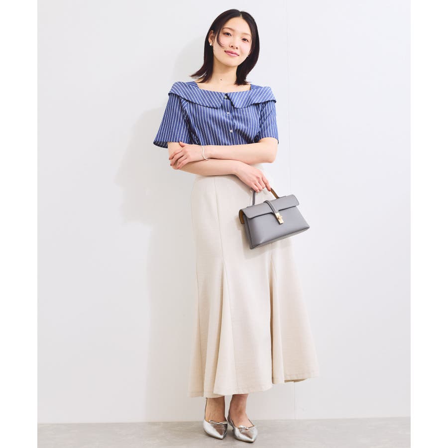 オフショルダーに挑戦したいけれど肩を前面に出すのは少し恥ずかしい、、という方にぜひ選んでいただきたい肩に生地が乗るようなデザインのブラウス。
