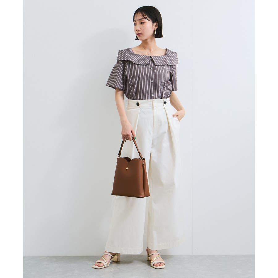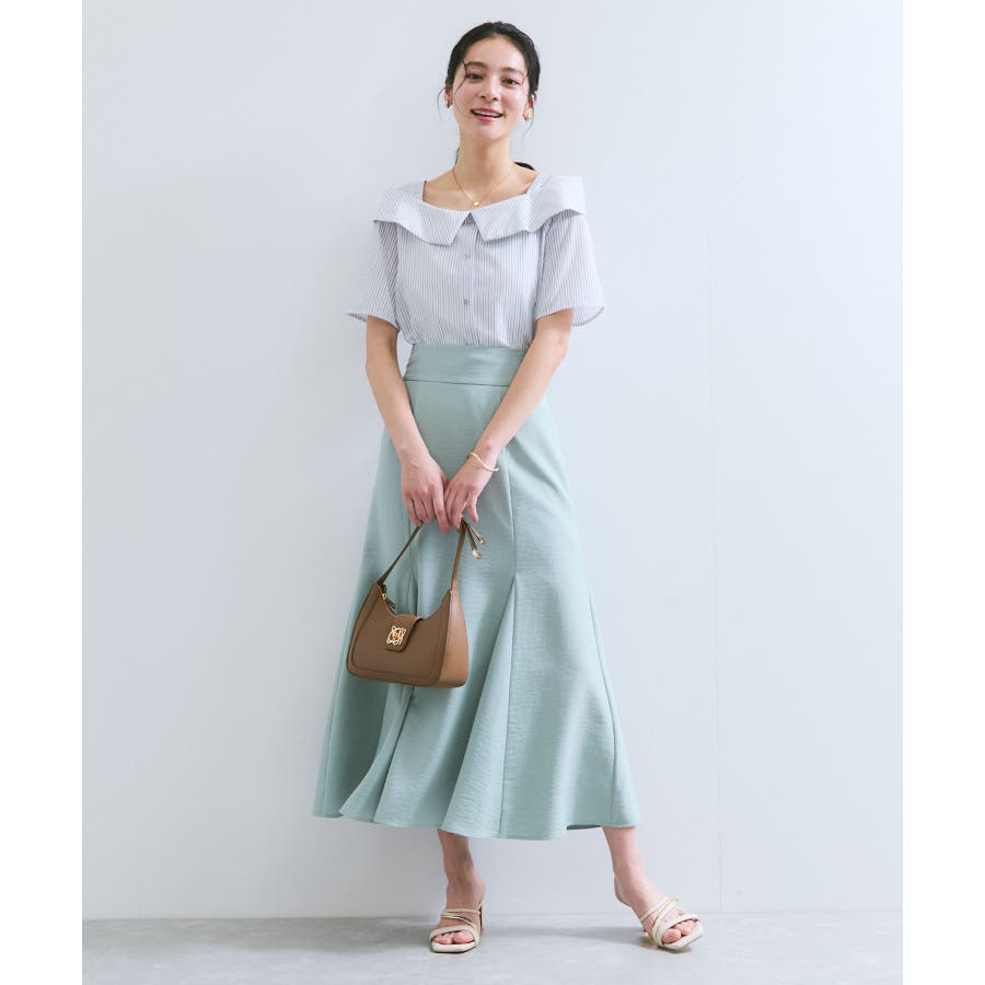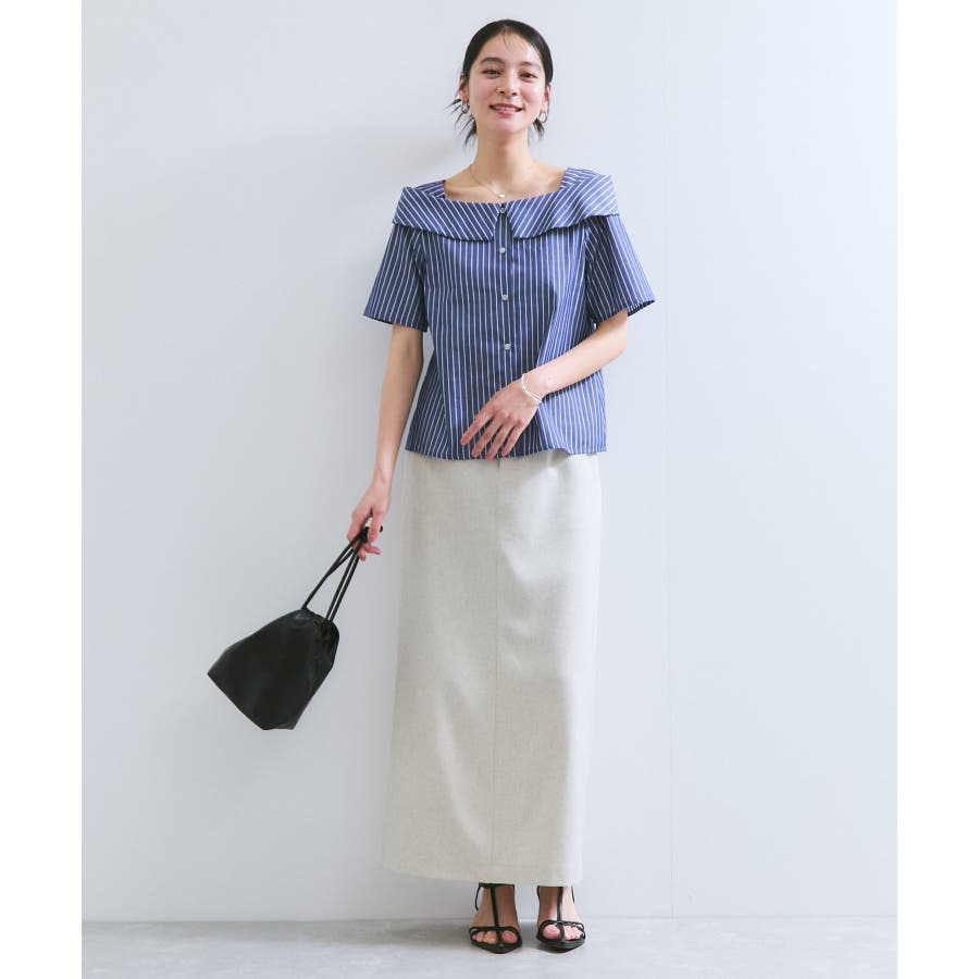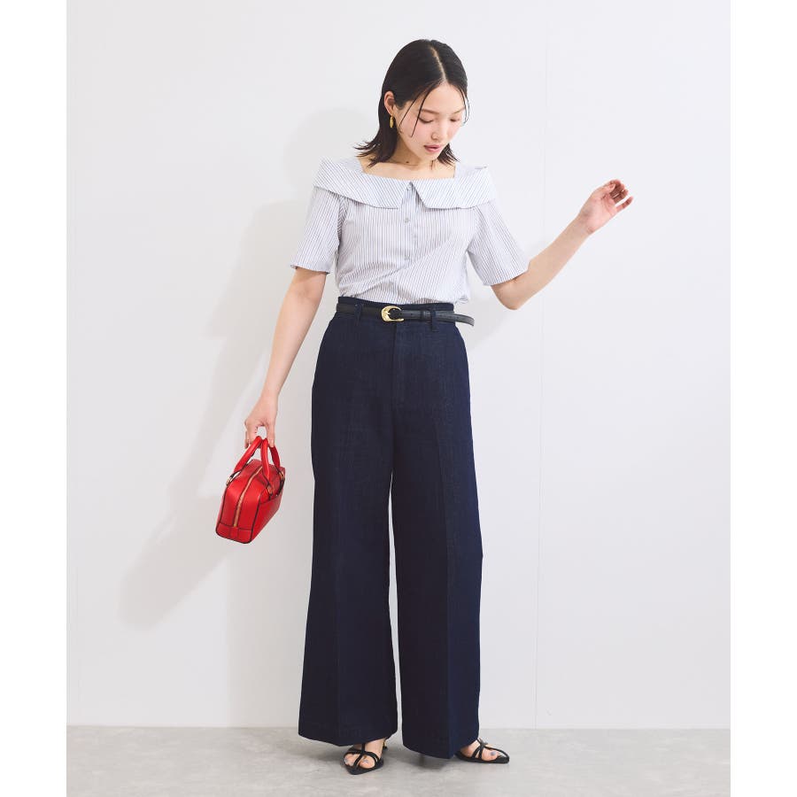 キレイ目シーンではインスタイル+ベルトでメリハリを出すことで、通勤やお出かけシーンでもきちんと感をイメージできるスタイリングが完成します。