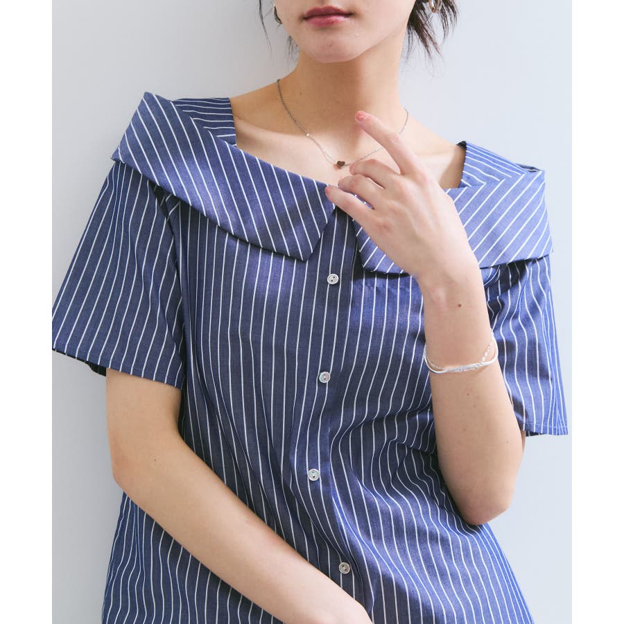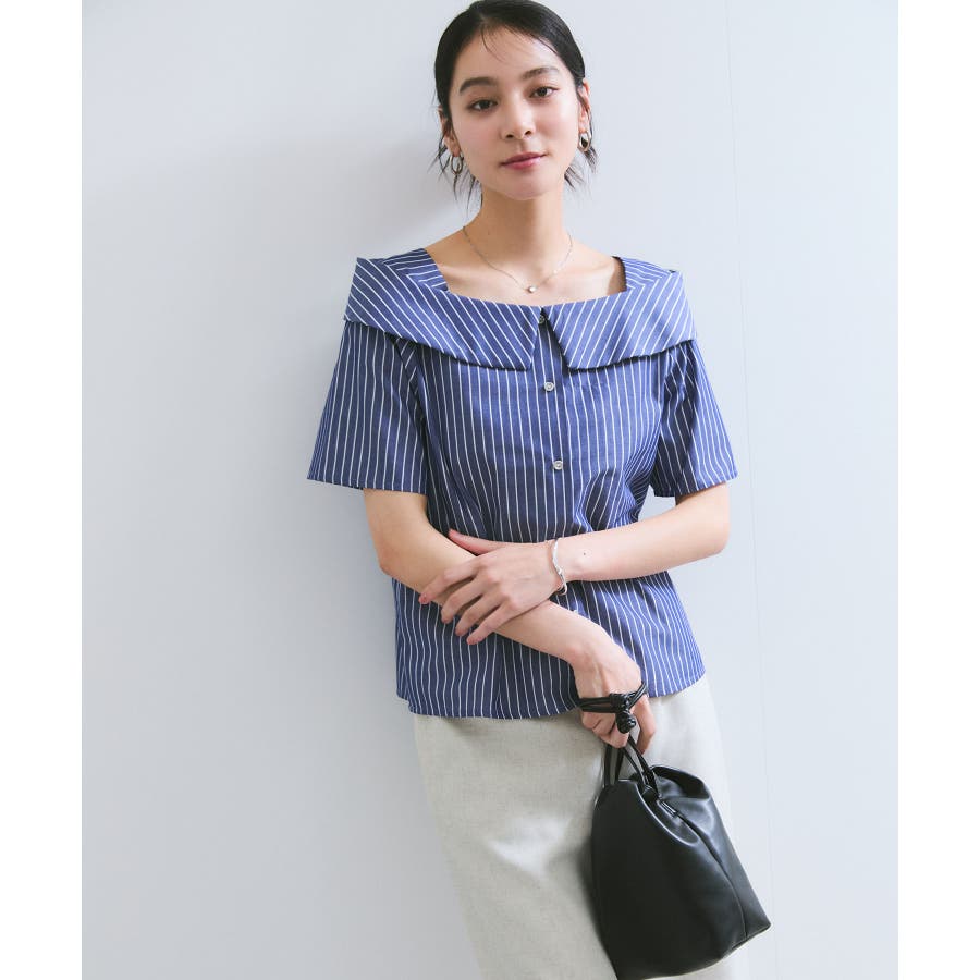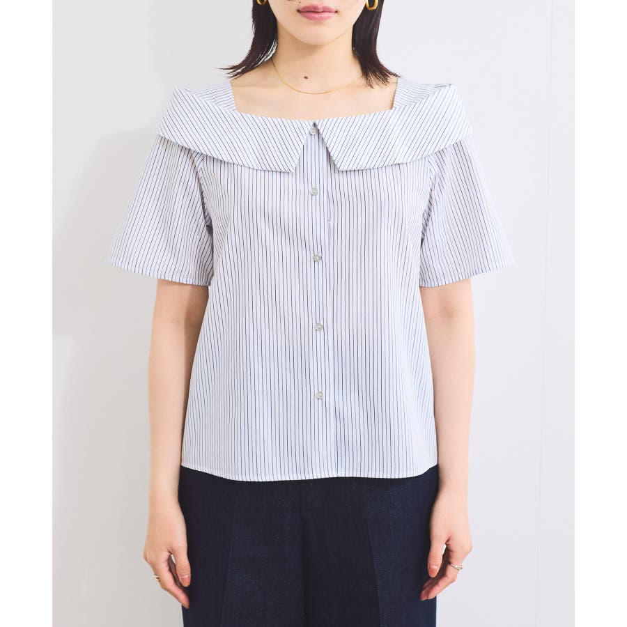 釦のきらっとポイントも爽やかさを演出してくれます。 同シリーズの長袖バージョン(品番:BVH65110)も展開。