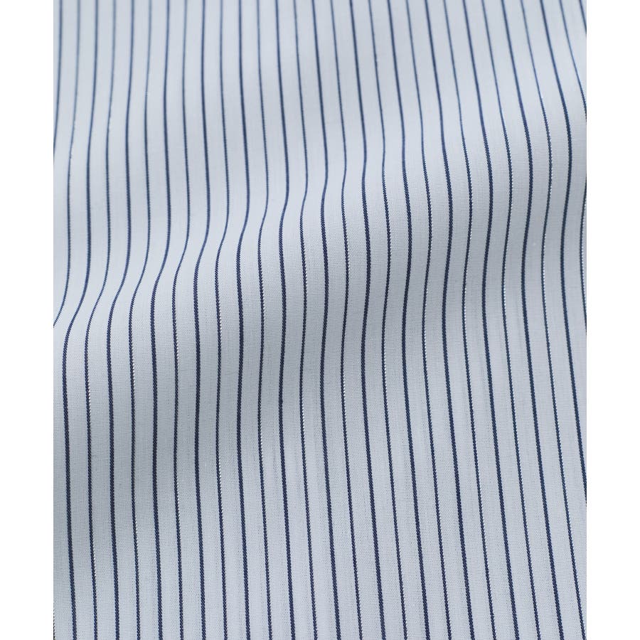 ラメミックスのストライプのシャツ地。イージーケアでしわになりにくい素材。