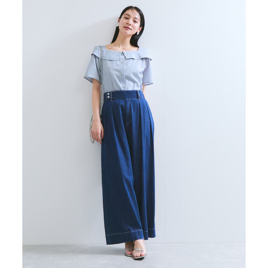 マリンテイストな細いストライプで縦のラインを強調します◎