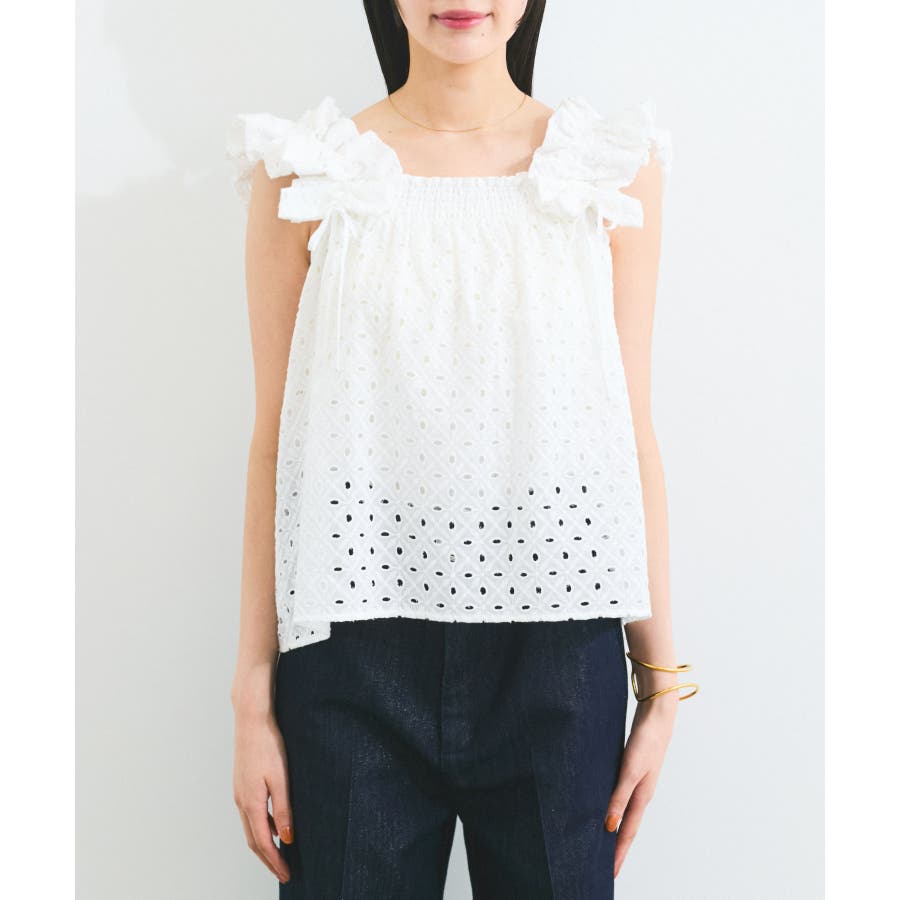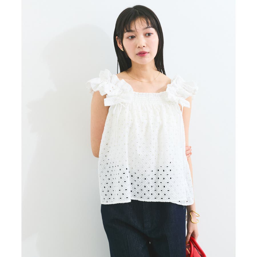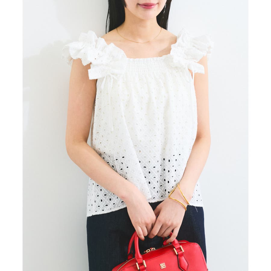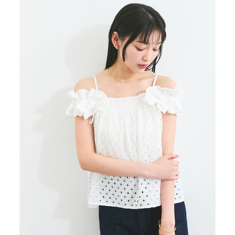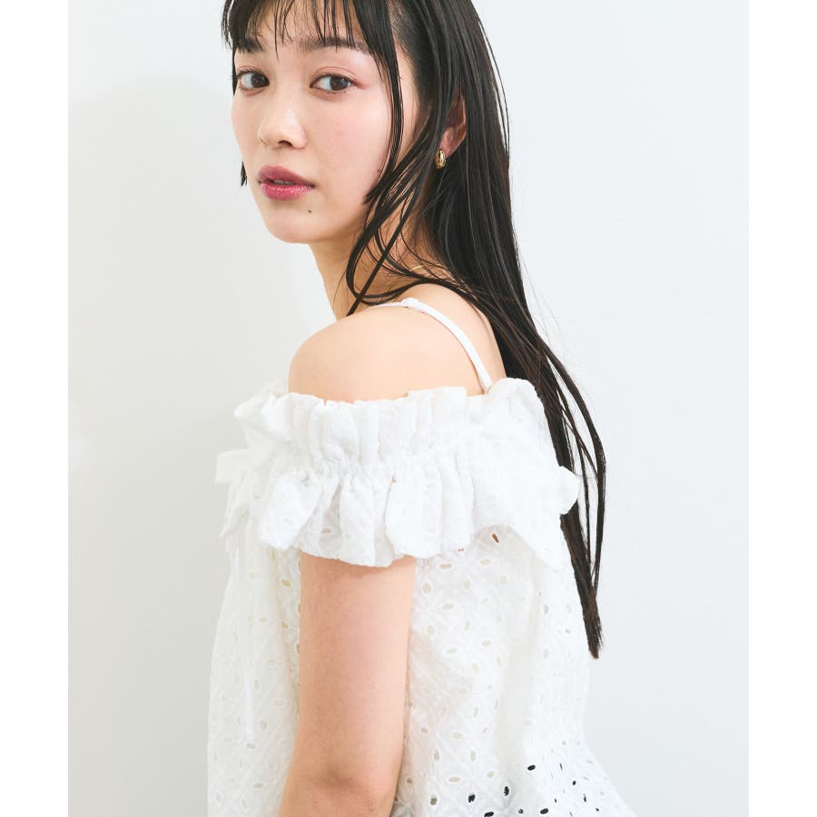 【2WAY】エンブロイダリーレースショルダーブラウス