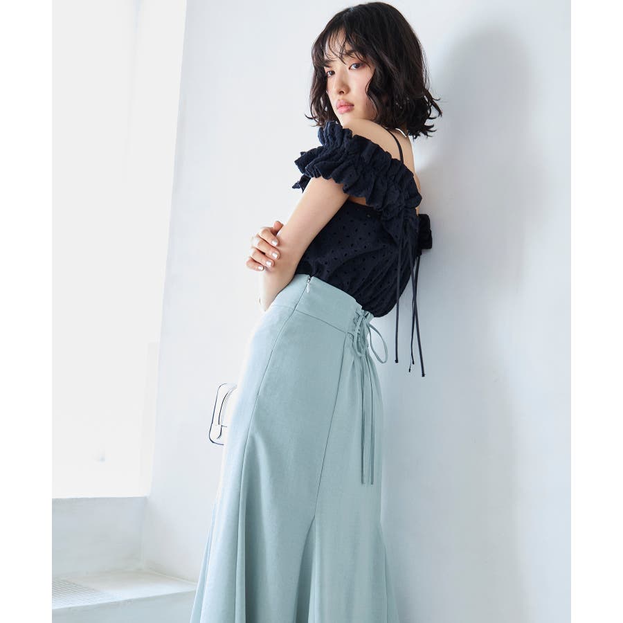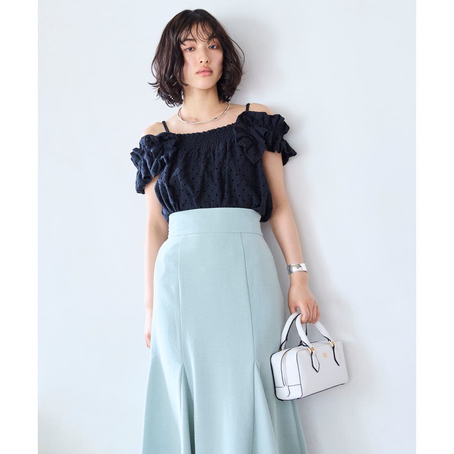 ・細めの肩紐がついているのでオフショルダーで着るのもおすすめ(2WAY仕様)。