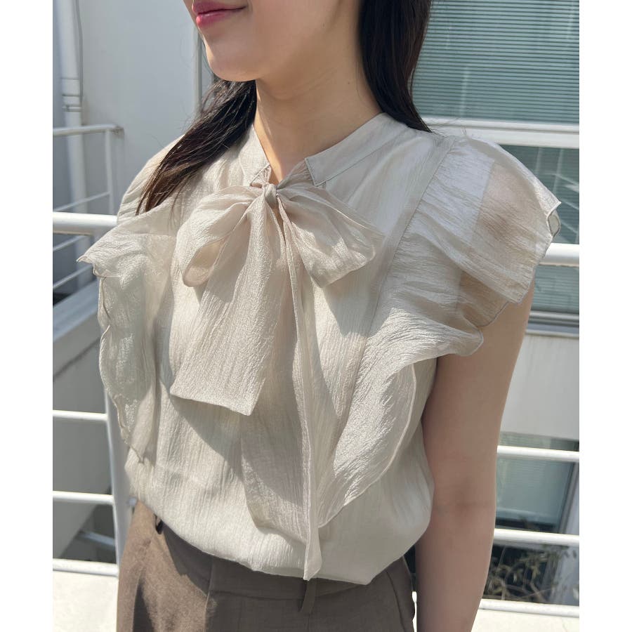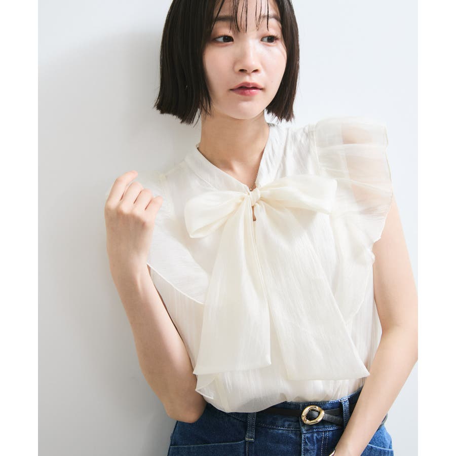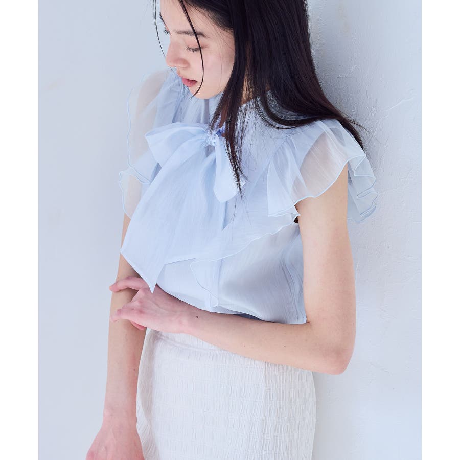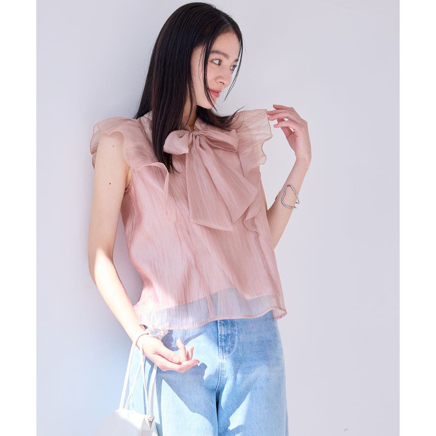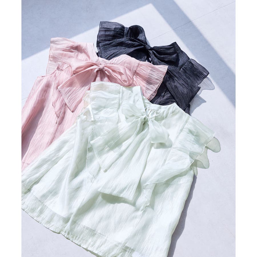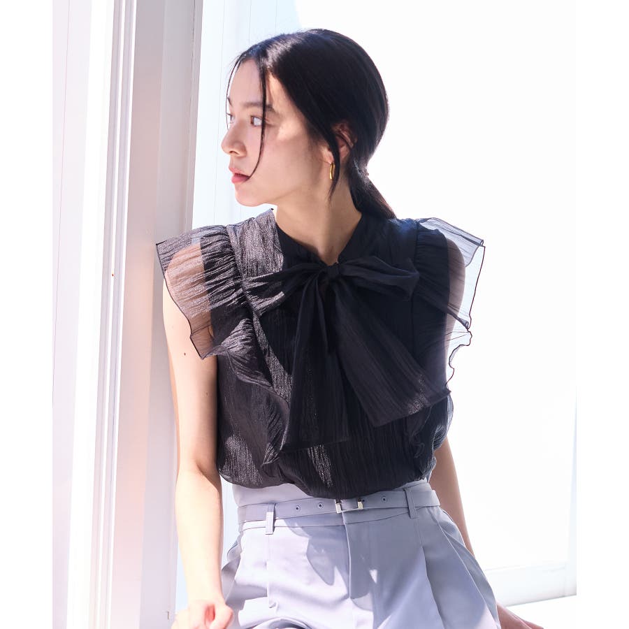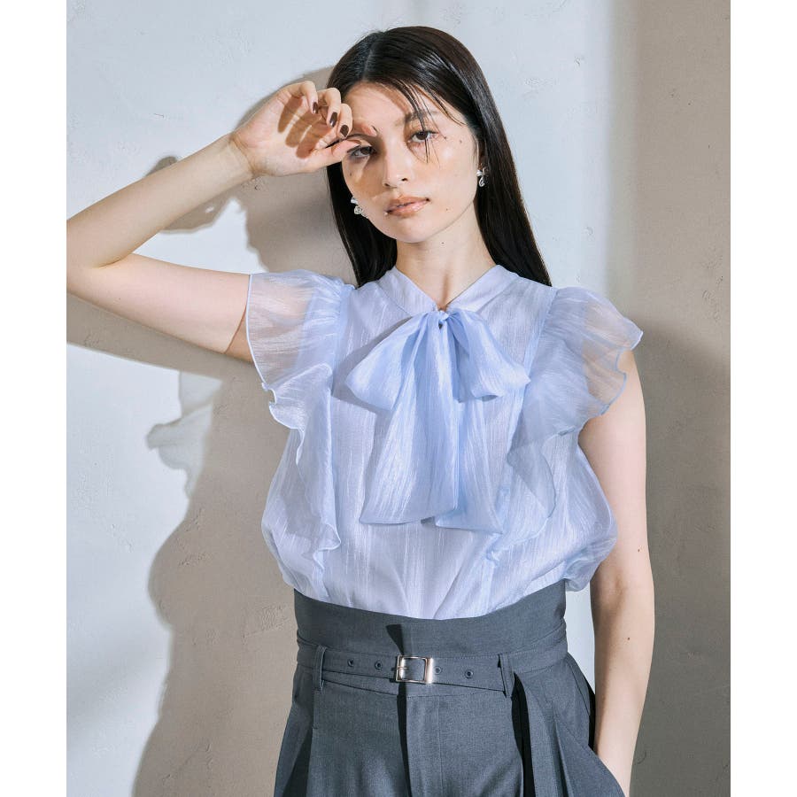【店頭人気】主役級!華やぎシアーシャイニーボウタイフリルブラウス【前後2WAY】…
