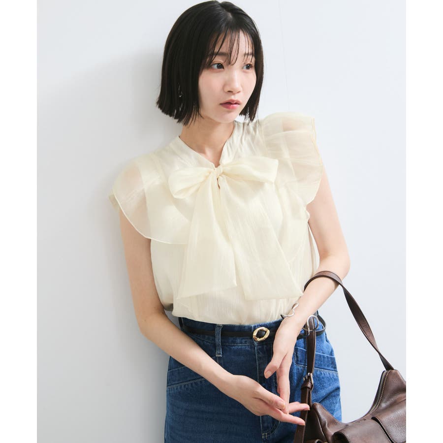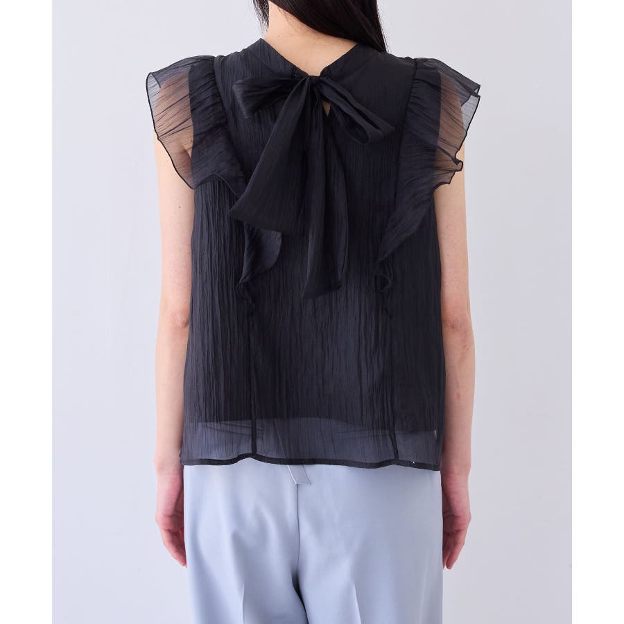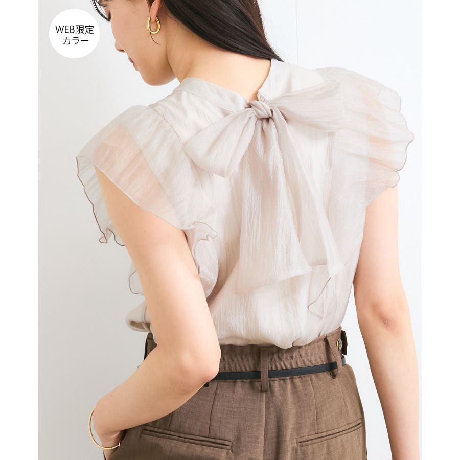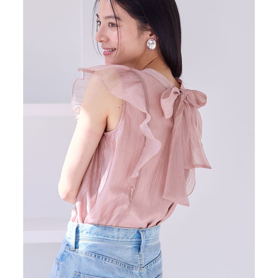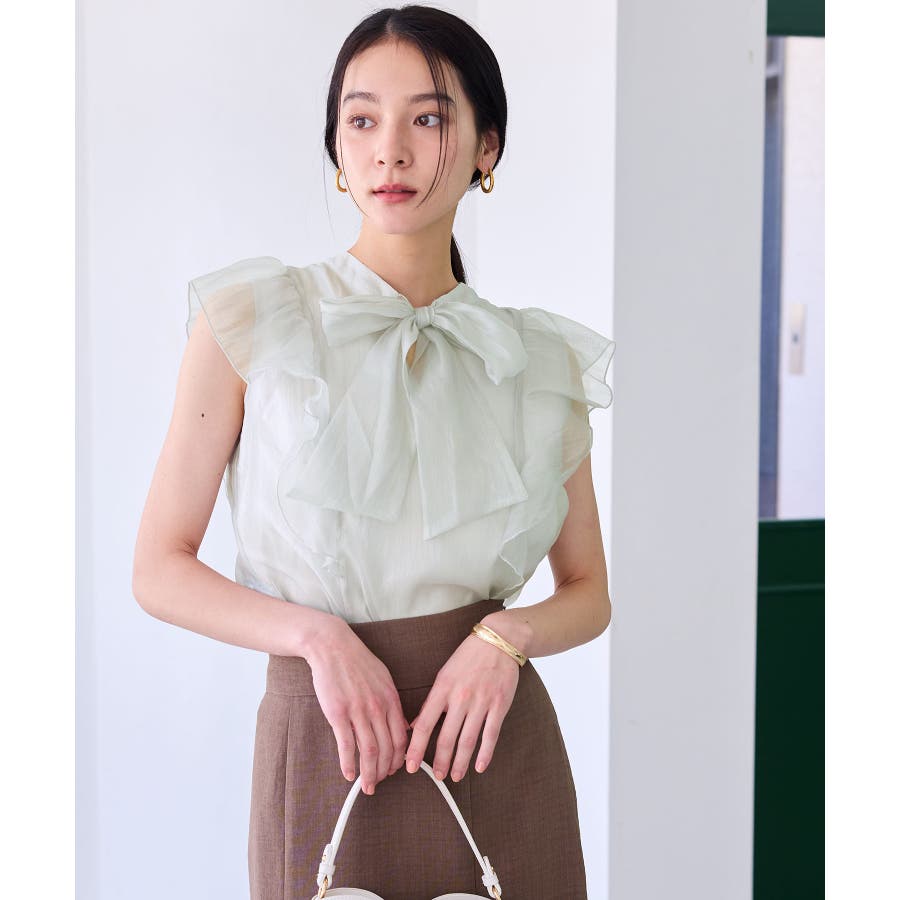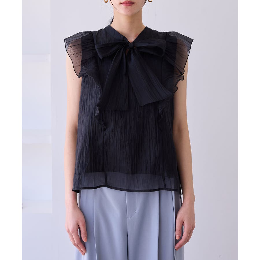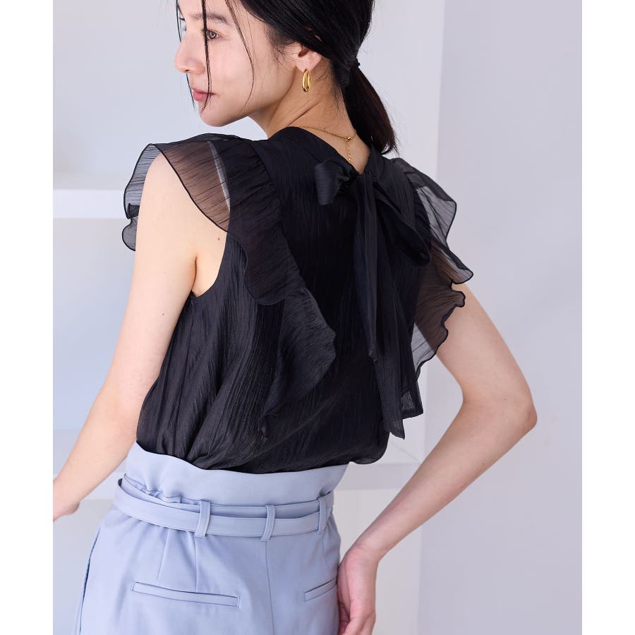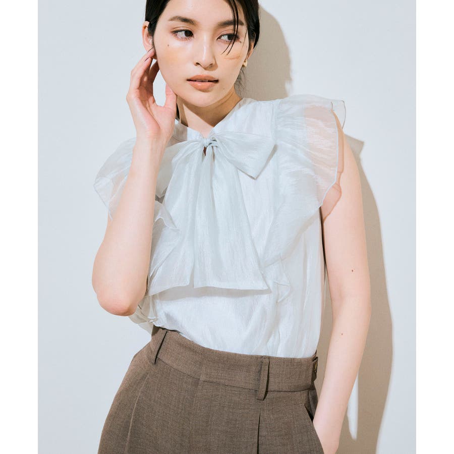 【店頭人気】主役級!華やぎシアーシャイニーボウタイフリルブラウス【前後2WAY】…