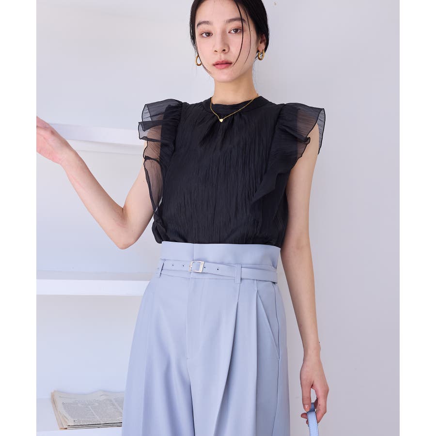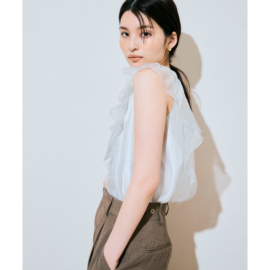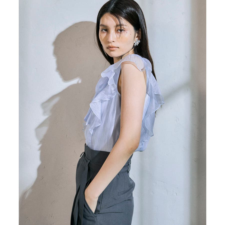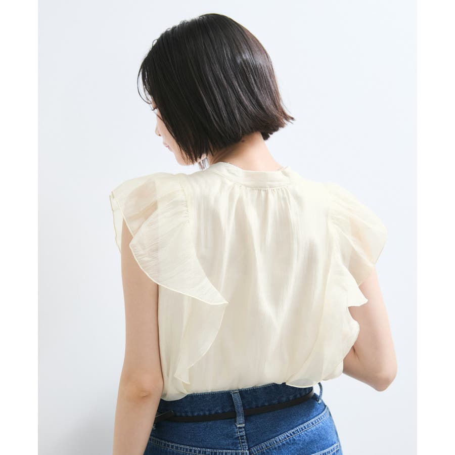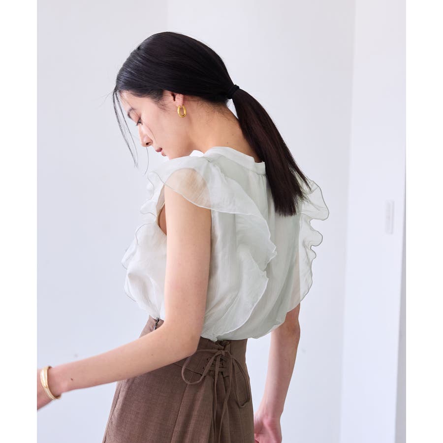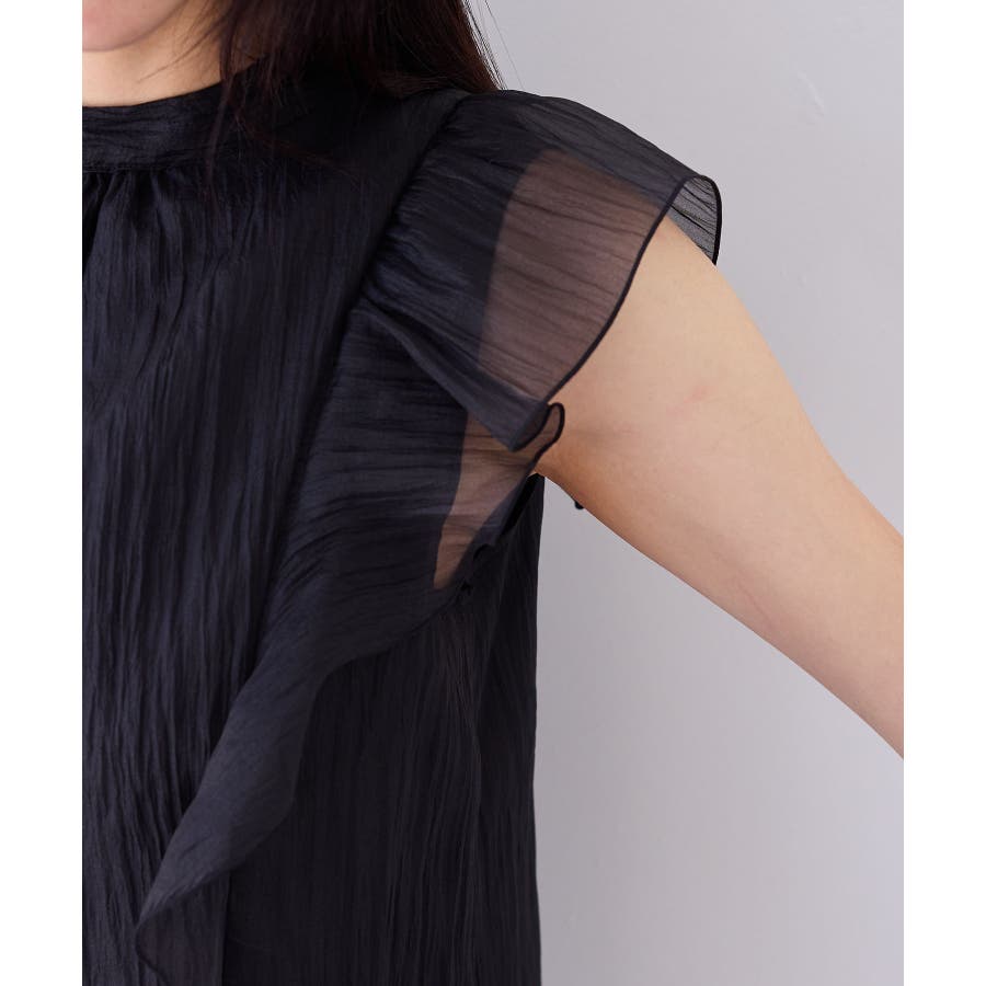フェミニンさのあるフリルが二の腕にかかりカバーもできます。
