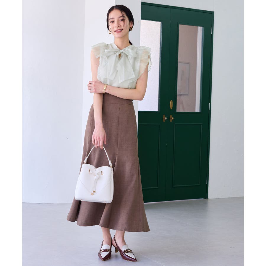 柔らかい印象のブラウスなので、清潔感がありオフィスシーンにもピッタリ!