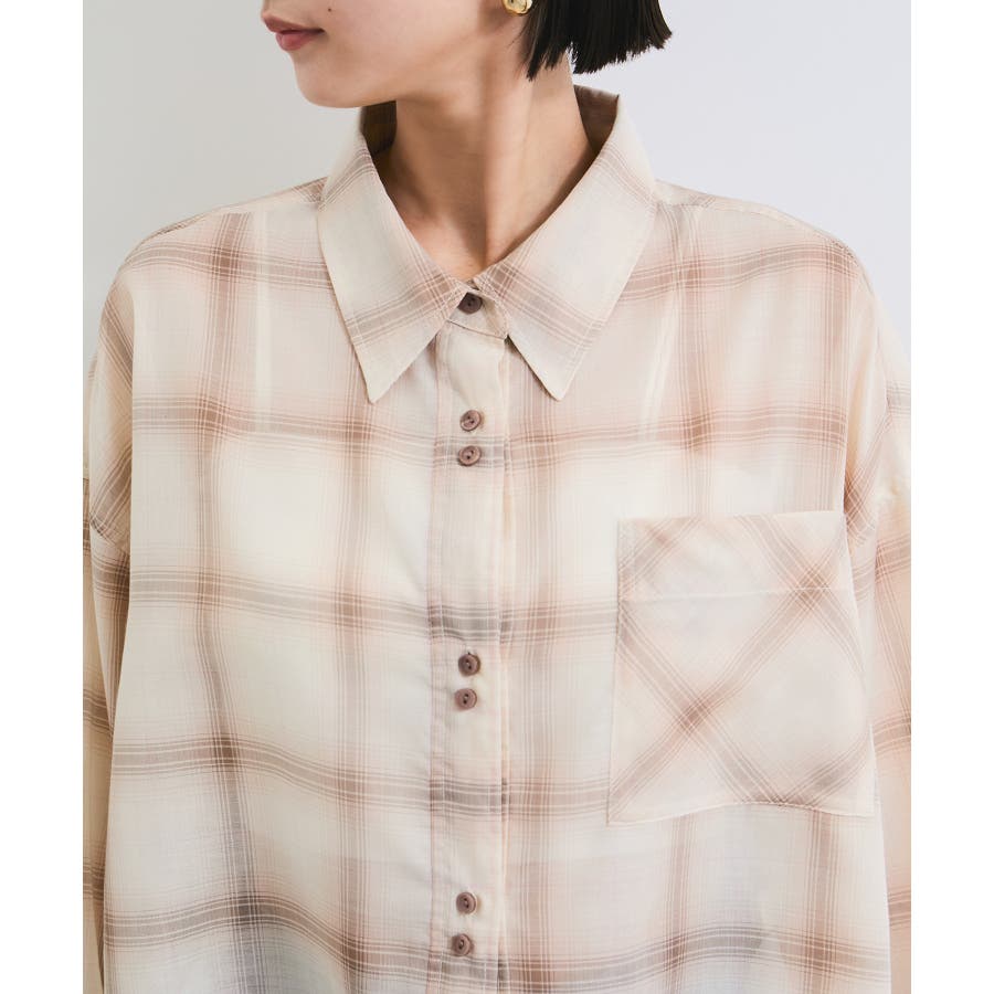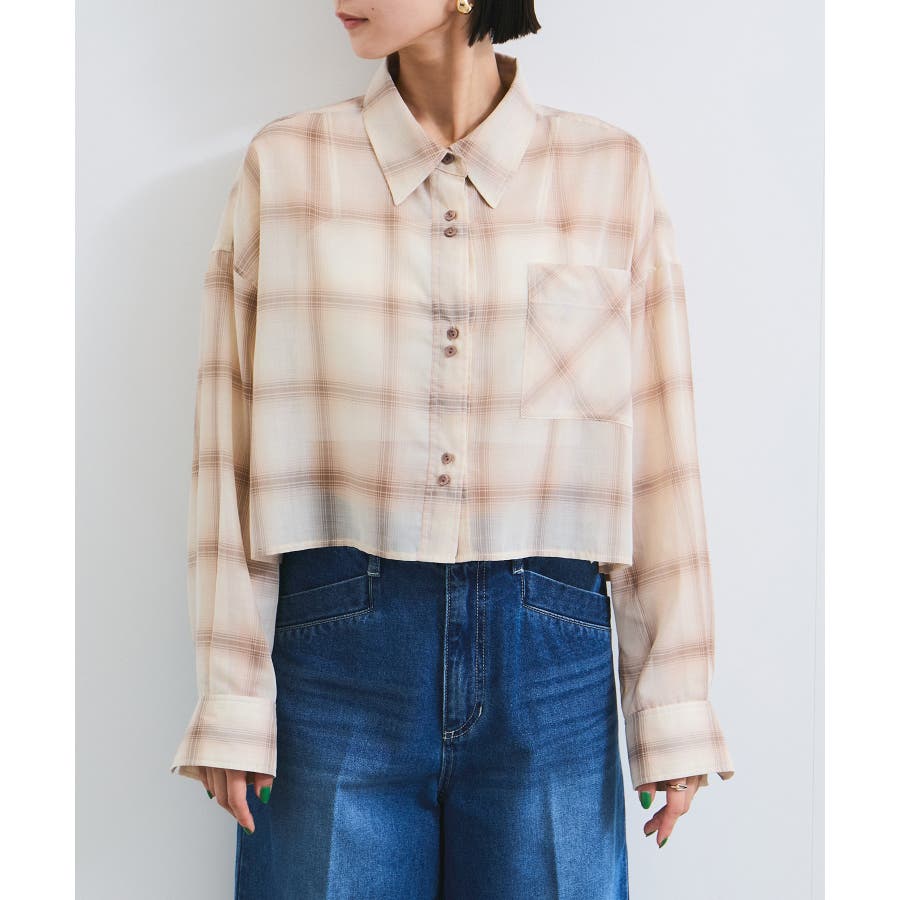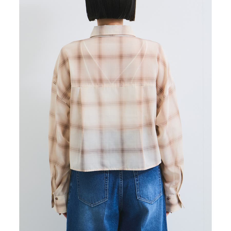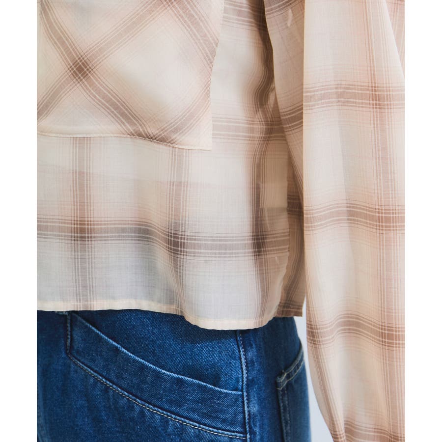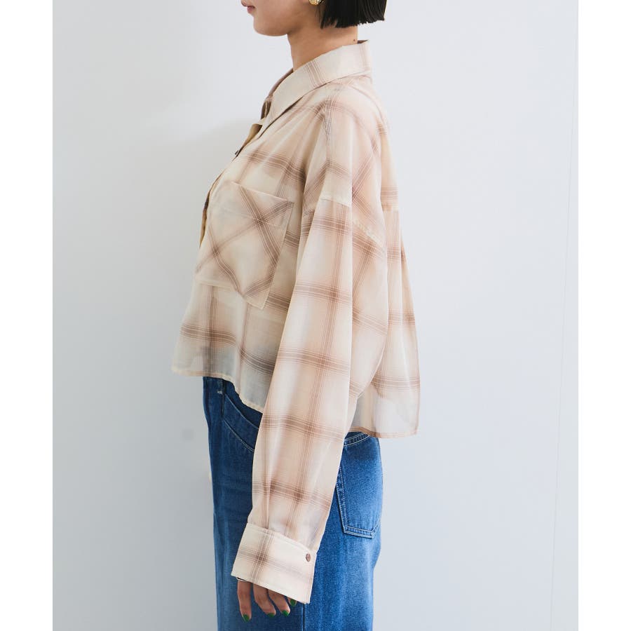 シアー&チェックショート丈シャツ