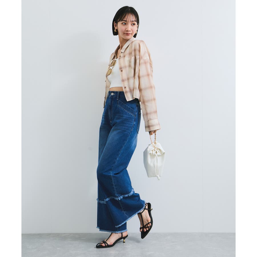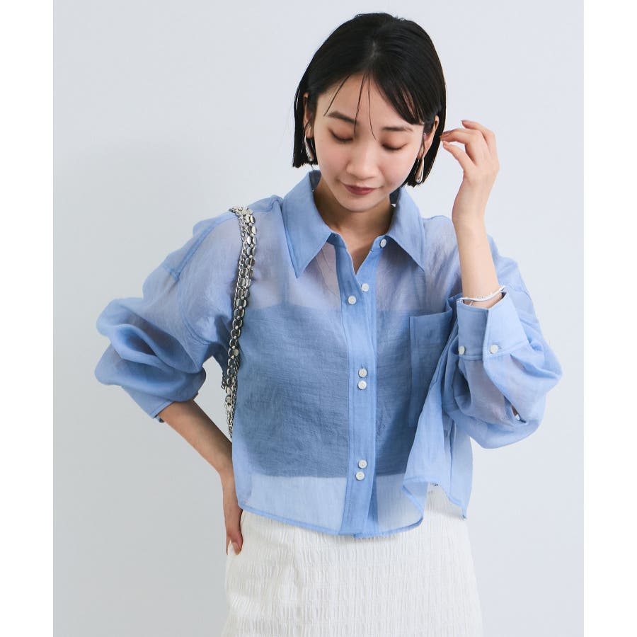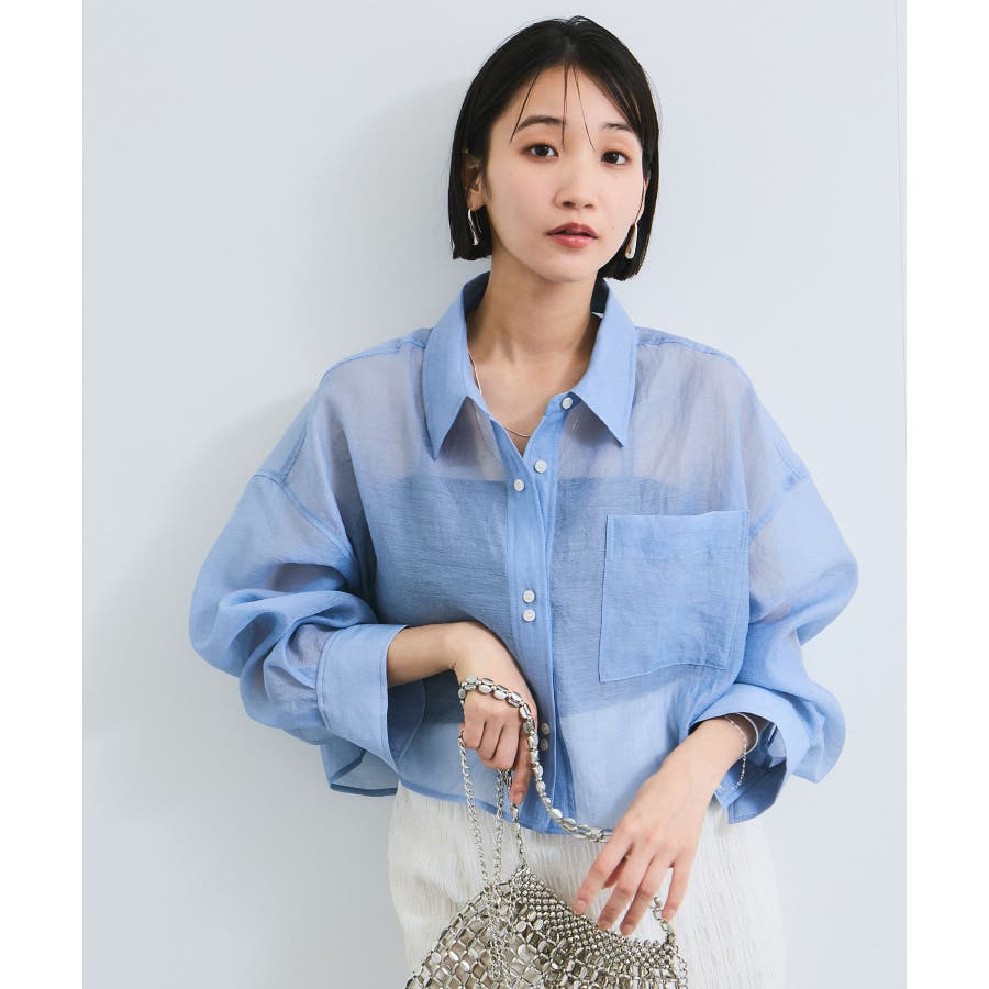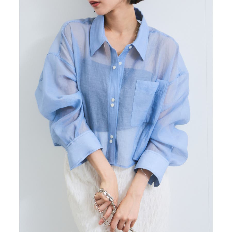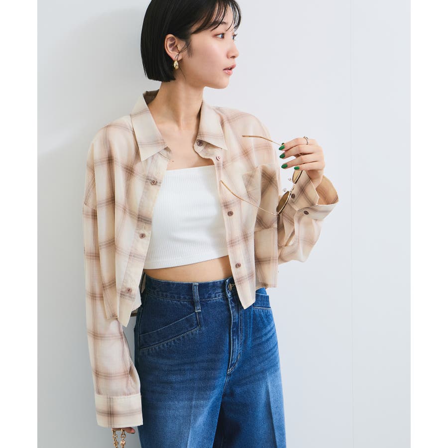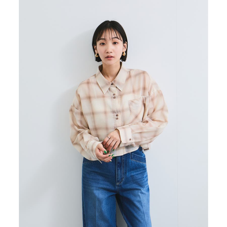 シアー&チェックショート丈シャツ