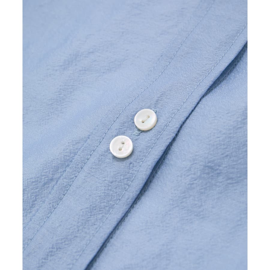 さらっとした肌触りでストレスなくご着用いただけます。透けすぎないので秋口まで長く着まわせます。col、45ブルーは表面にややシボ感のある素材を使用しています。