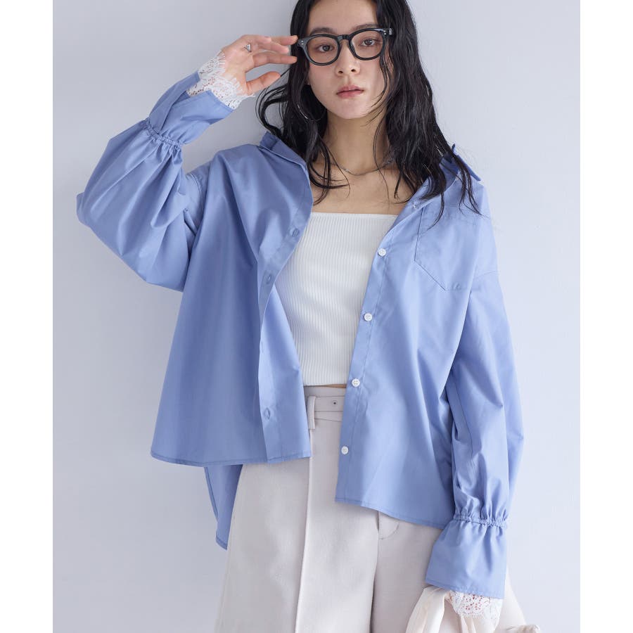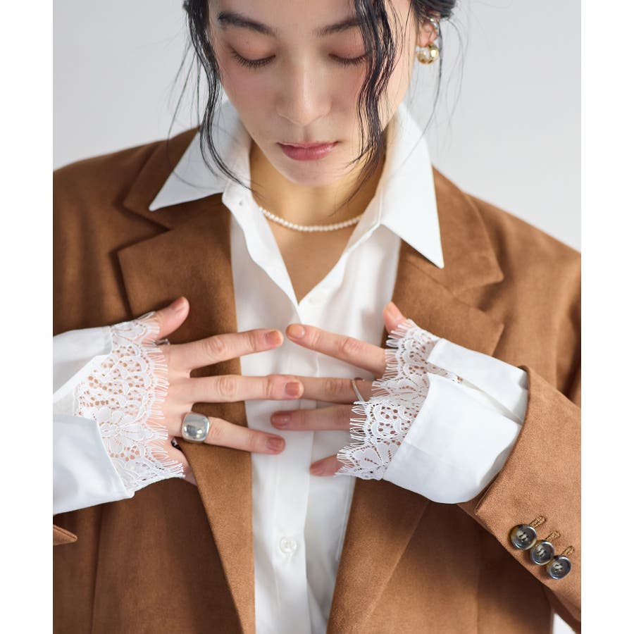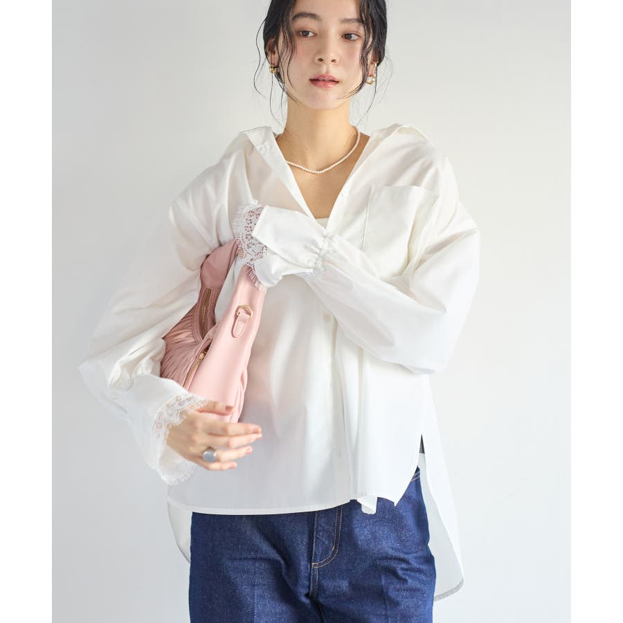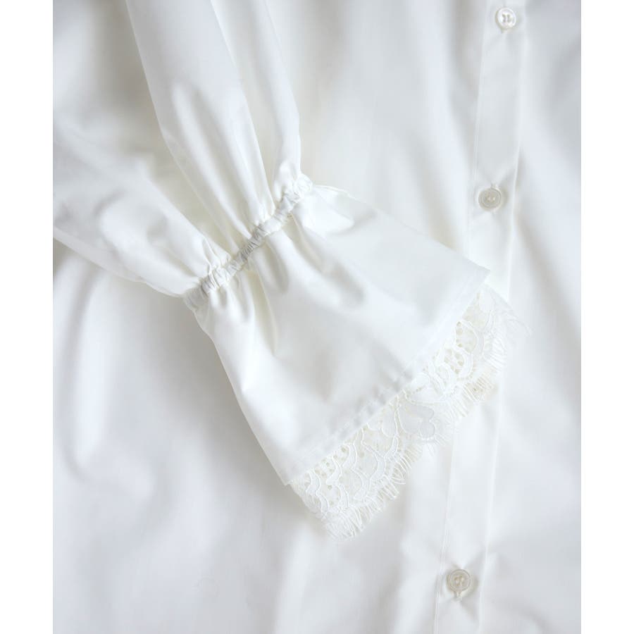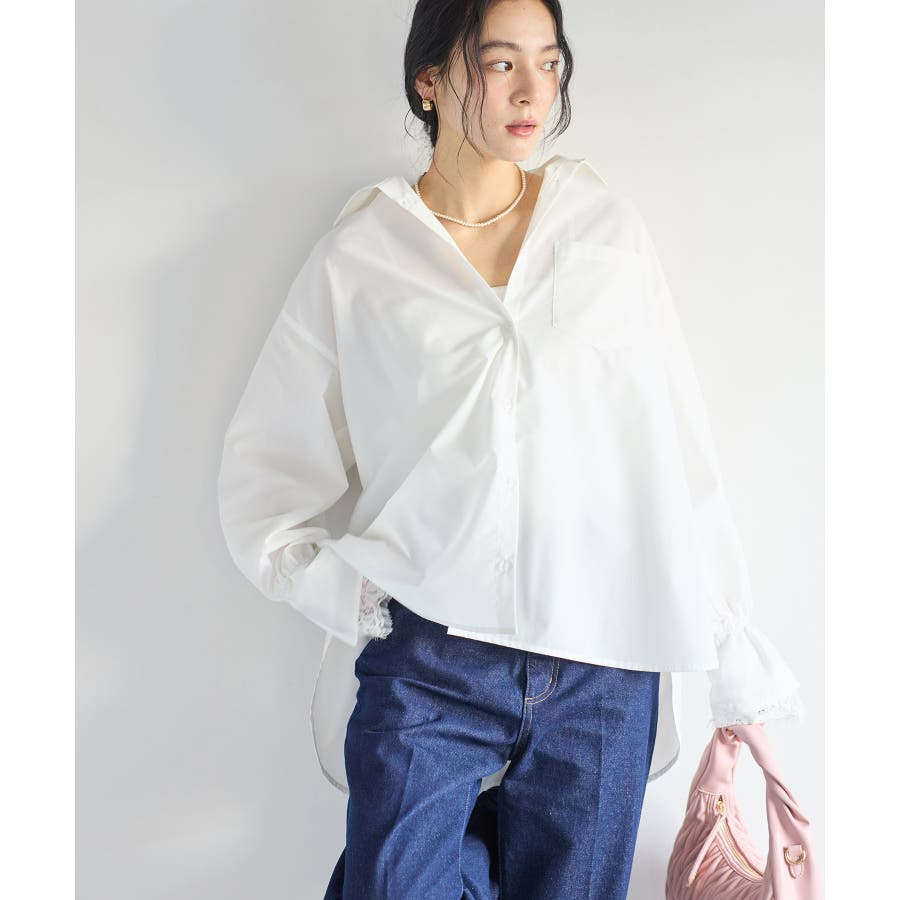 スカラップレースが高見えしてくれます。首元はシンプルにすっきりと品良く見せてくれるレギュラーカラー。シンプルながらも存在感があり、袖をチラリと出してアウターやカーディガンとのレイヤードスタイルにもぴったり。