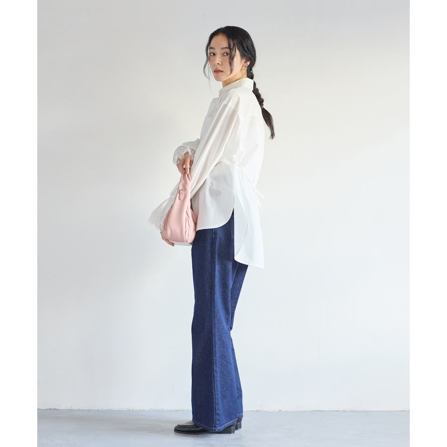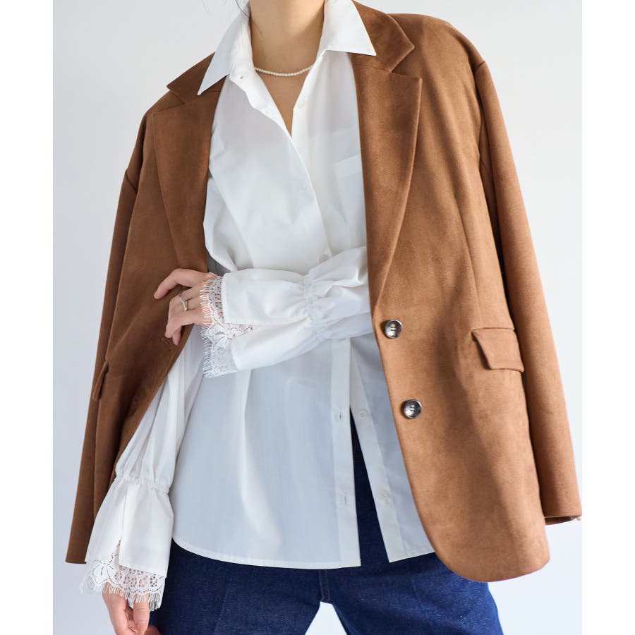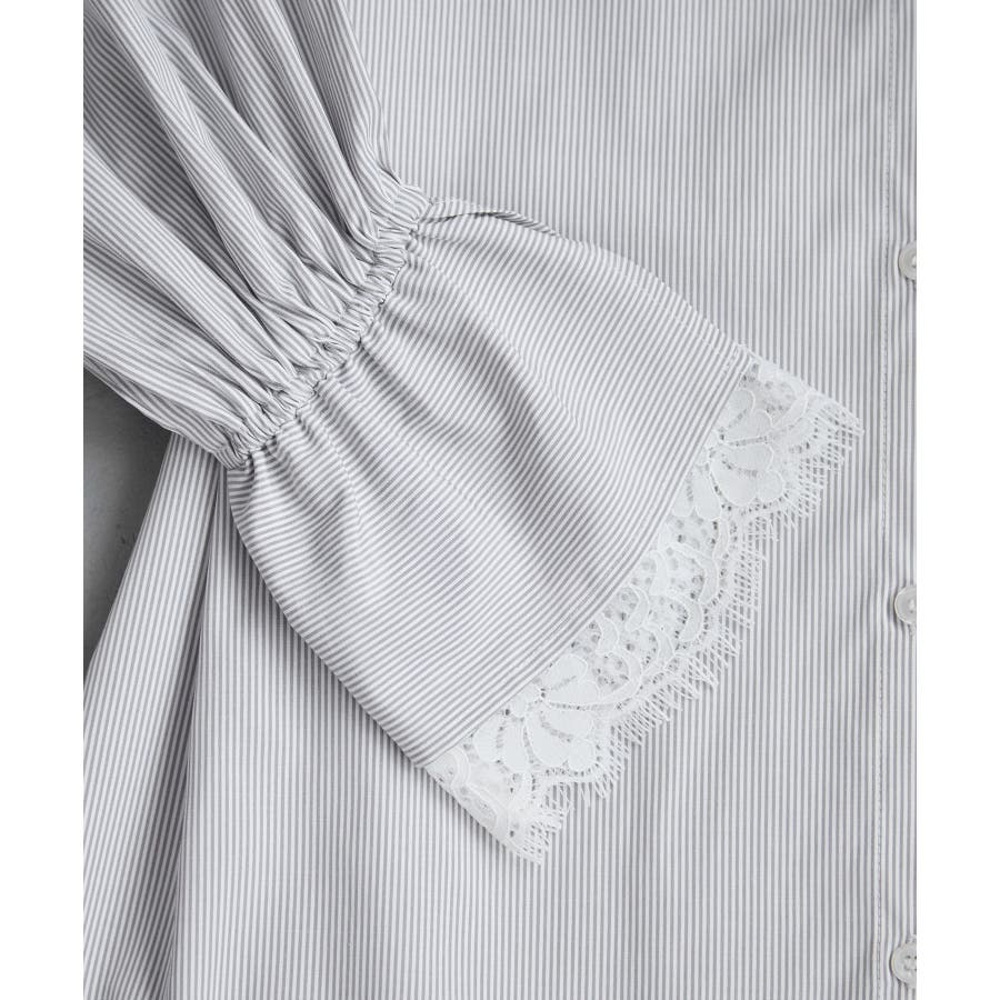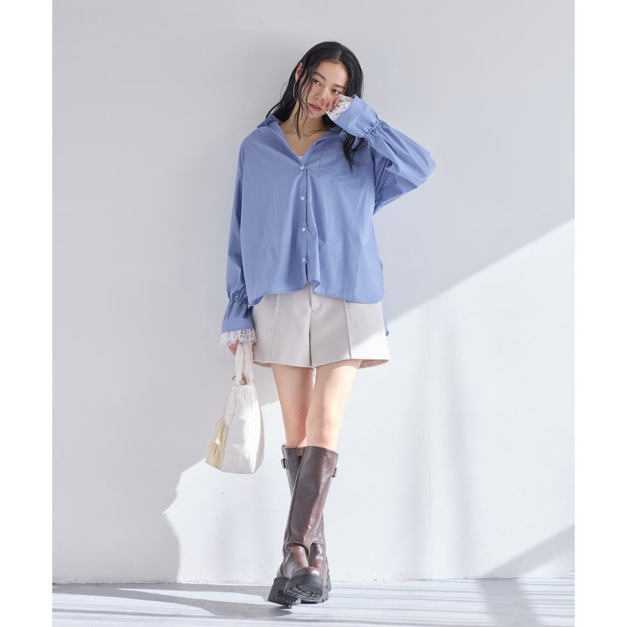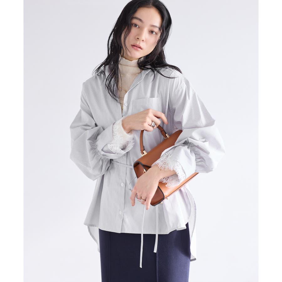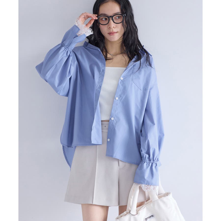 スカラップレースが高見えしてくれます。首元はシンプルにすっきりと品良く見せてくれるレギュラーカラー。シンプルながらも存在感があり、袖をチラリと出してアウターやカーディガンとのレイヤードスタイルにもぴったり。