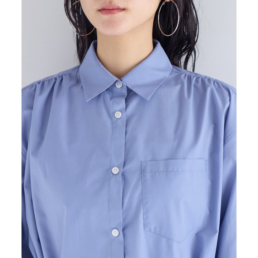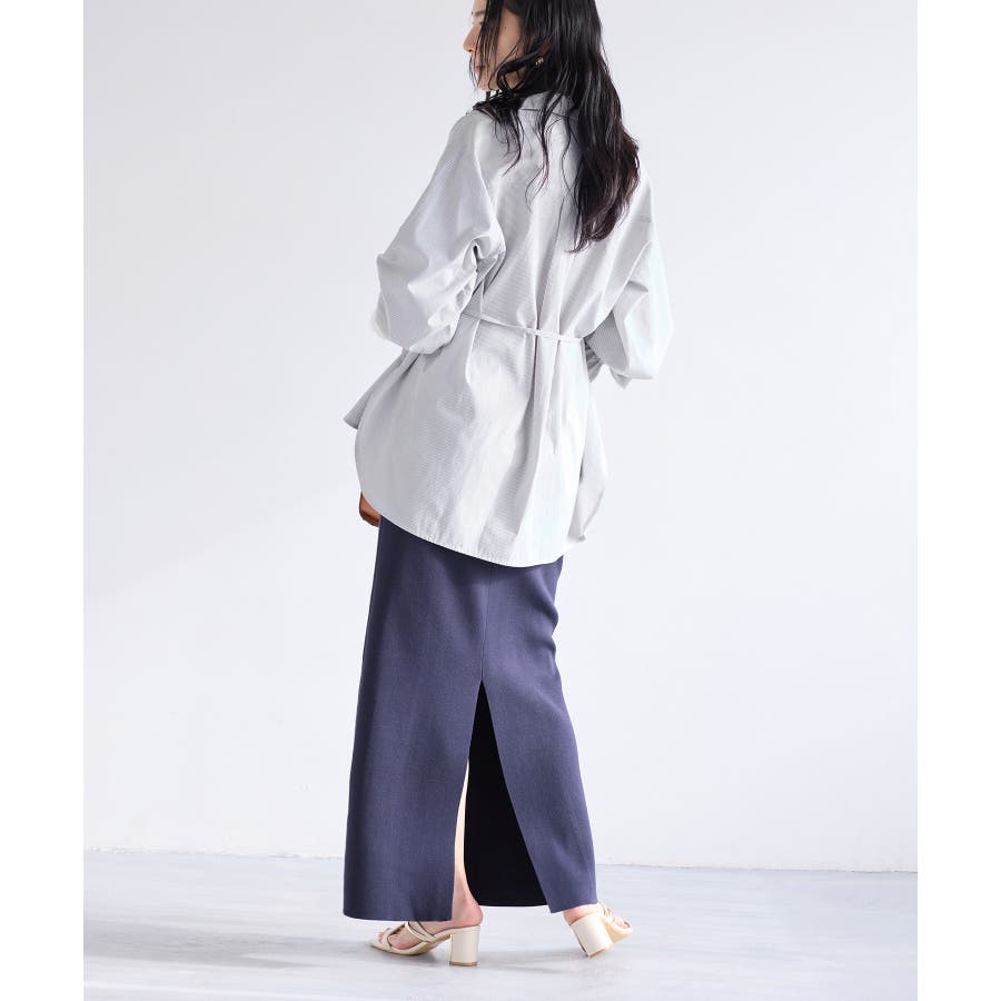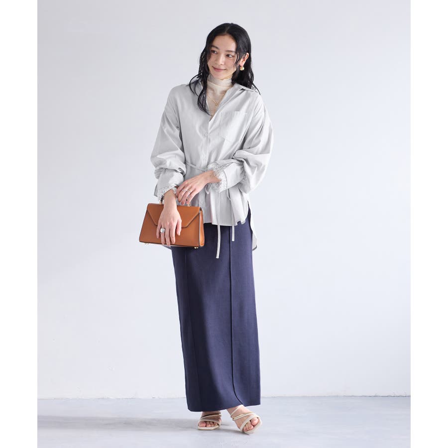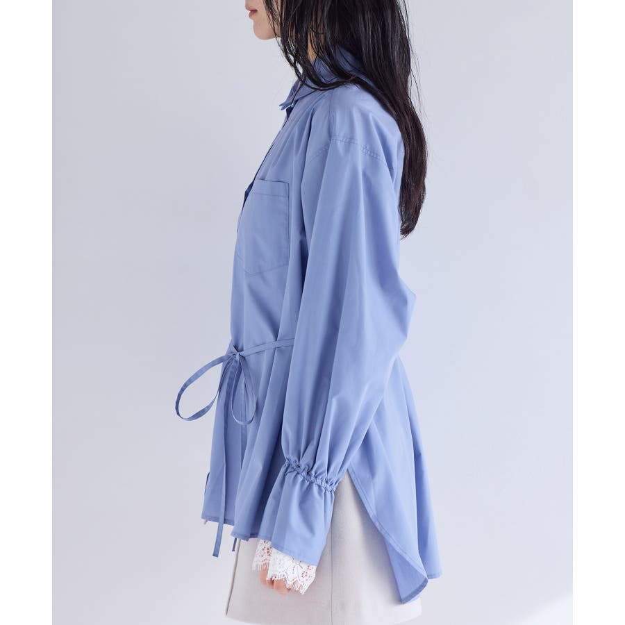 ・体のラインを拾わないAラインシルエットのシャツはウエストリボンでシルエットを変化させられます