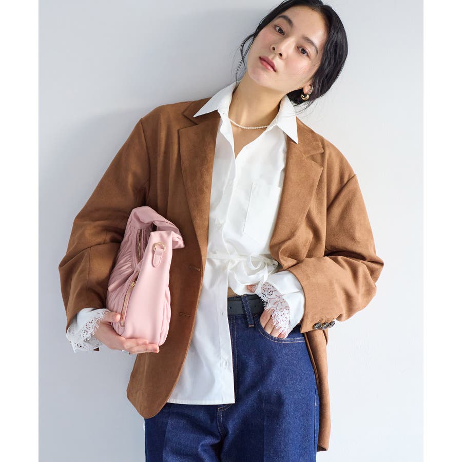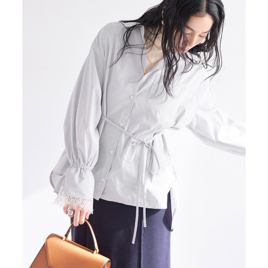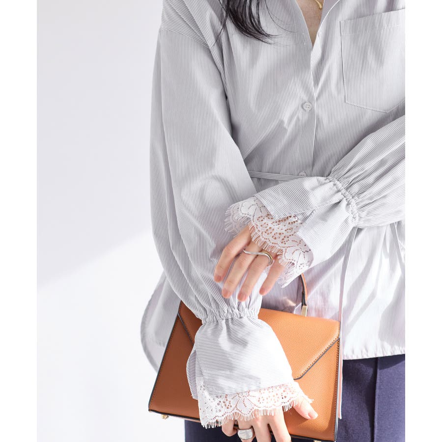 ・袖口にあしらわれたレースが、フェミニンで上品な印象を与えます