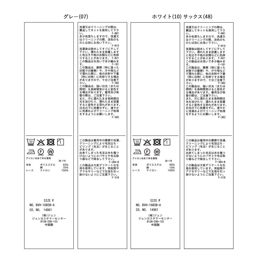 ホワイト(10)、サックス(48):(本体) ポリエステル 90% 綿 10% (レース) ナイロン 100%