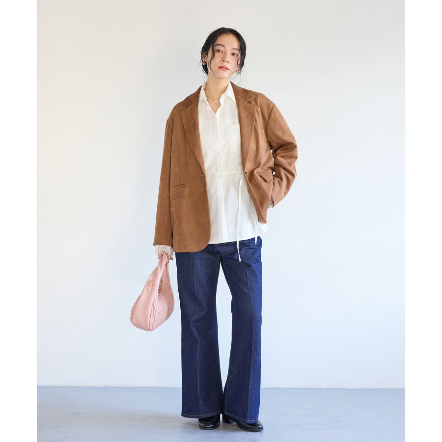 ニットをインナーにして羽織風にもお使い頂けます。ボトムはウエストリボンでシルエットを変化させられるので、パンツだけでなくアイラインスカートとも相性抜群です。