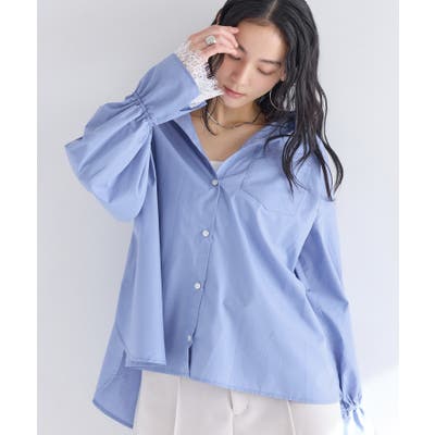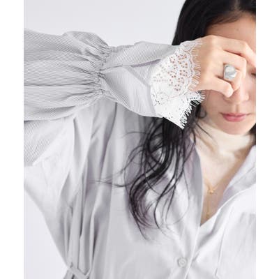 トレンドのレースを使いダブルスリーブにデザインされたシャツです。