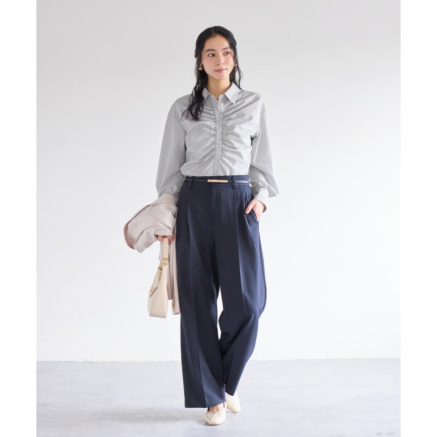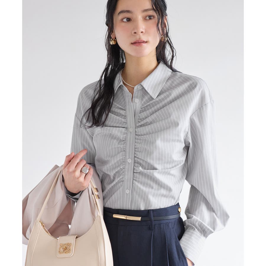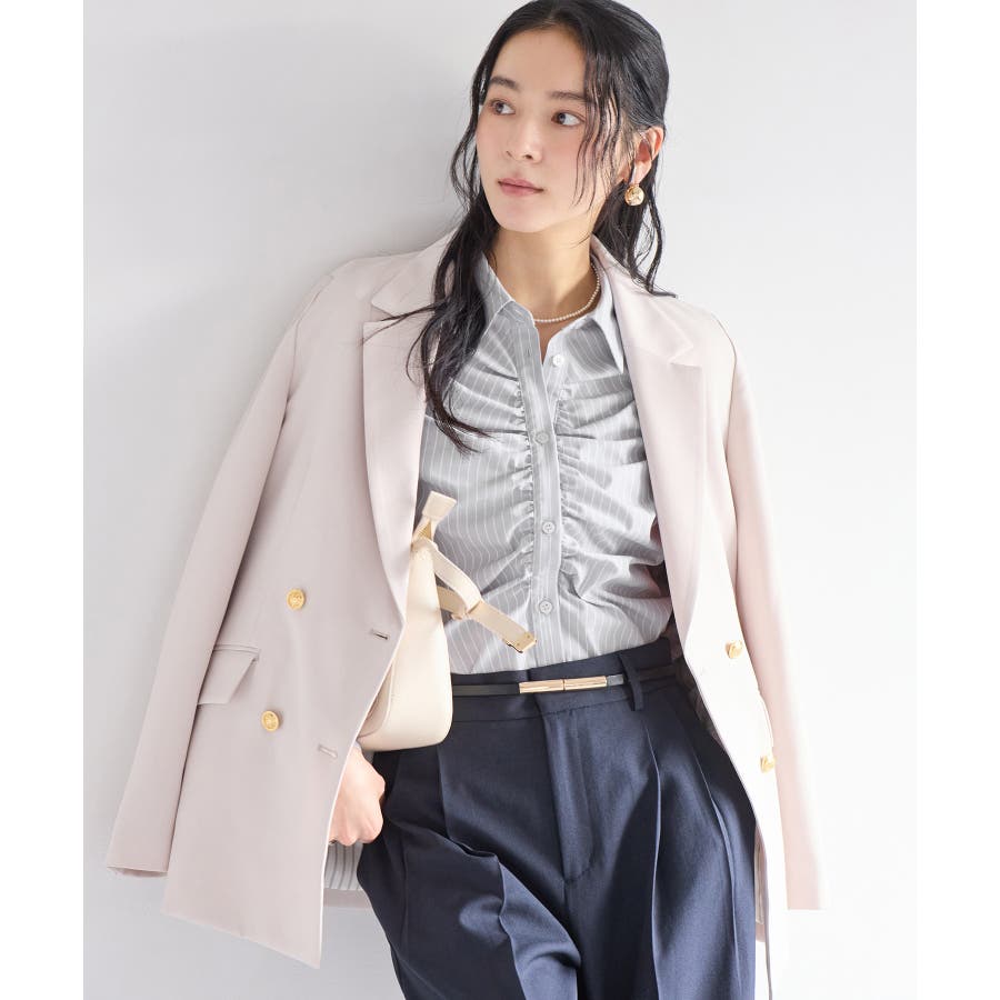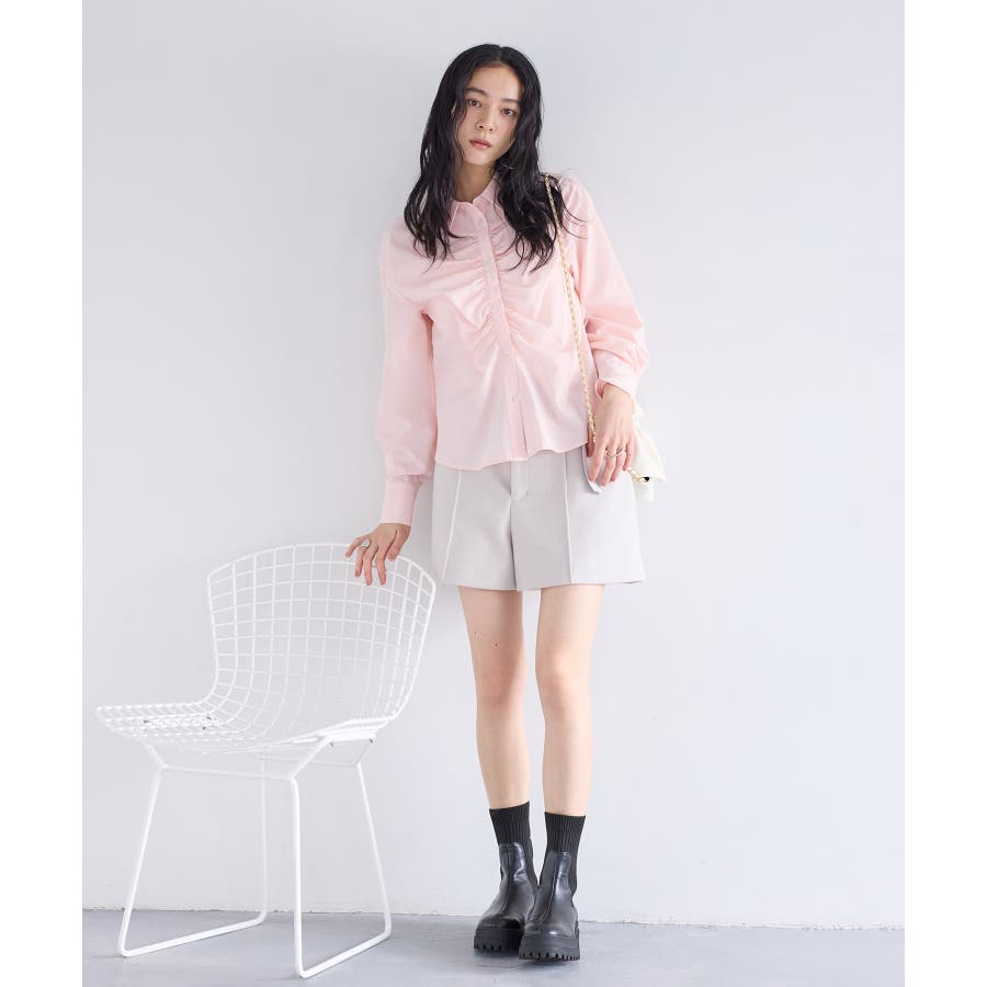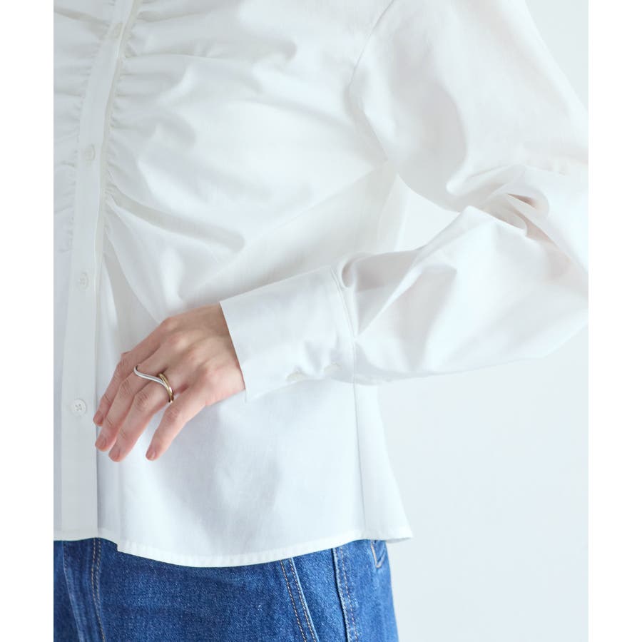 昨今ずっとトレンドのシャツアイテムは羽織ではなくトップス使いが増えてきました。春物を買いたい季節に重ね着もアウターのインナーとしても華やぐようフロントにギャザーデザインをほどこしたことと、オーバー過ぎないコンパクト目のサイズ感にしたことで万能使いできるようにしました。ウエストを細く見えるようなシャープなフォルムにしているのもポイントです!オケージョン使いも新生活にもぴったりです。