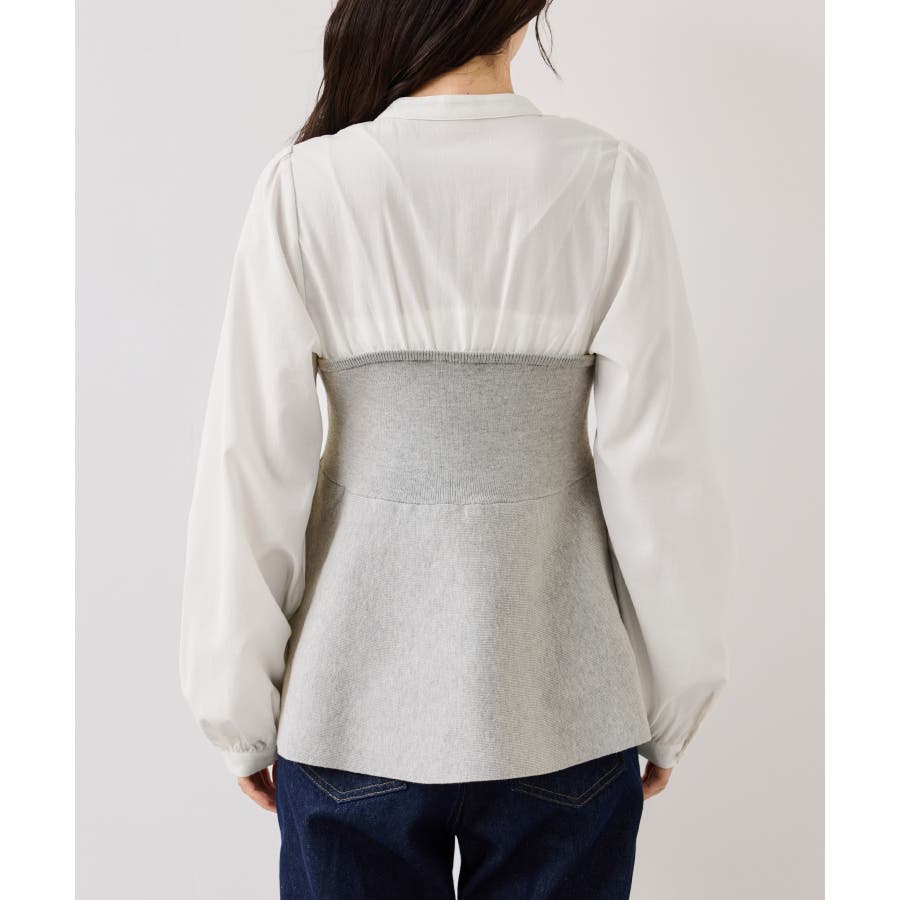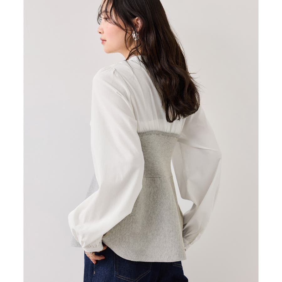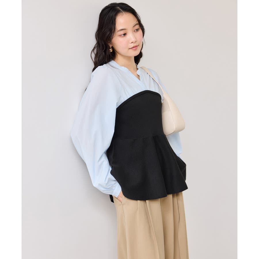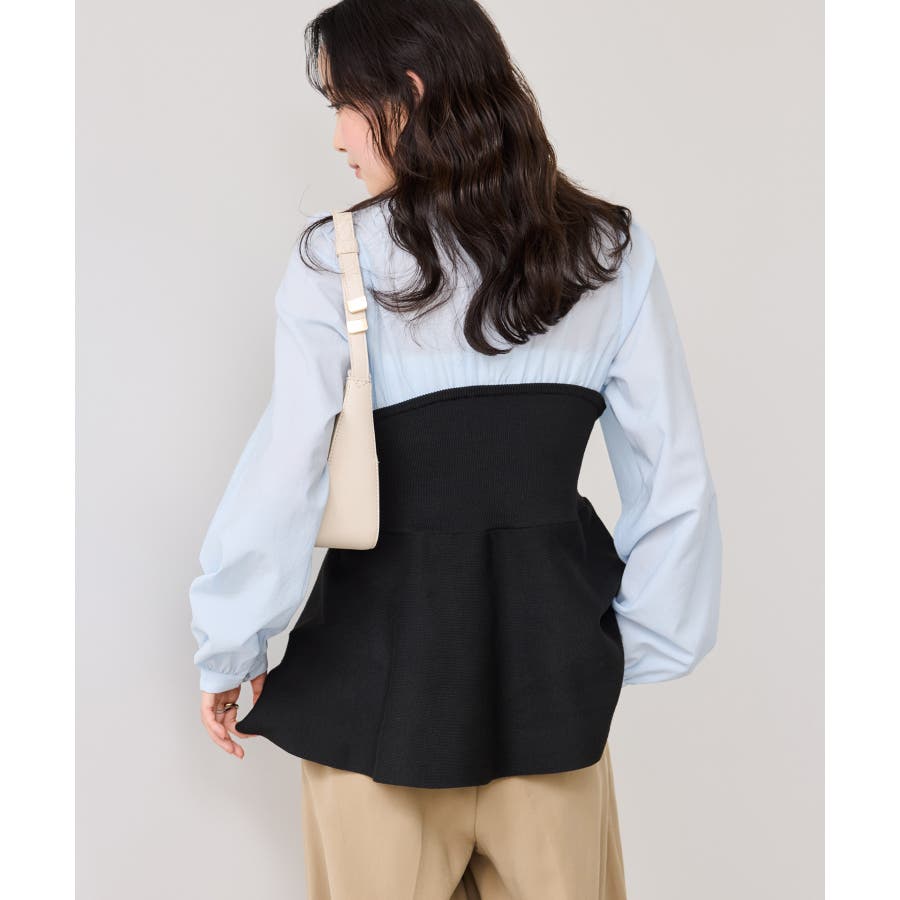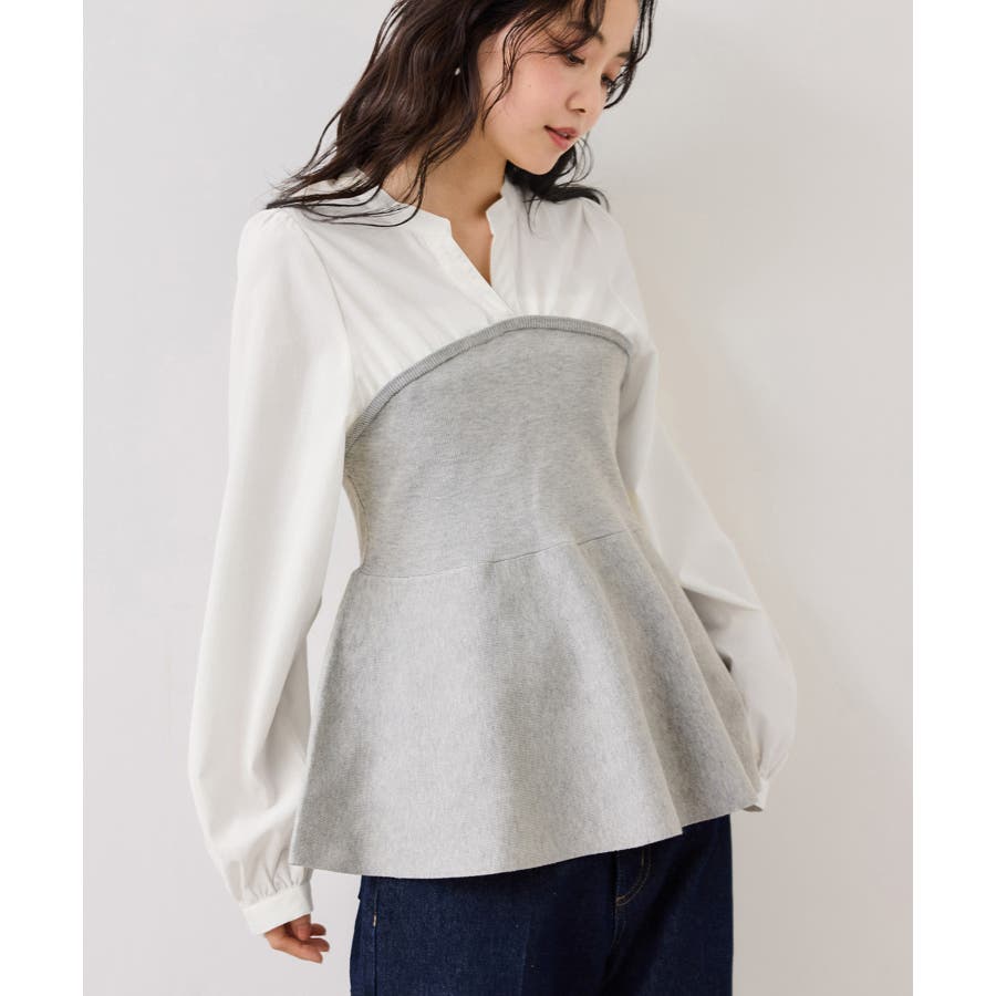 ペプラムニットドッキングブラウス