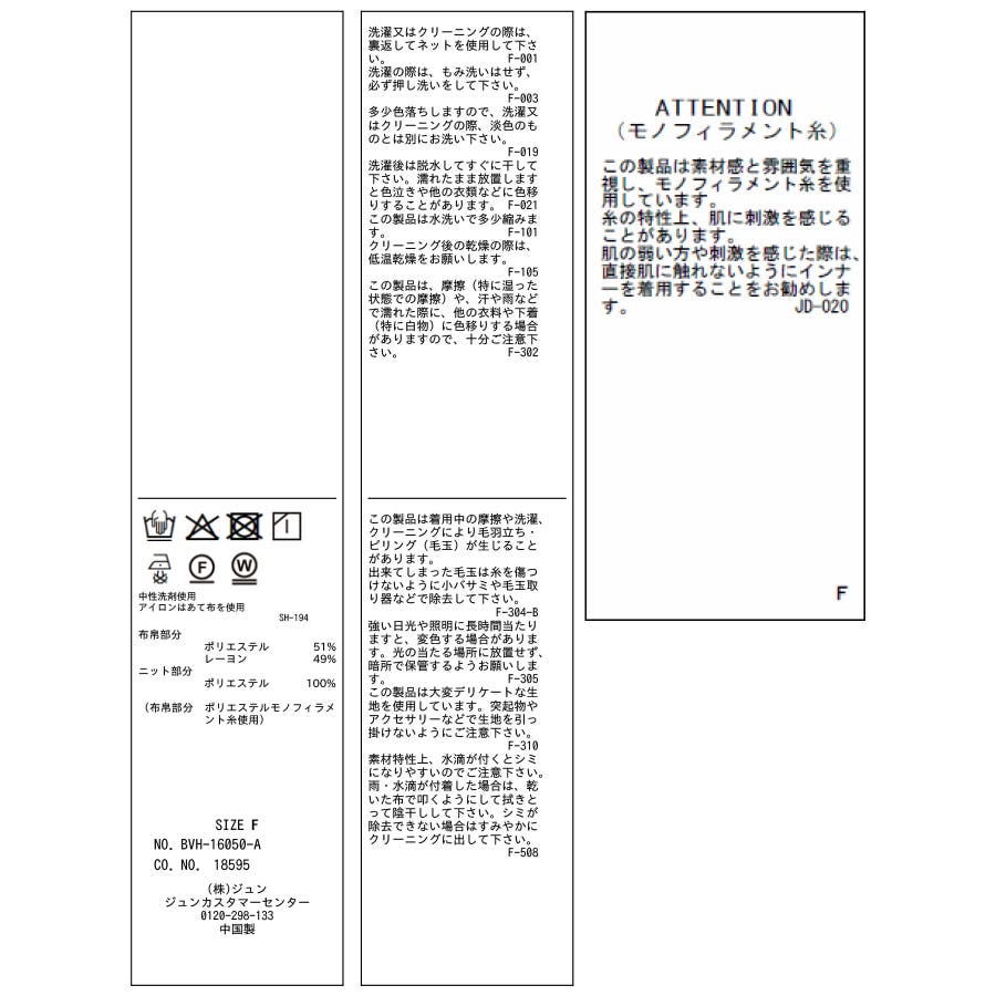 【洗濯表記】手洗い|漂白不可|タンブル乾燥不可|自然乾燥|アイロン仕上げ可|ドライ可|ウエットクリーニング可