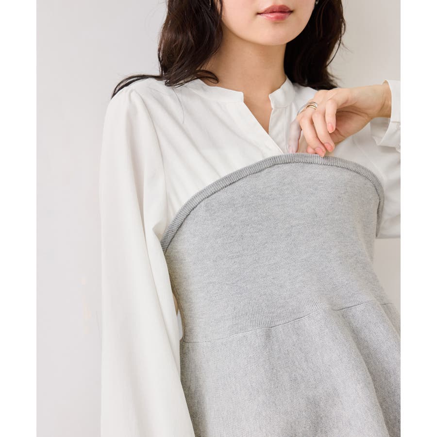 お仕事にもお出かけにも相性抜群のニットドッキングブラウス。ドッキングされているので楽ちんにレイヤードを楽しめます。