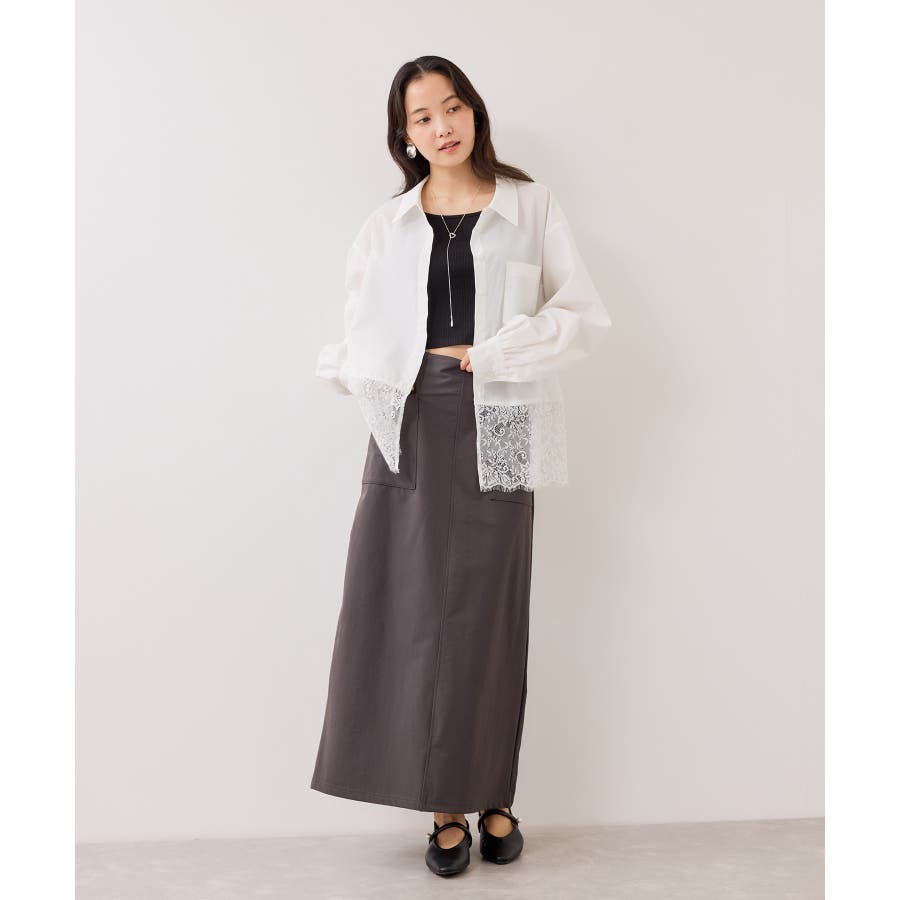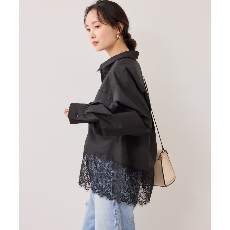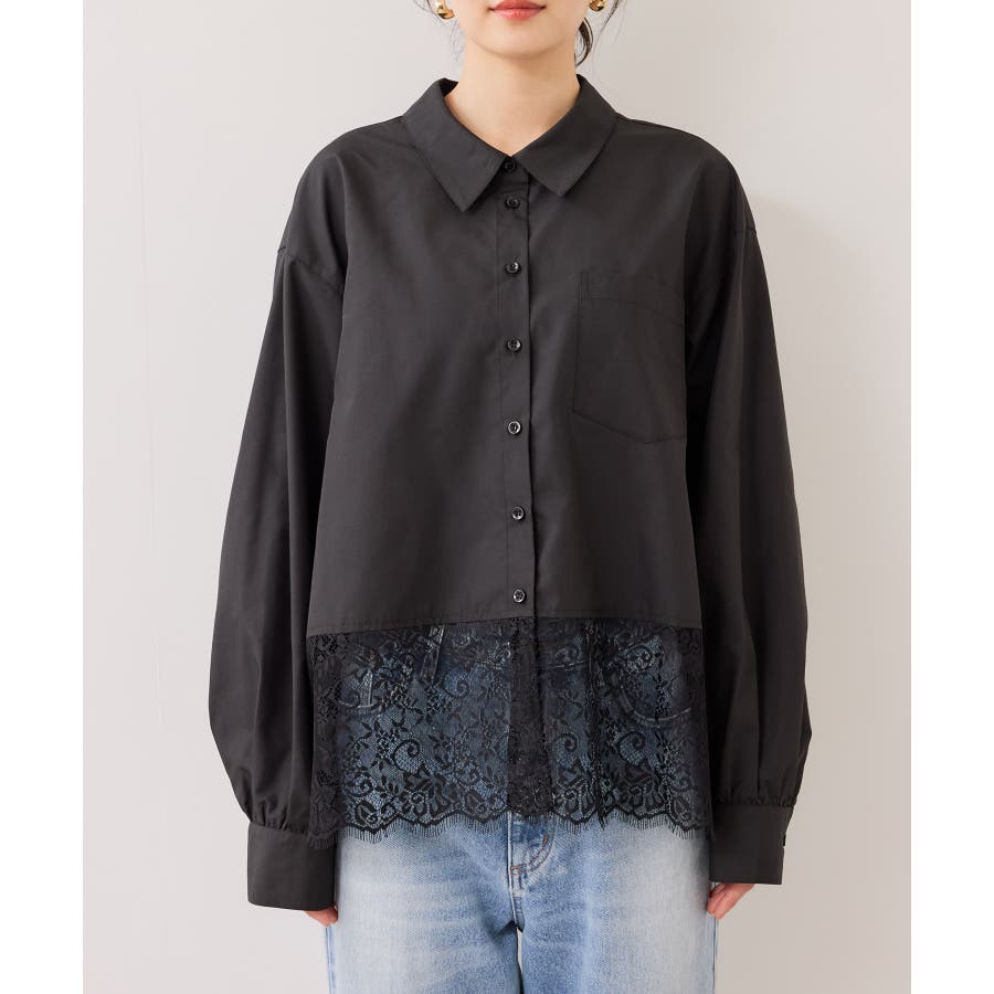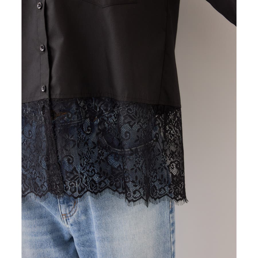 裾レースドッキングシャツ