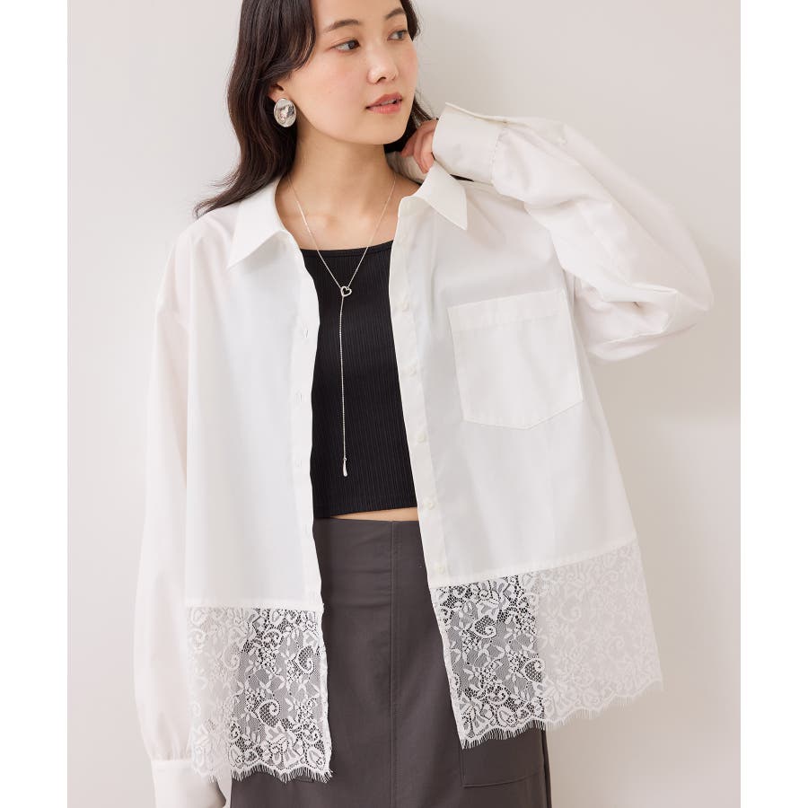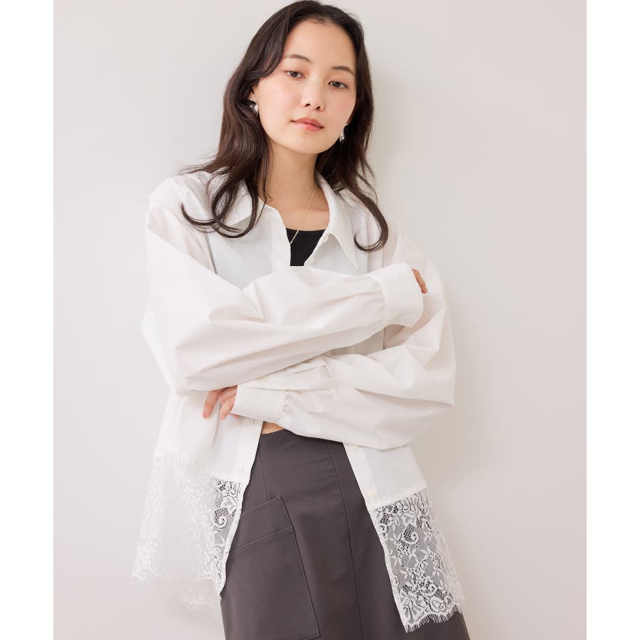 単品でもレイヤードでも最高に可愛いレースドッキングシャツ!バランス感丈感を計算してあるので、ジャケットもスウェットもどちらにもばっちり合います。
