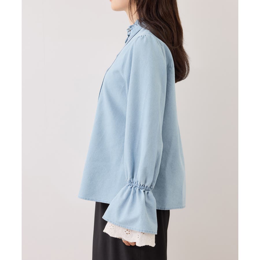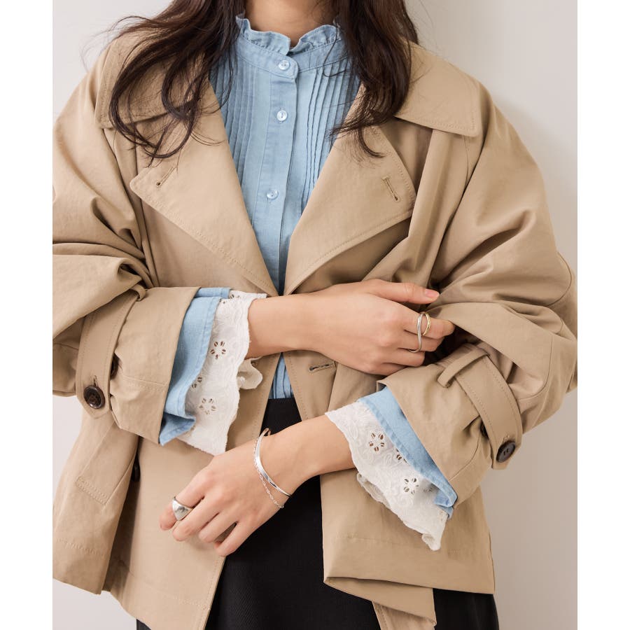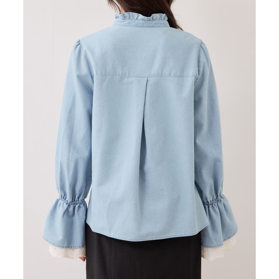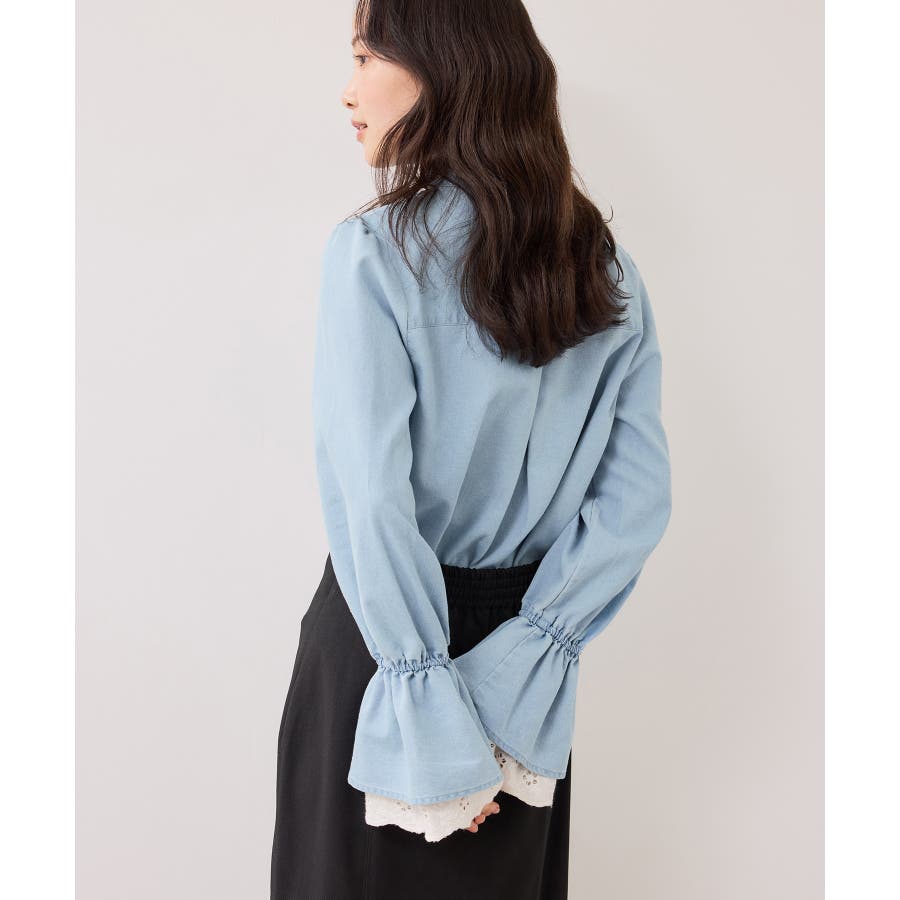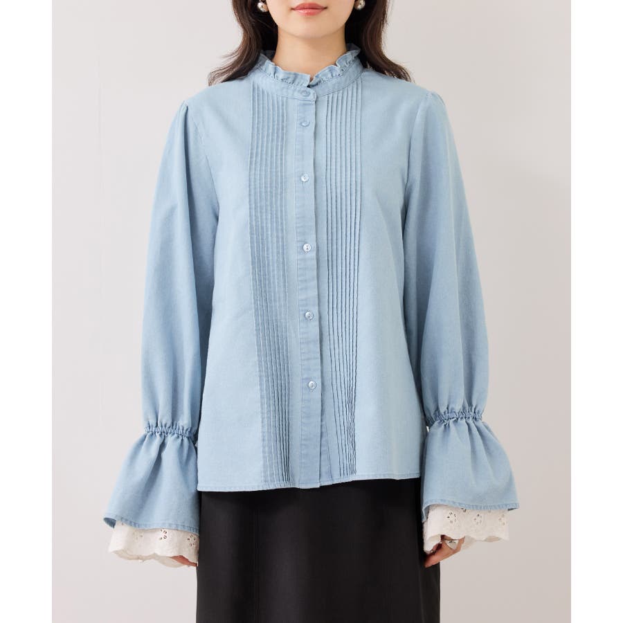 レースのレイヤードスリーブが春らしくアクセントになるデザインブラウス。