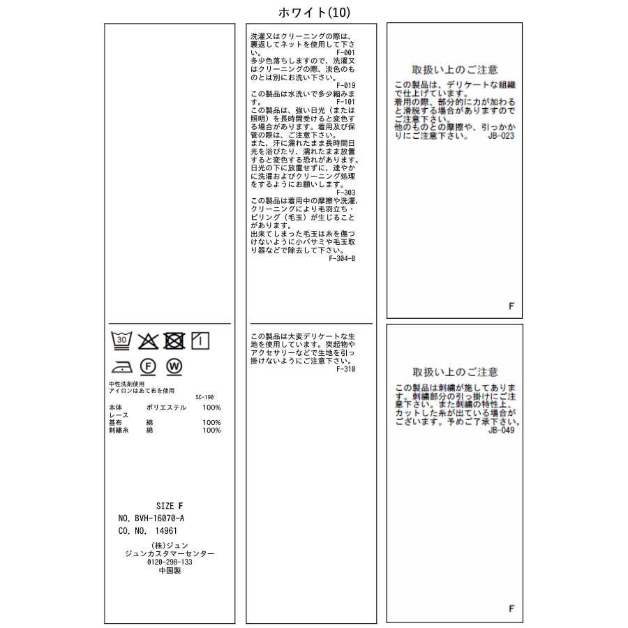 | 素材 | ホワイト(10):(本体) ポリエステル 100% (レース) (基布) 綿 100% (刺繍糸) 綿 100% |