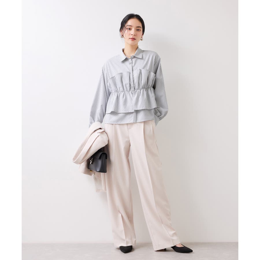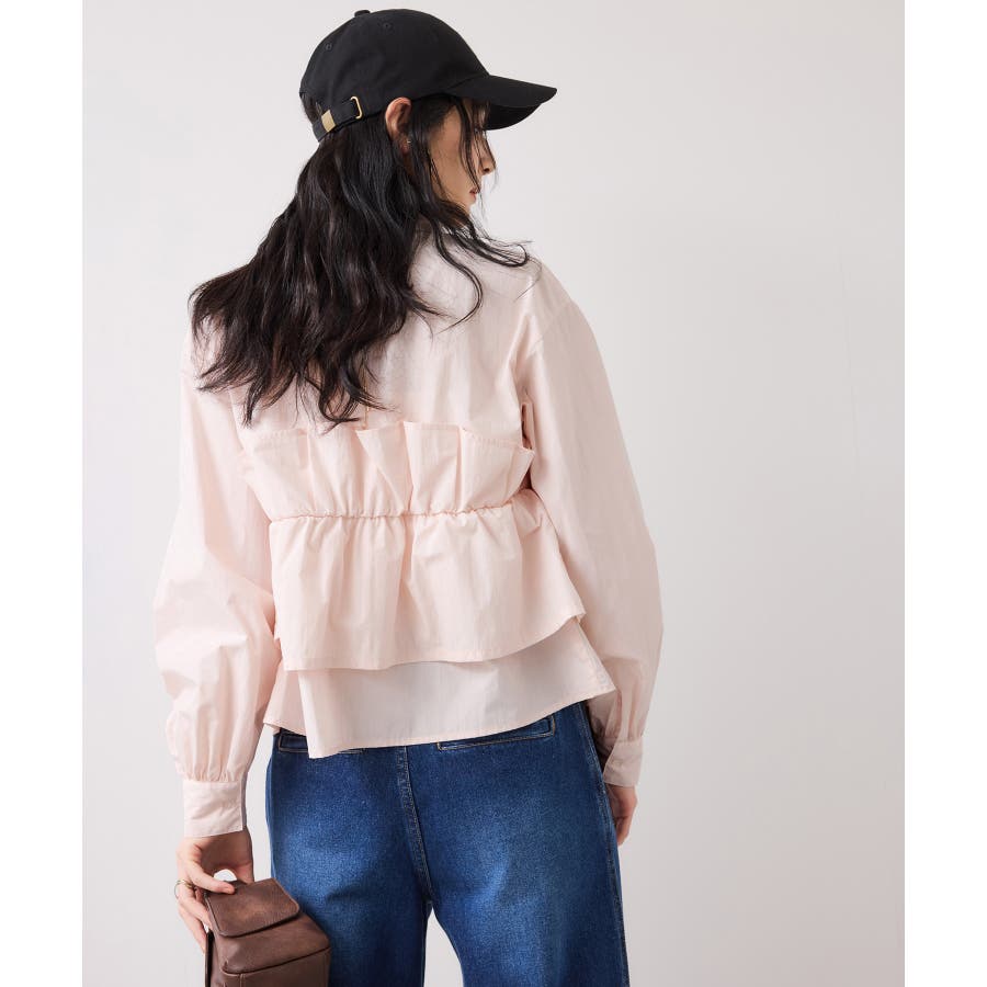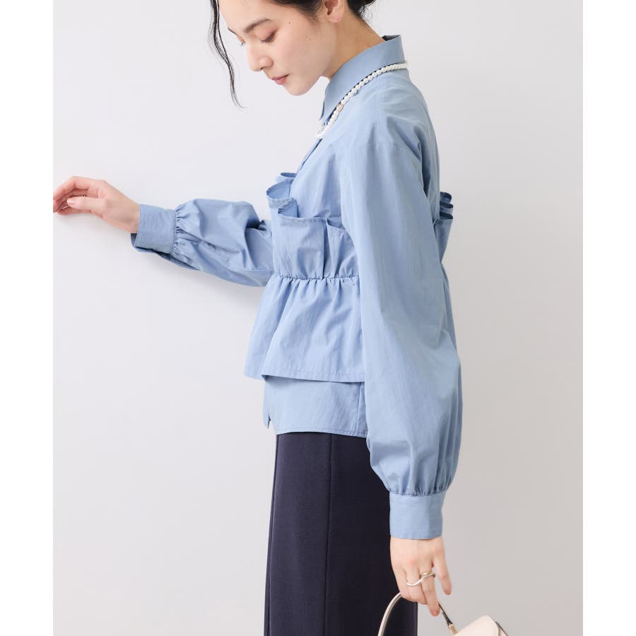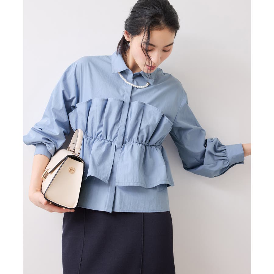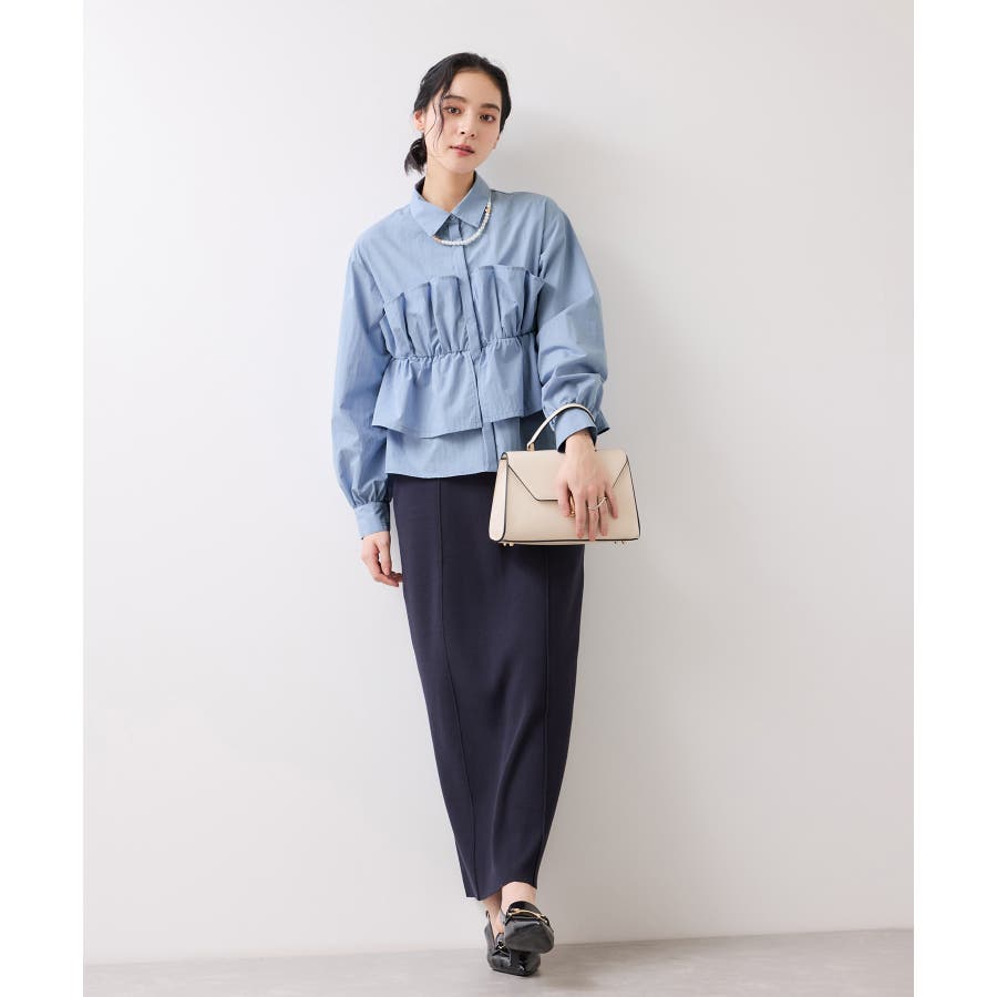 ビスチェ部分の下はインすることができるのでマーメイドスカートとも相性◎。フロントにポイントがあり、フリル見えするので女性らしさもプラス。美easyシリーズとのスタイリングがおすすめ!ぜひジャケットインに合わせてほしいアイテムです。