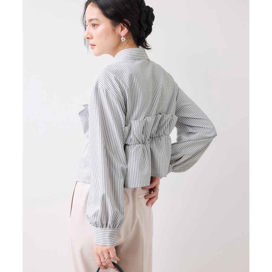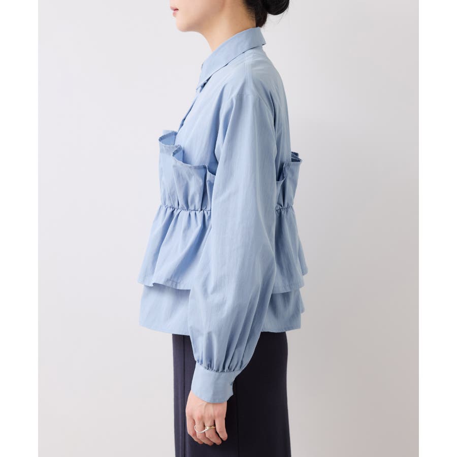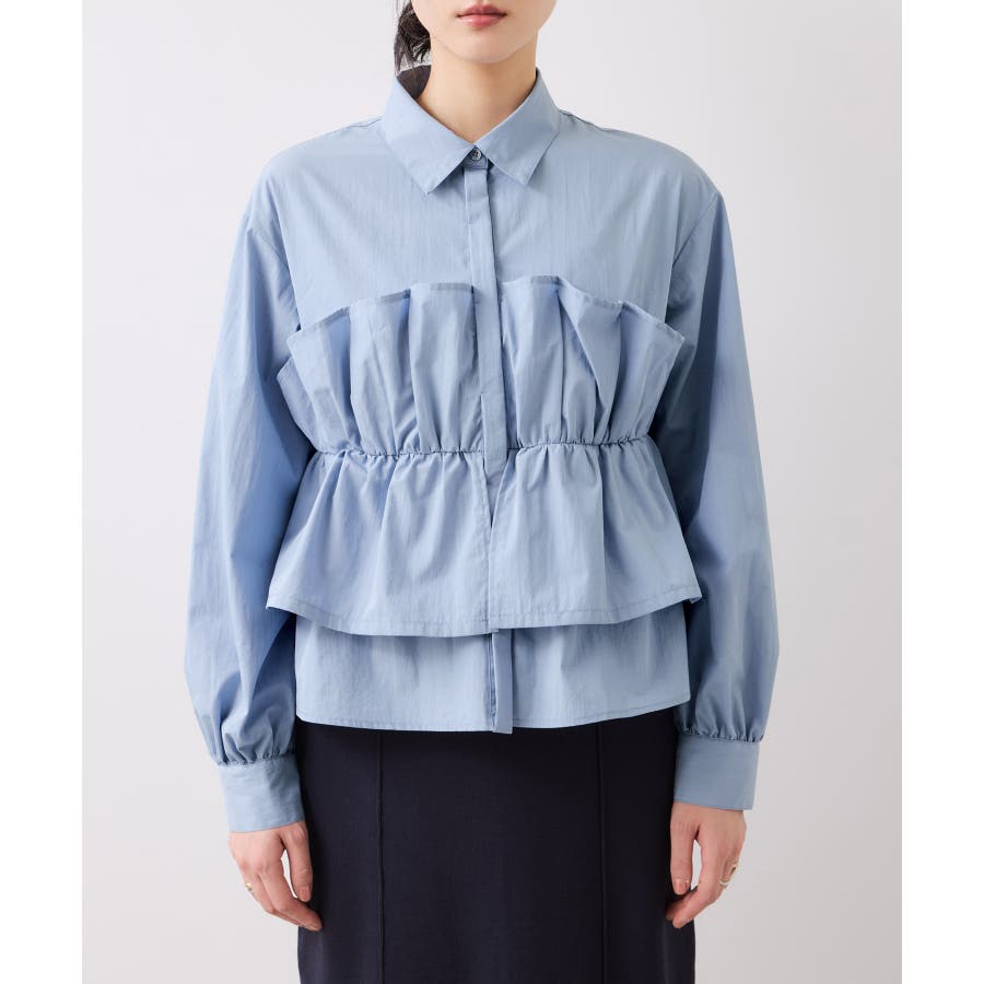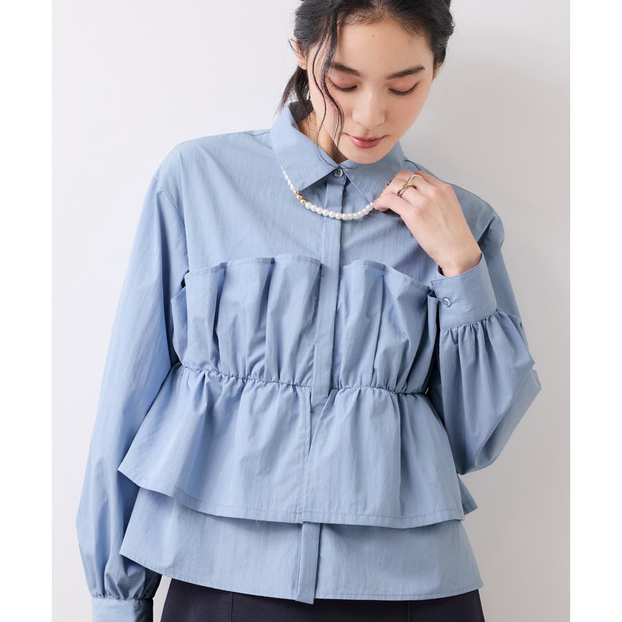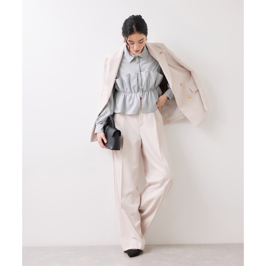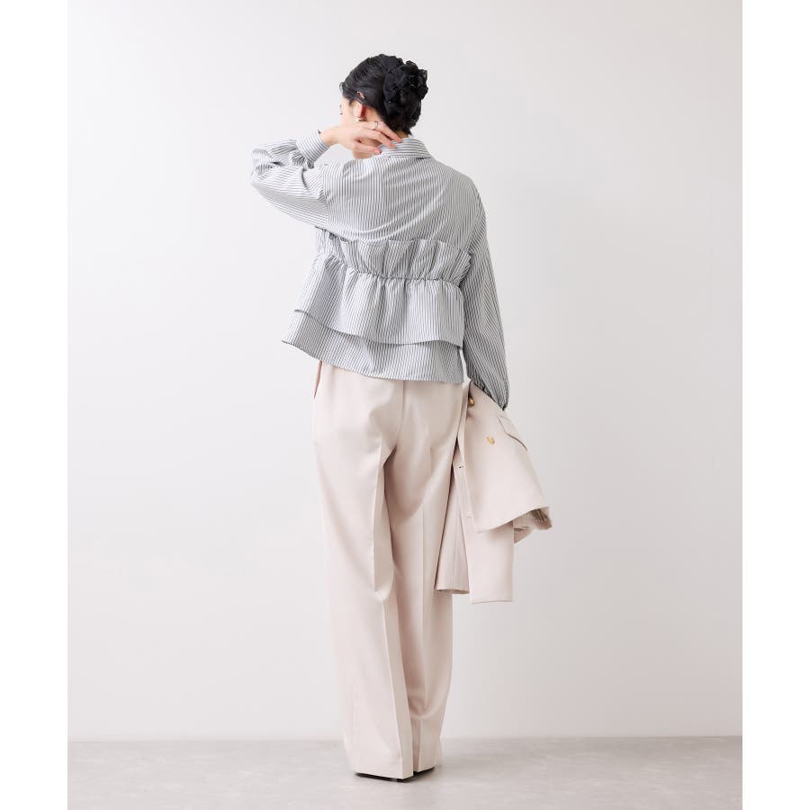 ビスチェ部分の下はインすることができるのでマーメイドスカートとも相性◎。フロントにポイントがあり、フリル見えするので女性らしさもプラス。美easyシリーズとのスタイリングがおすすめ!ぜひジャケットインに合わせてほしいアイテムです。